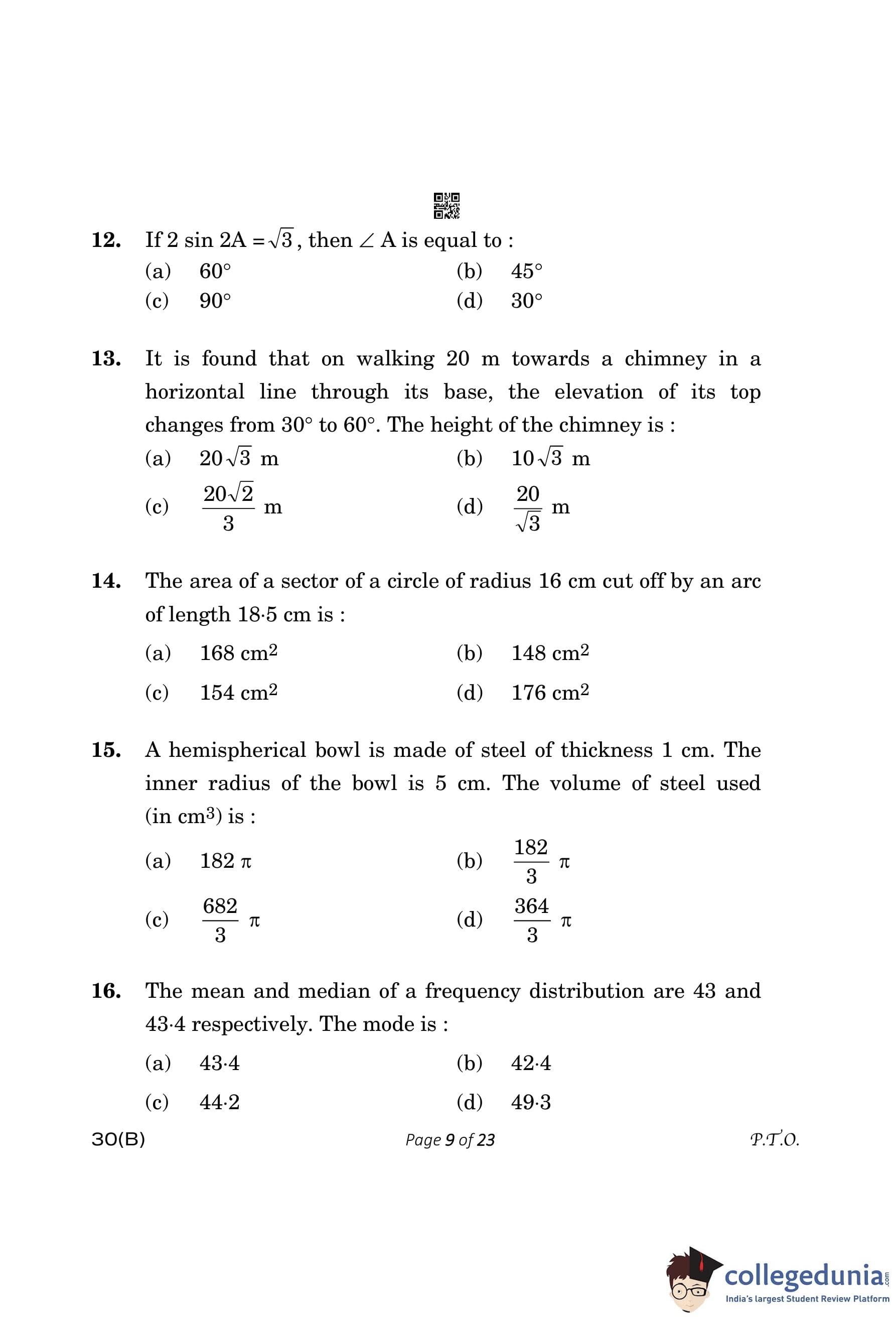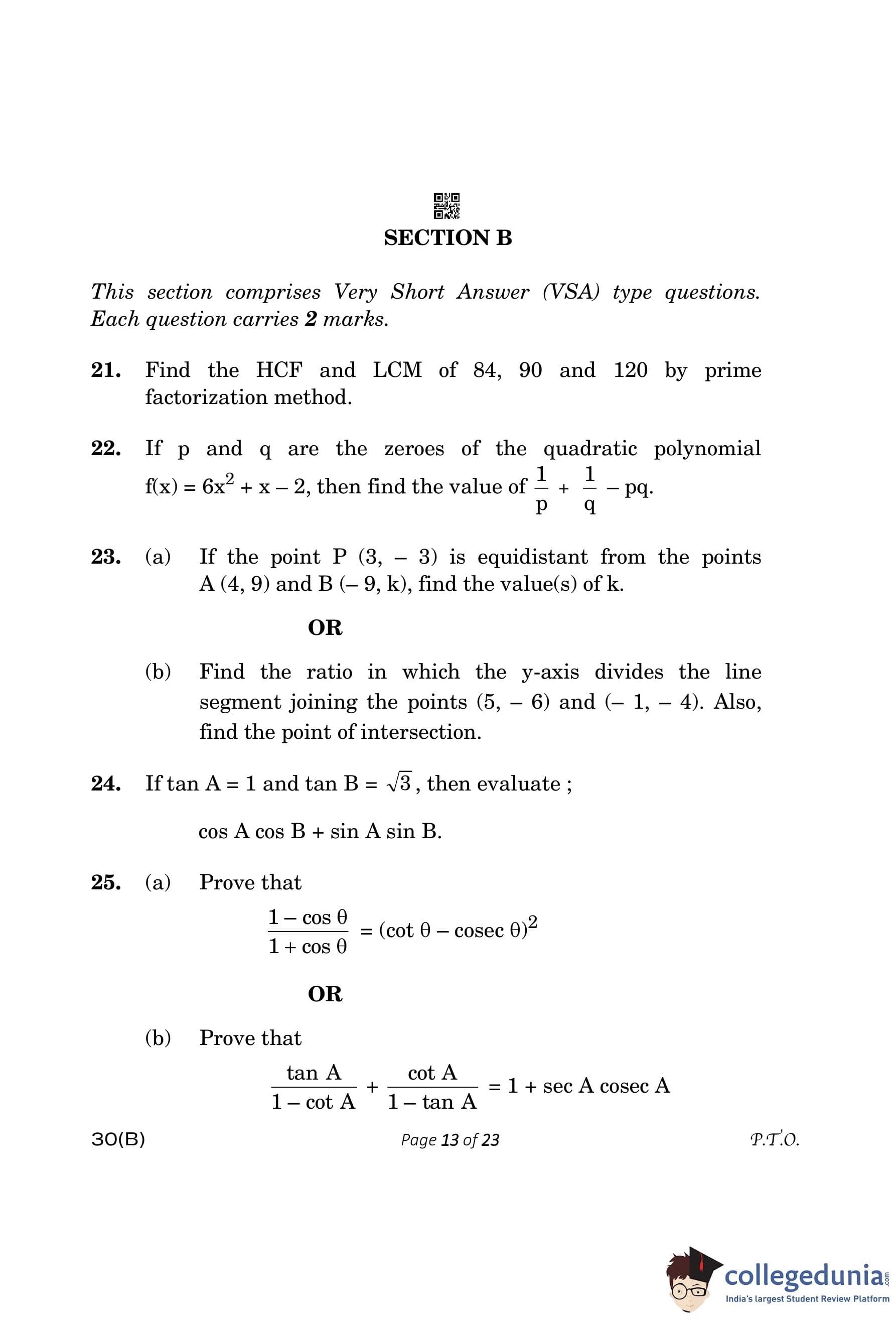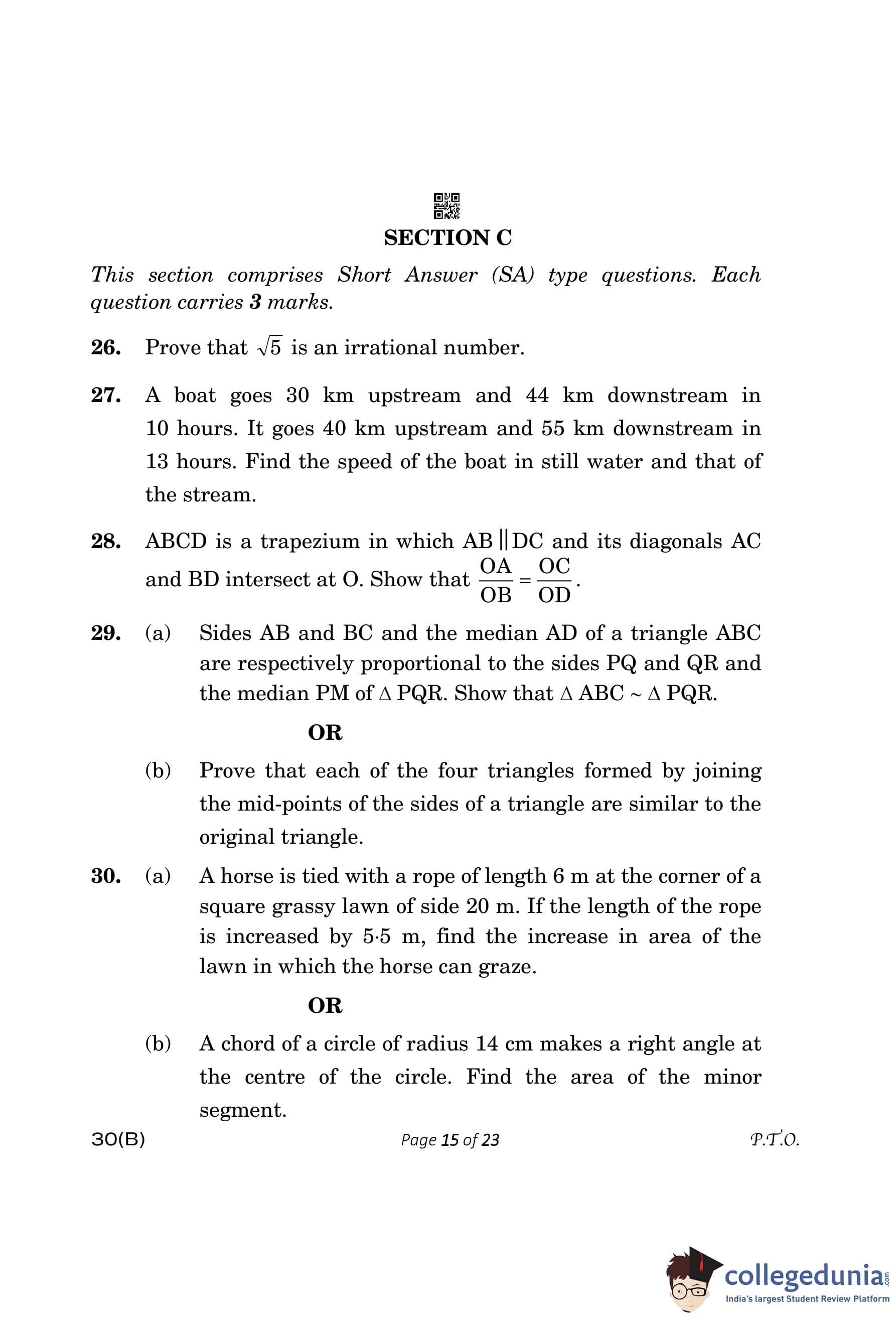 | CBSE Class 10 Mathematics Question Paper 2023 PDF | CBSE Class 10 Mathematics Answer Key 2023 PDF |