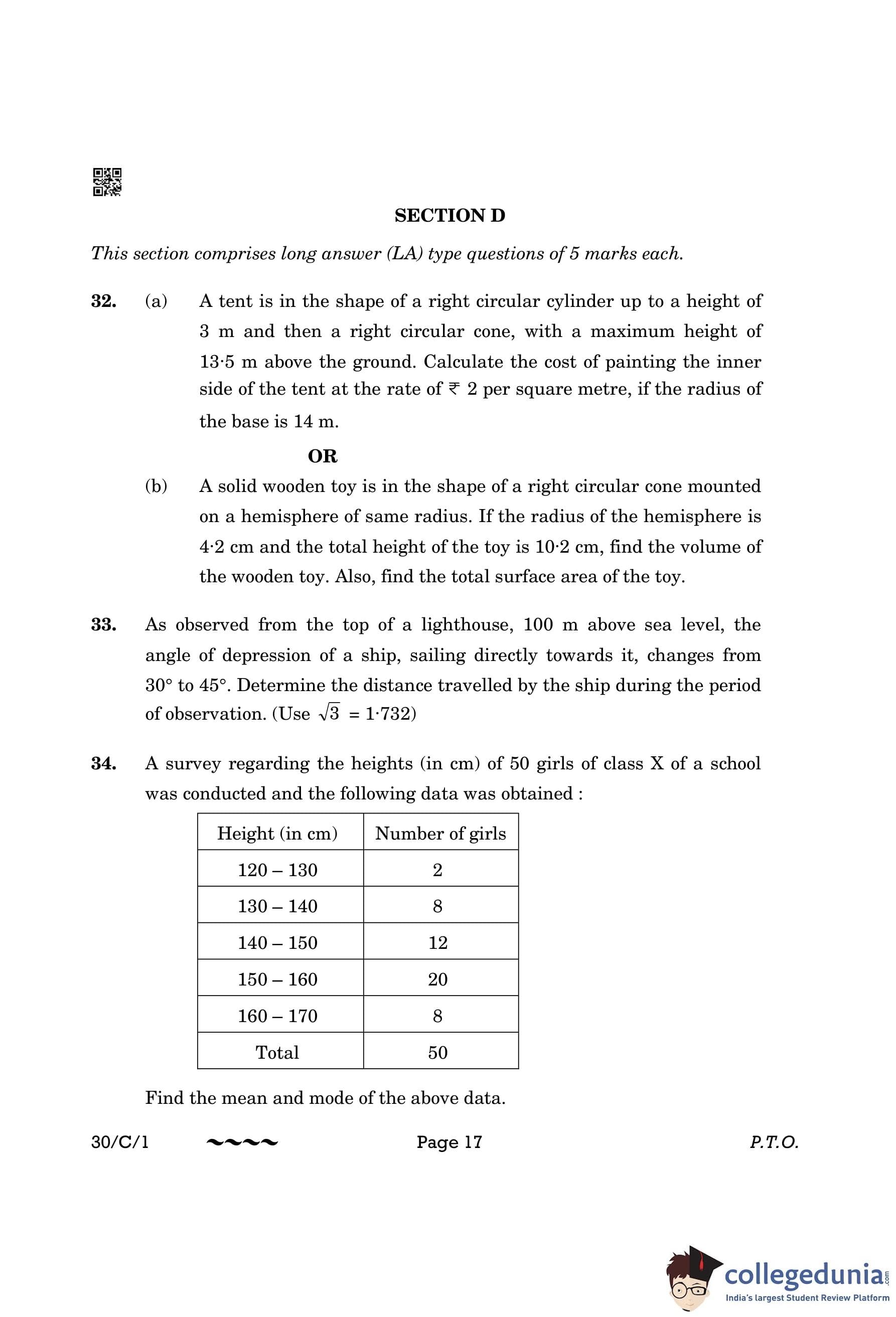 | CBSE Class 10 Mathematics Question Paper 2023 PDF | CBSE Class 10 Mathematics Answer Key 2023 PDF | CBSE Class 10 Mathematics Solution 2023 PDF |