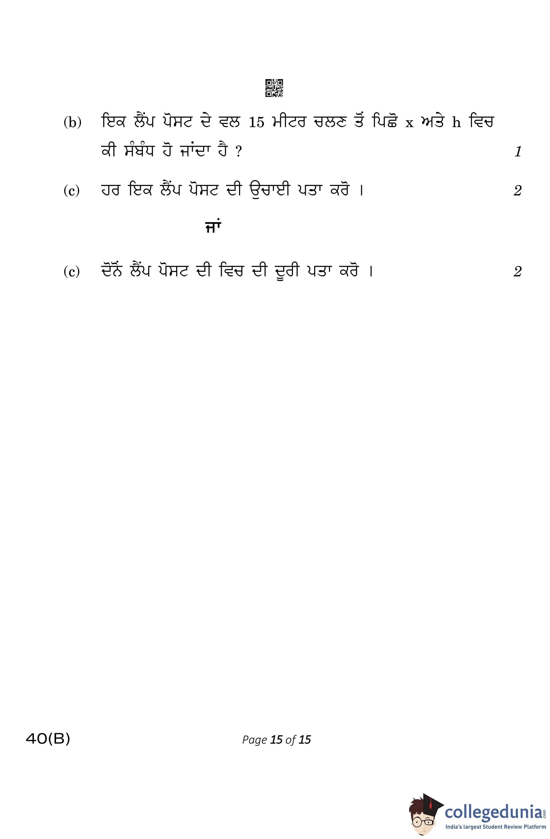 CBSE Class 10 Mathematics Standard (Visually Impaired Candidates) Punjabi Question Paper 2023 with Answer Key