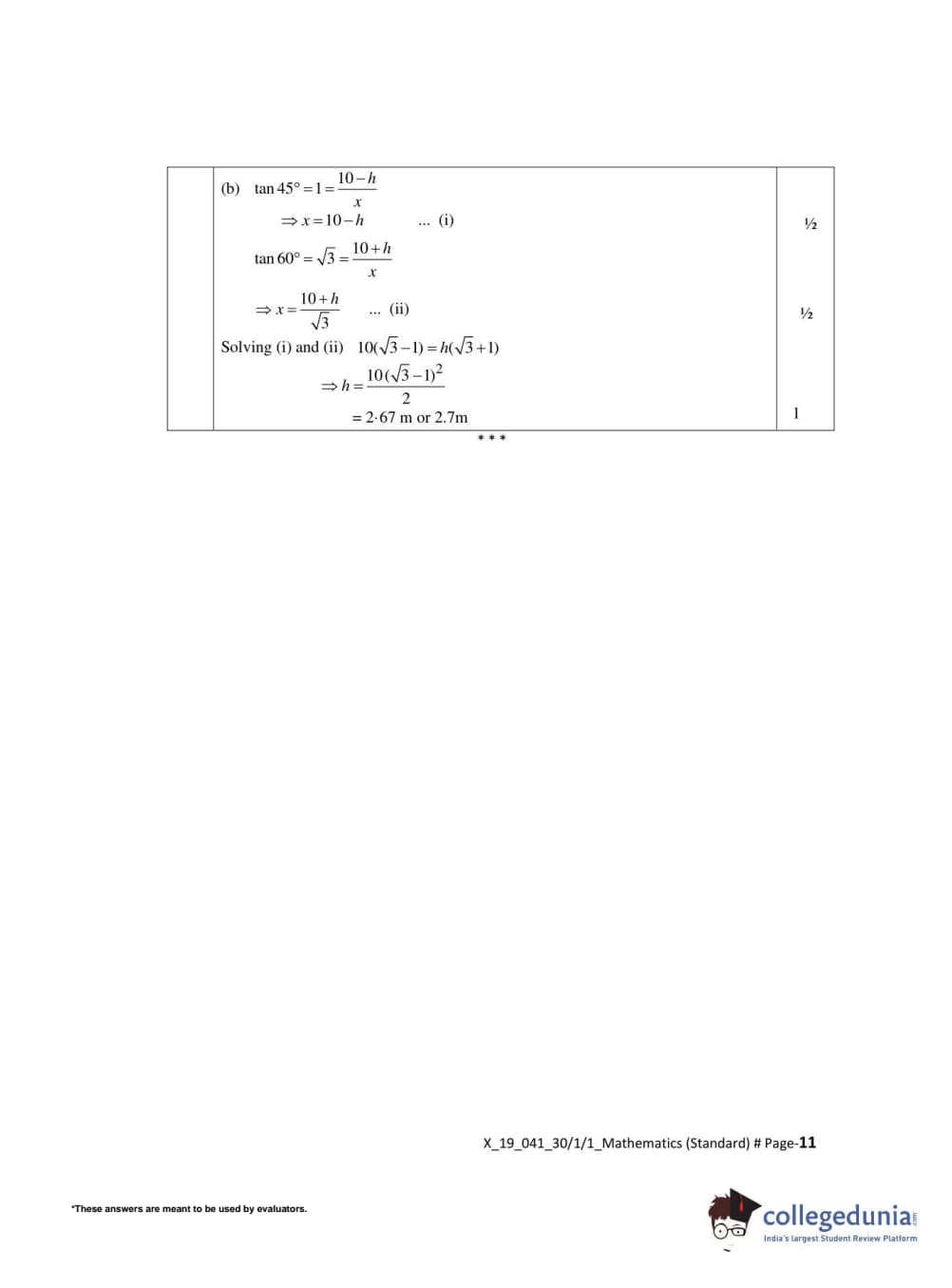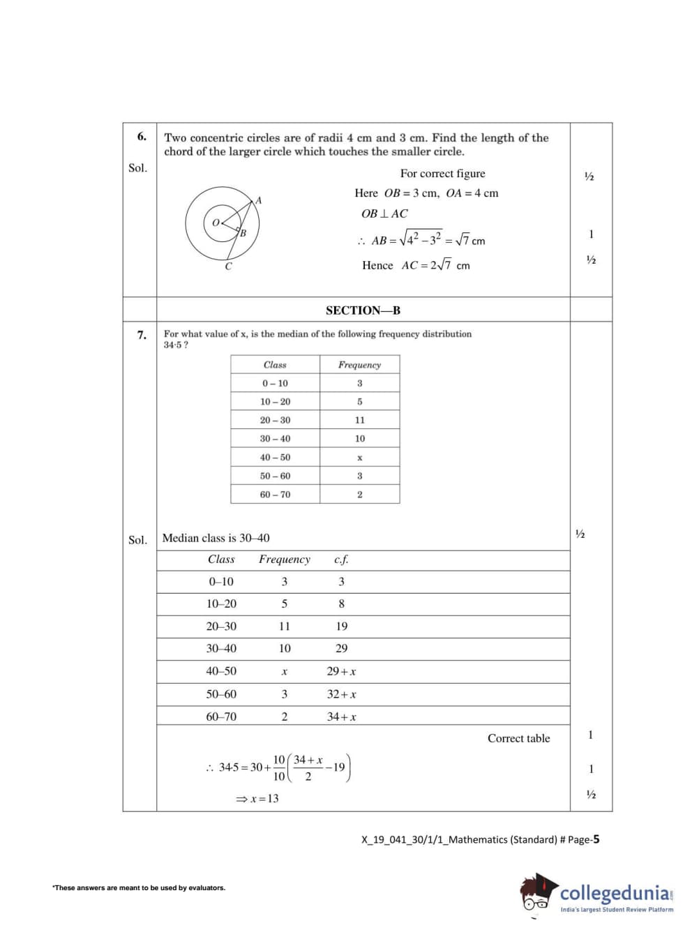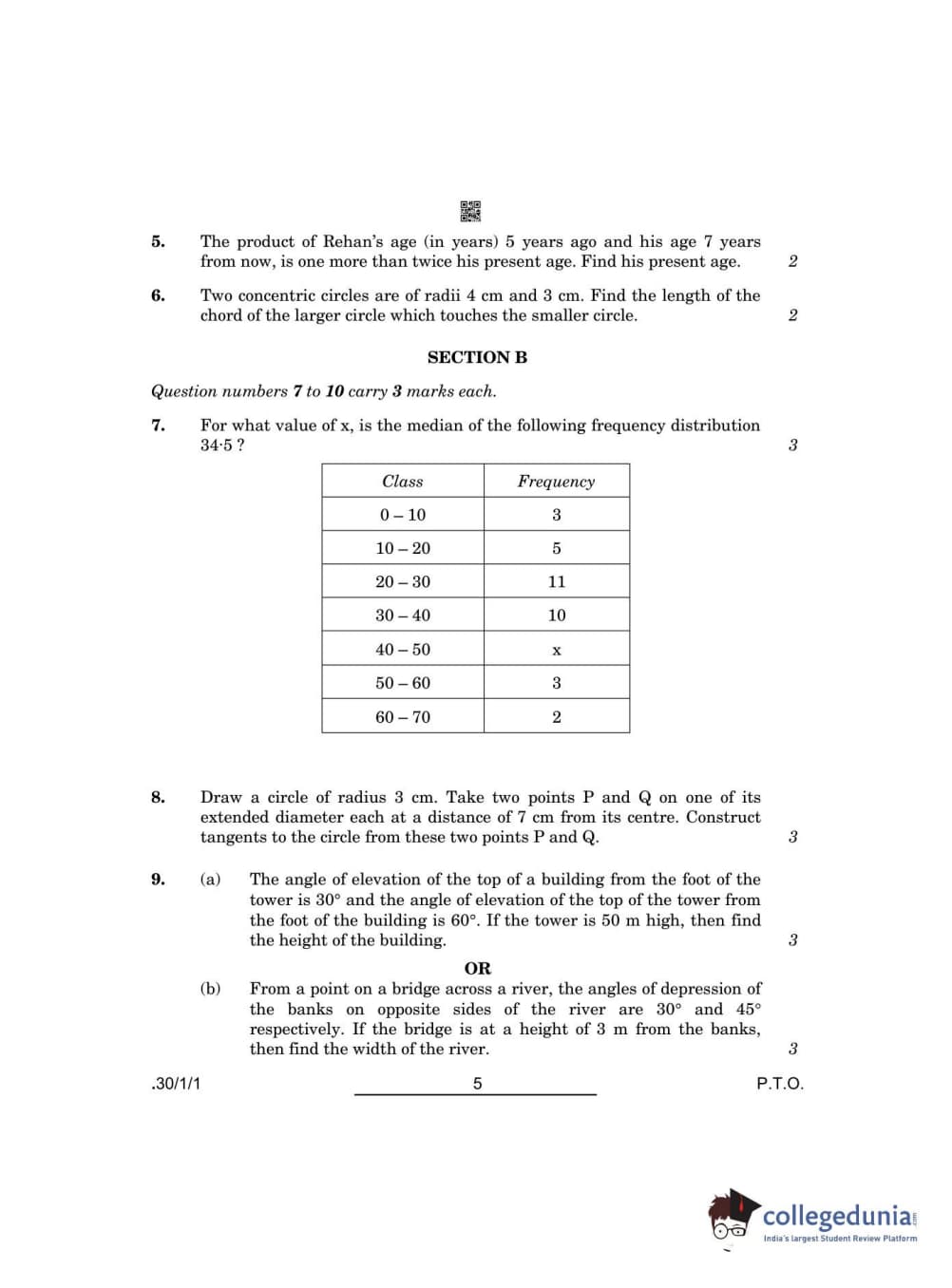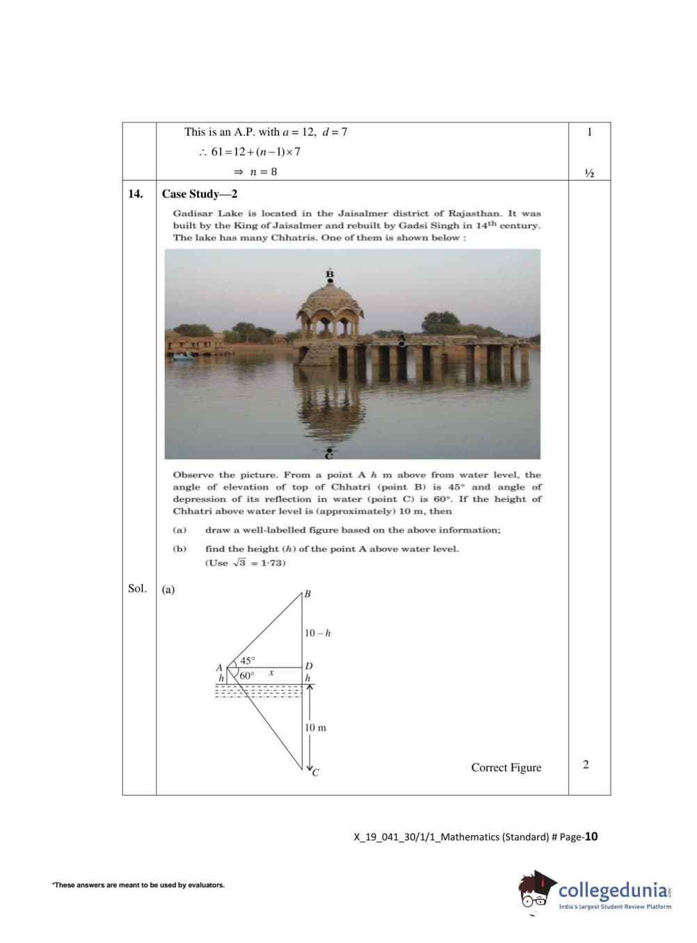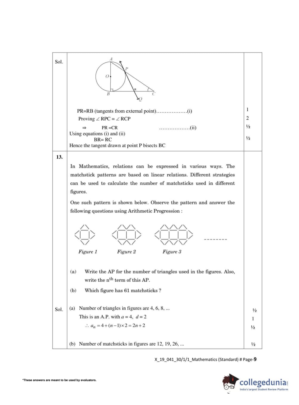 CBSE Class 10 Mathematics Standard Set 1 - 30/1/1 Question Paper 2022 with Answer Key (May 5)