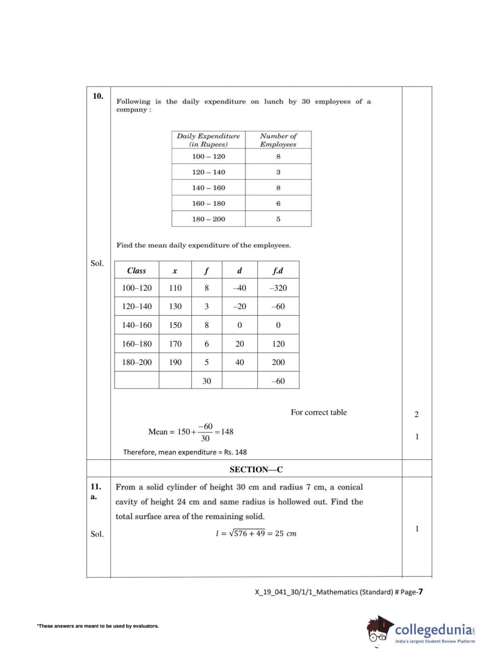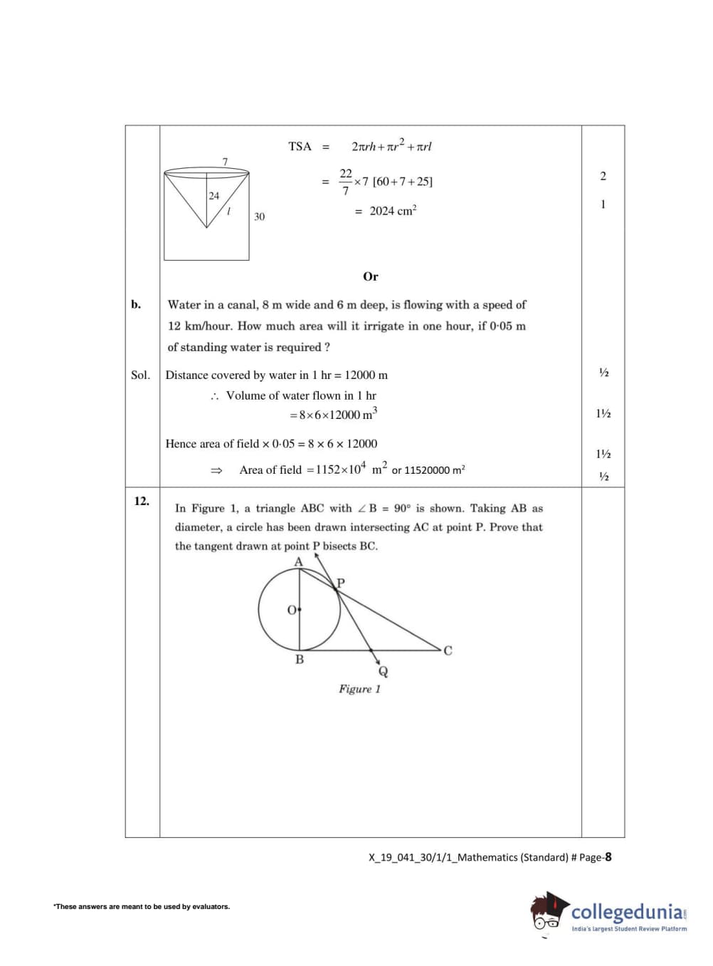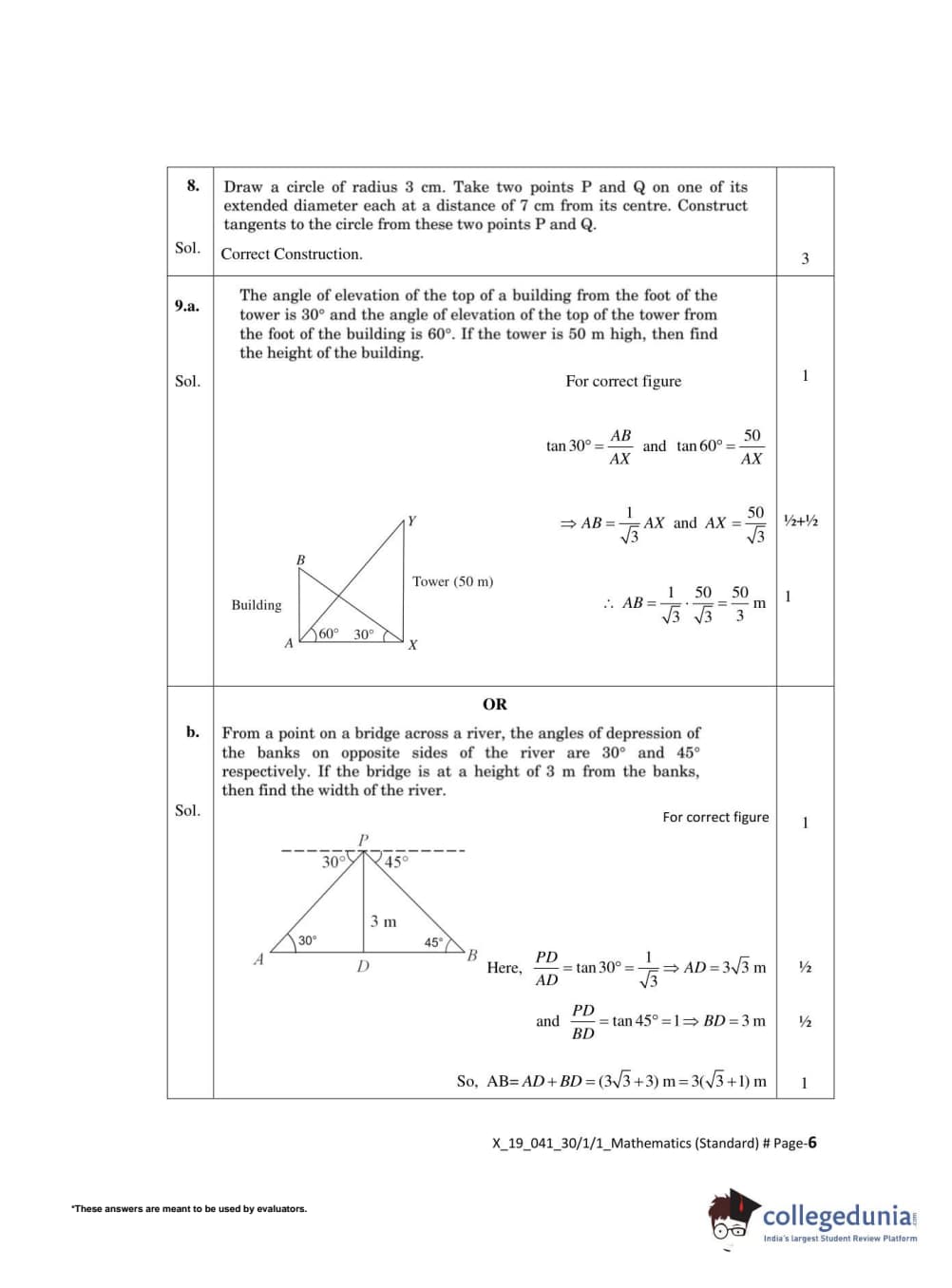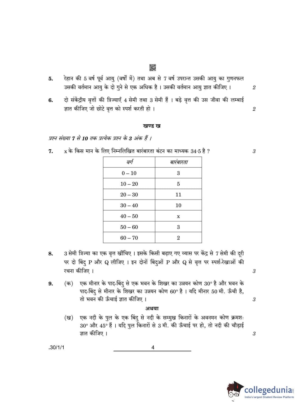 CBSE Class 10 Mathematics Standard Set 1 - 30/1/1 Question Paper 2022 with Answer Key (May 5)