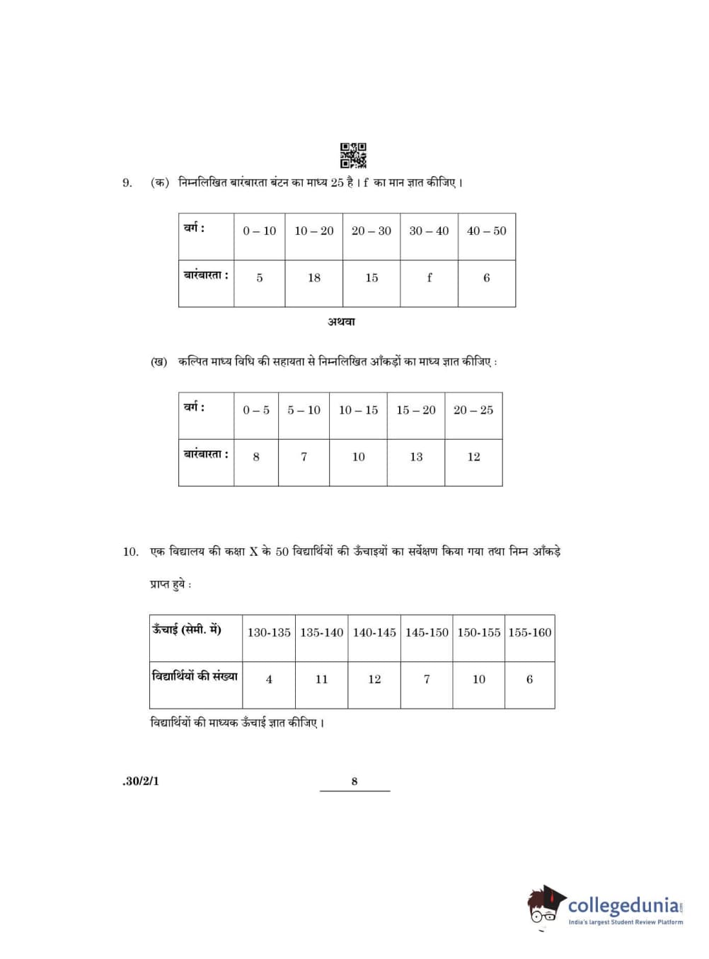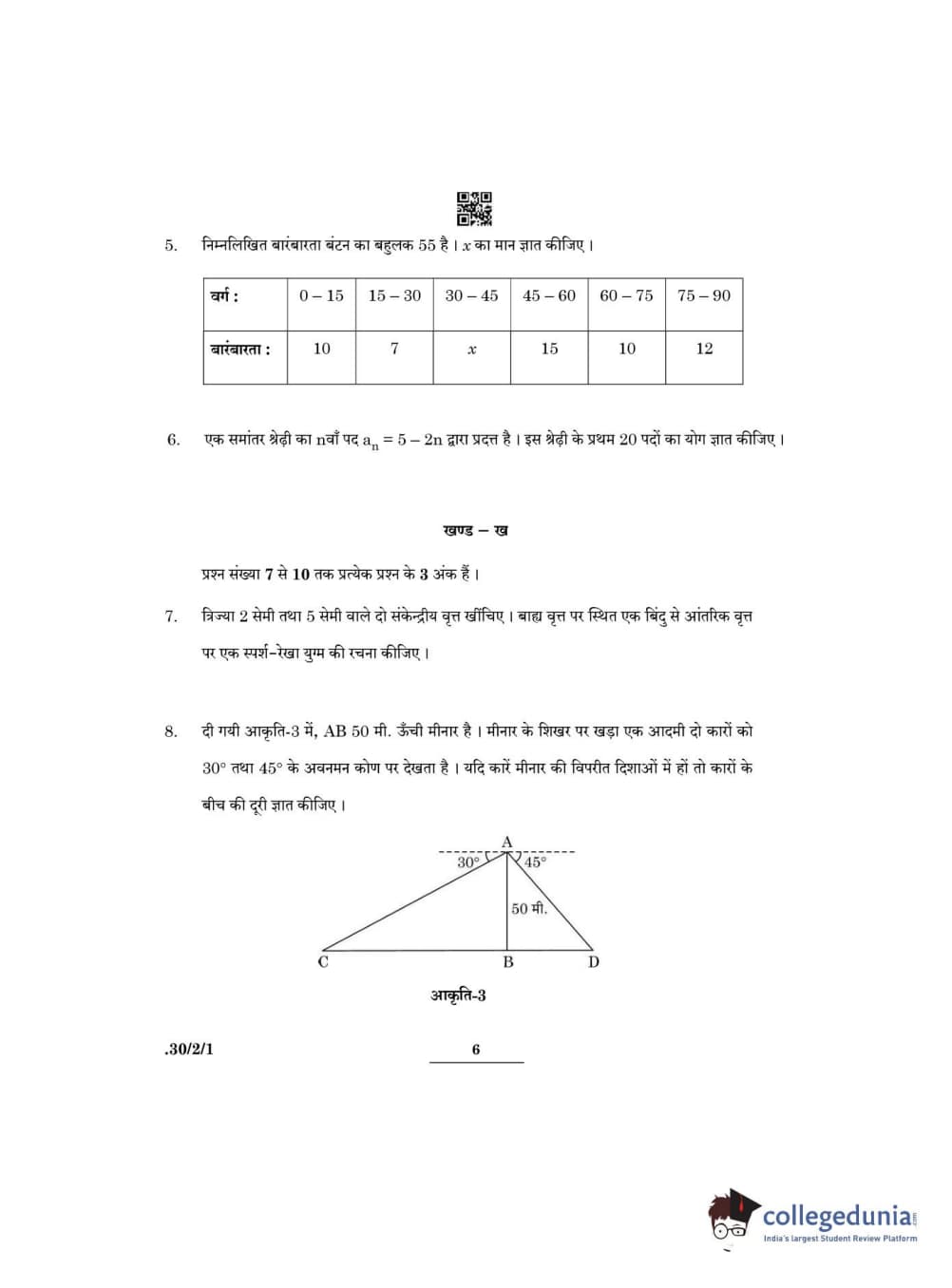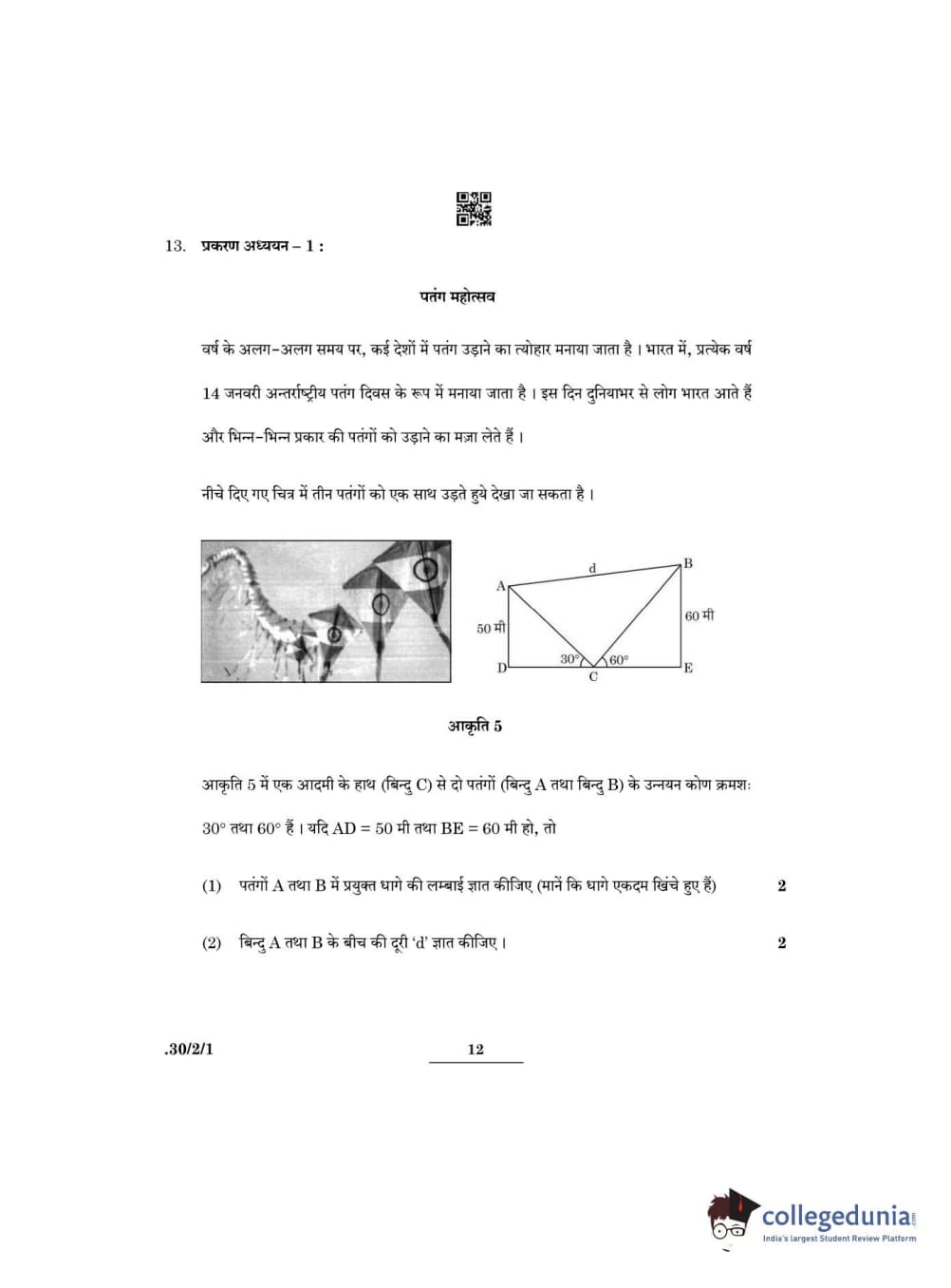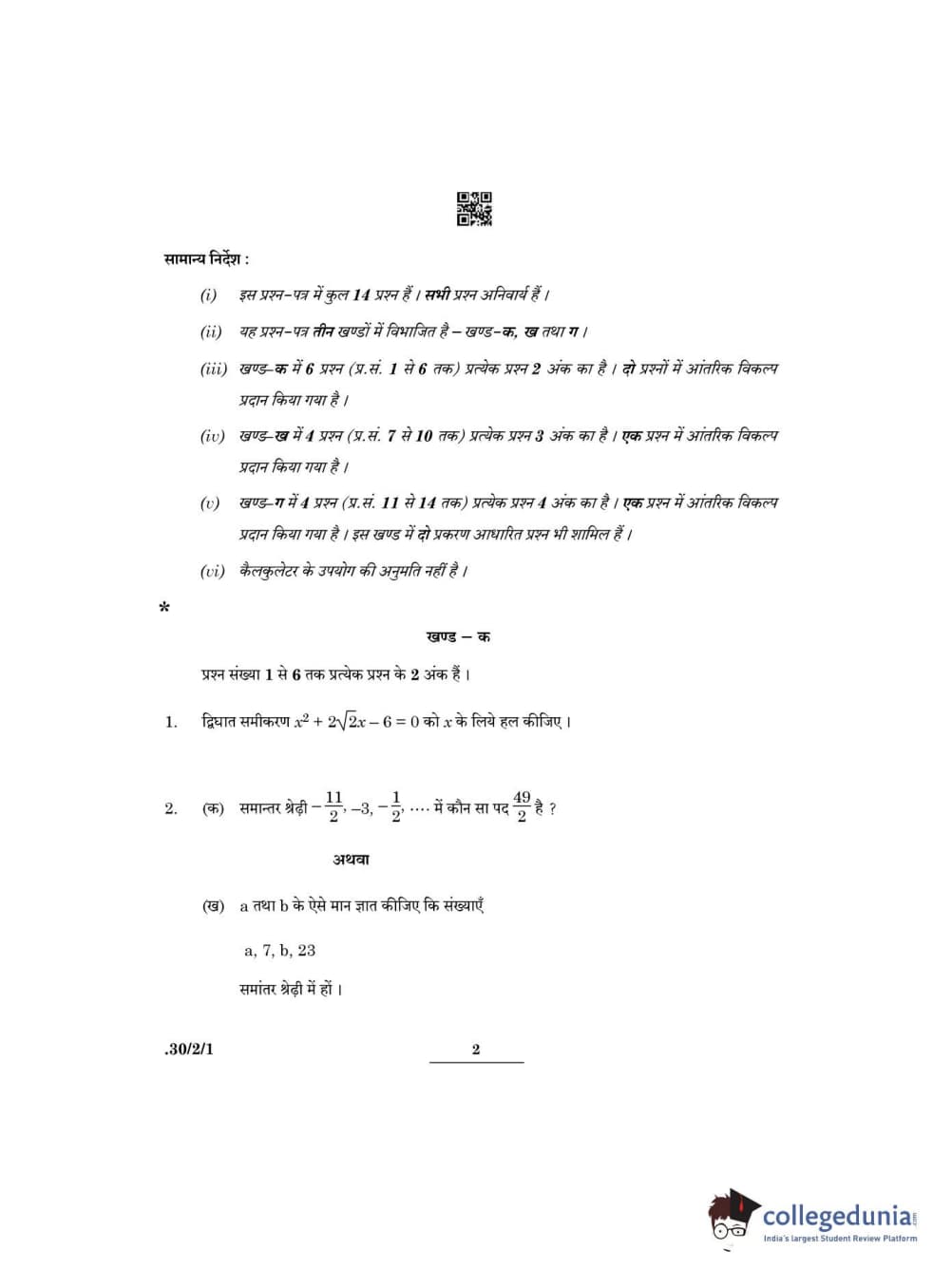 CBSE Class 10 Mathematics Standard Question Paper 2022 with Answer Key Set 1 - 30/2/1 is available for download. The exam was conducted by the Central Board of Secondary Education on May 5, 2022 in the Morning Session 10:30 AM to 12:30 PM. The medium of paper was English & Hindi. The question paper comprised a total of 14 questions divided among 3 sections.