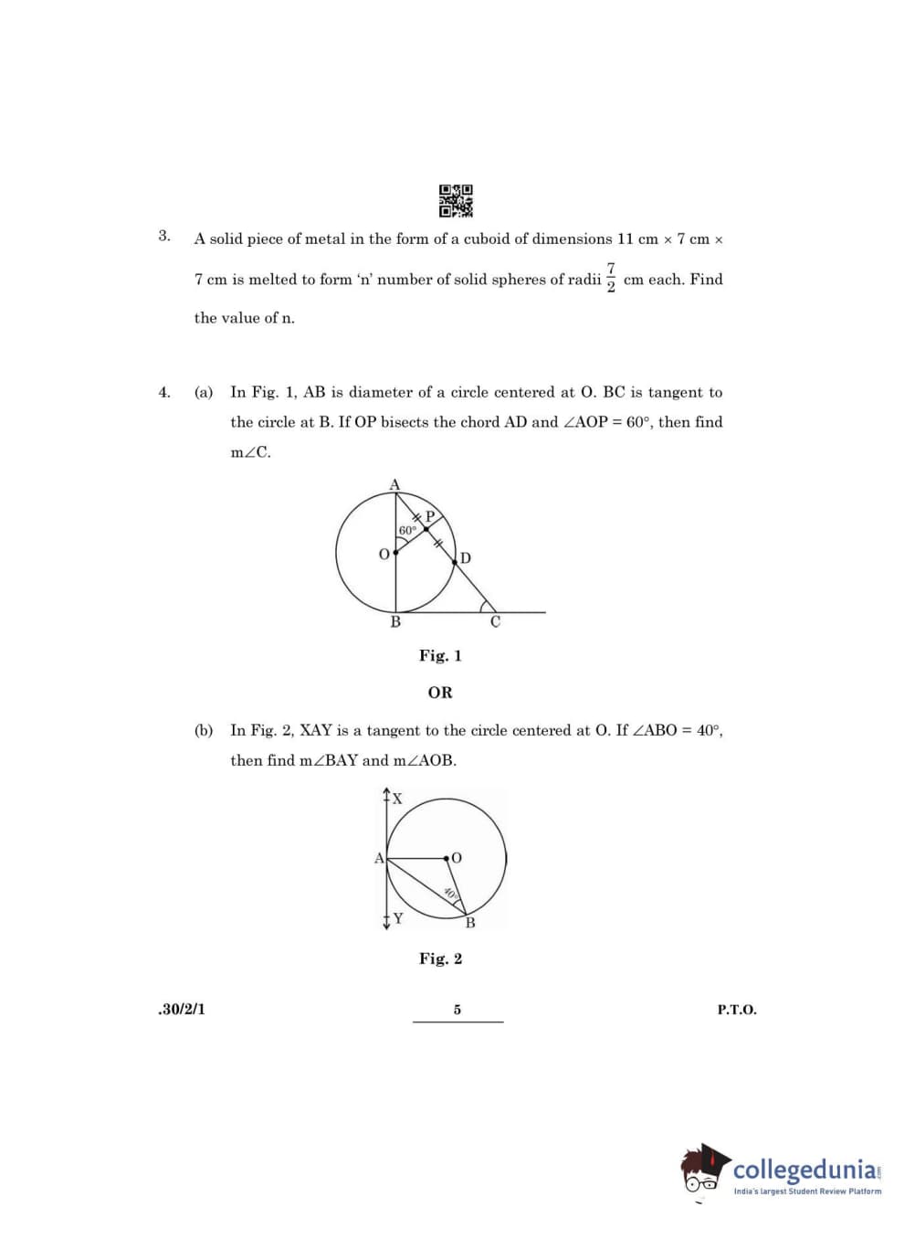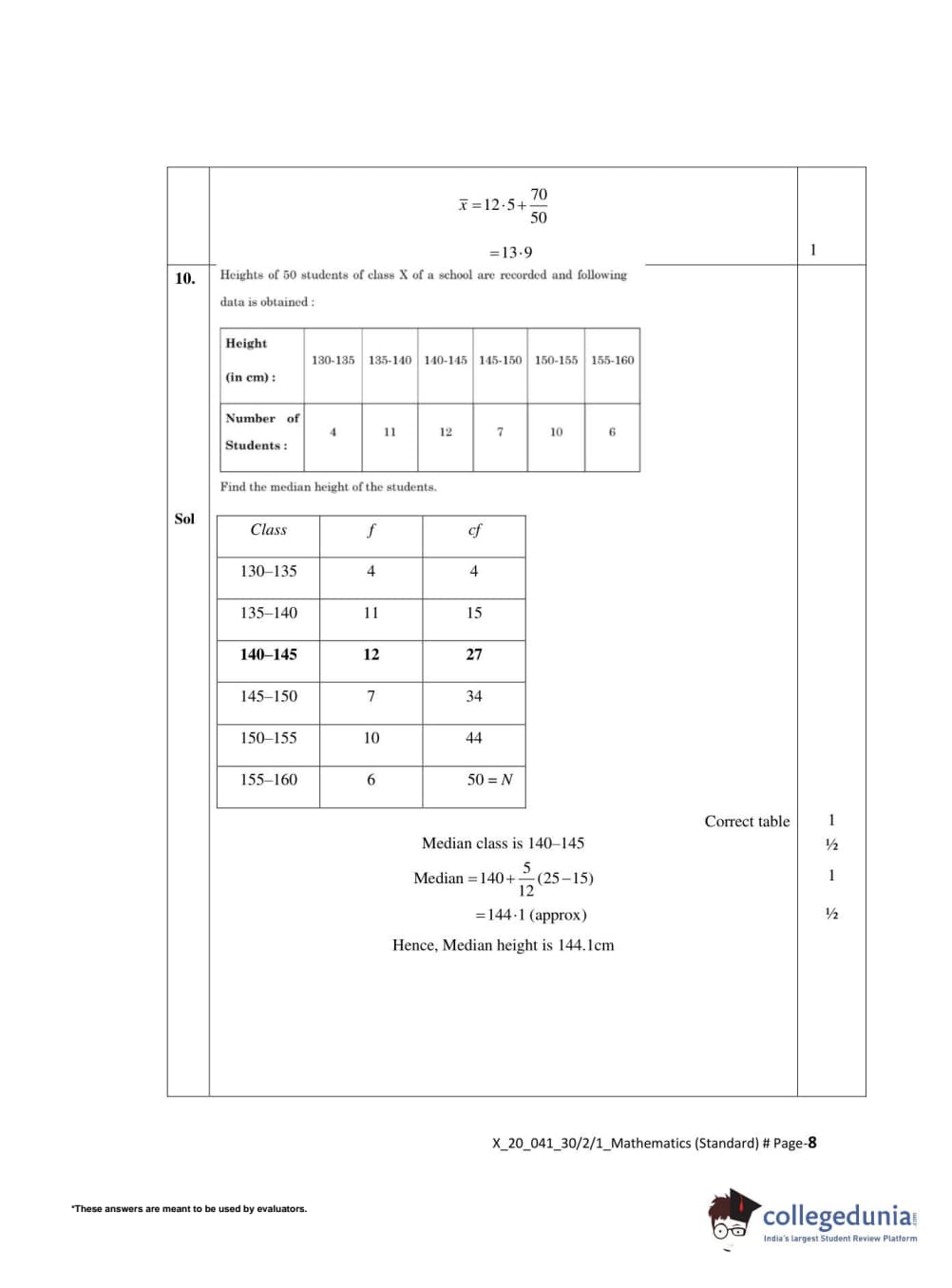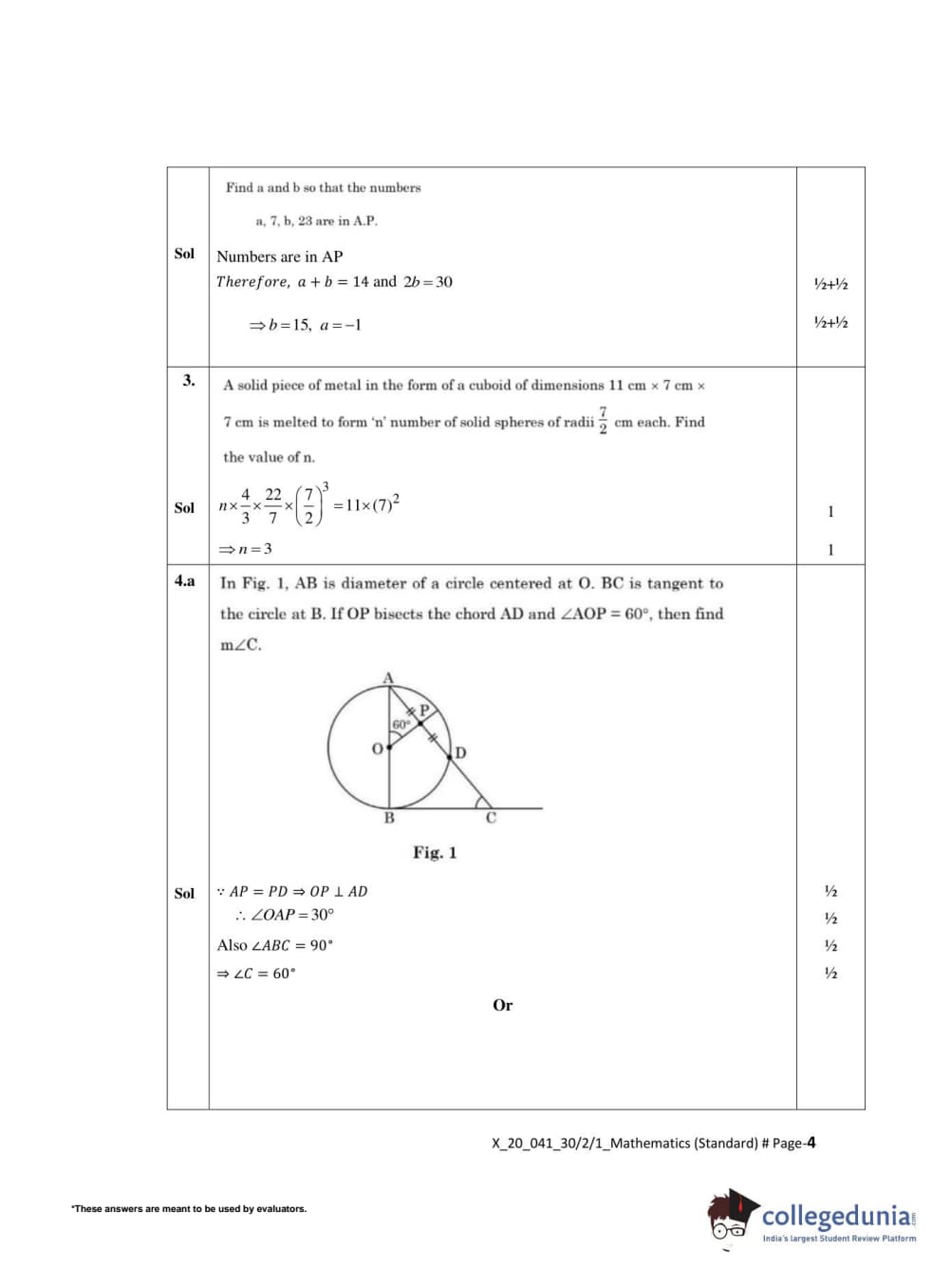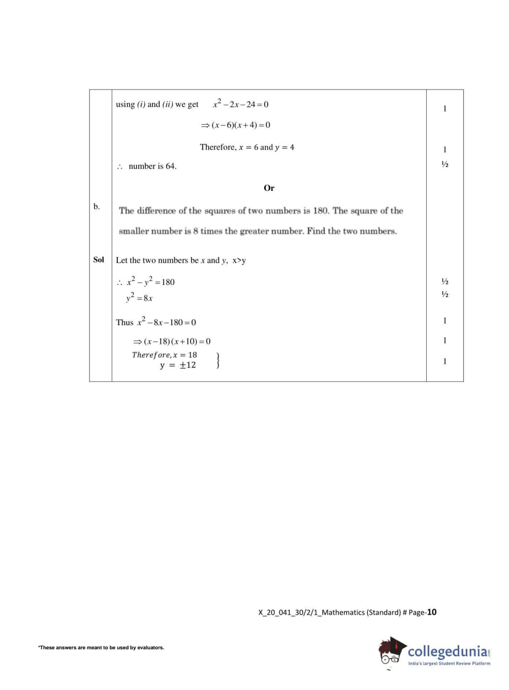 CBSE Class 10 Mathematics Standard Set 1 - 30/2/1 Question Paper 2022 with Answer Key (May 5)