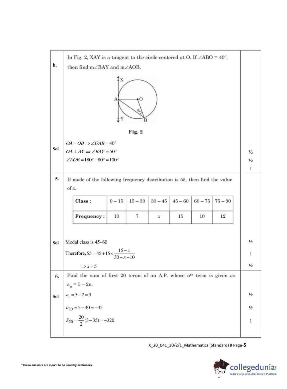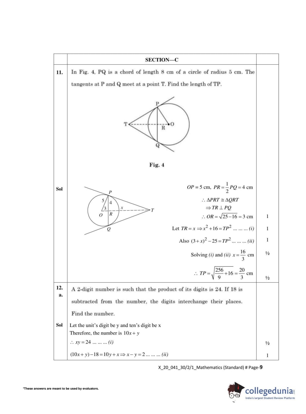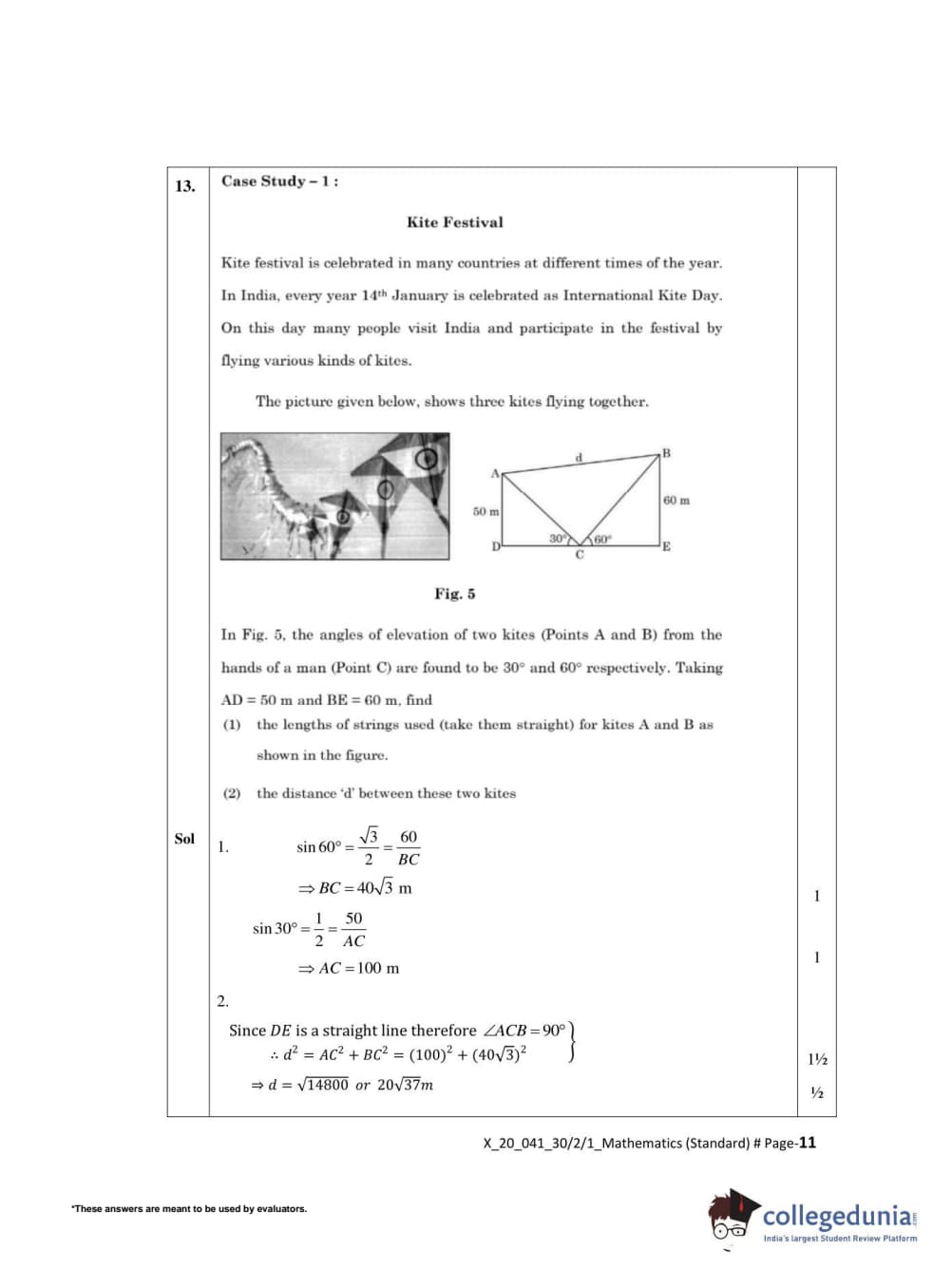 CBSE Class 10 Mathematics Standard Set 1 - 30/2/1 Question Paper 2022 with Answer Key (May 5)