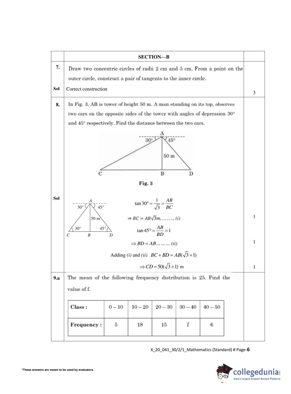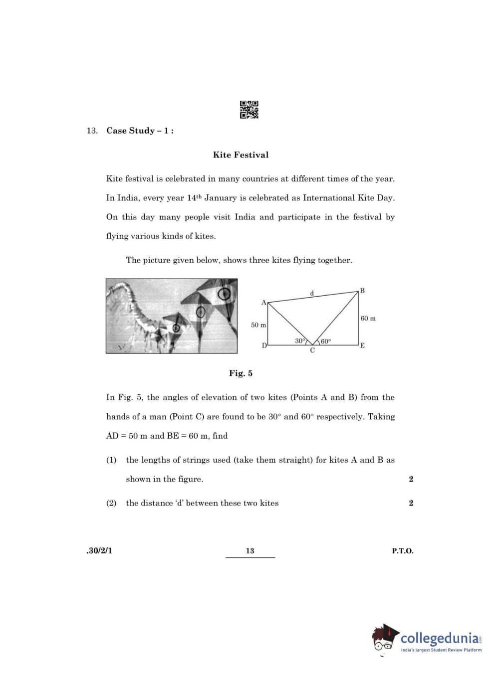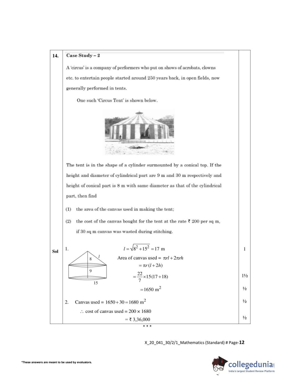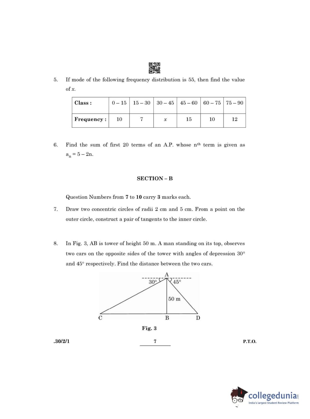 CBSE Class 10 Mathematics Standard Set 1 - 30/2/1 Question Paper 2022 with Answer Key (May 5)