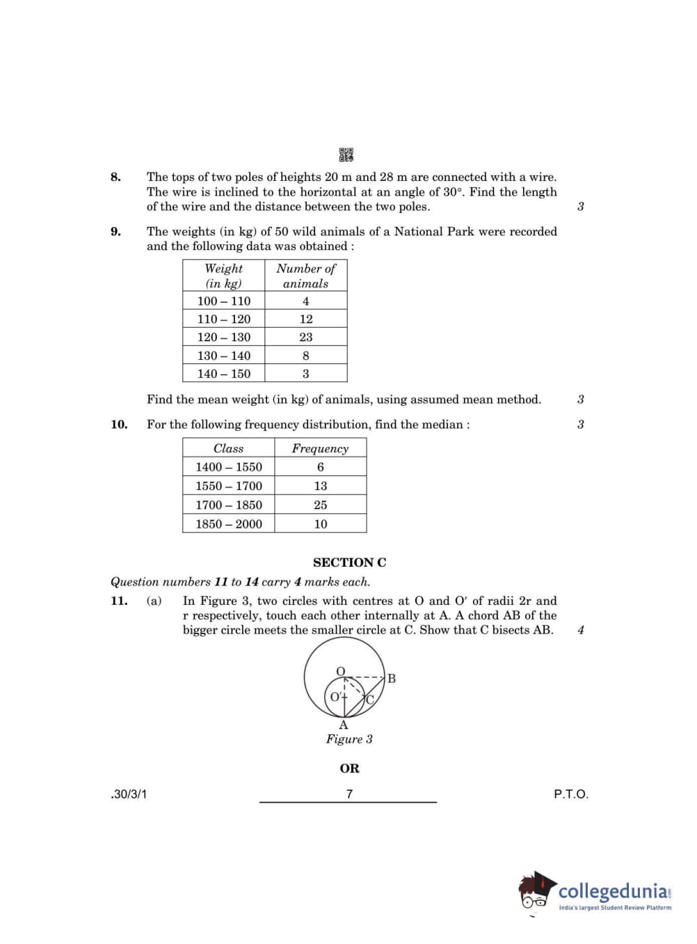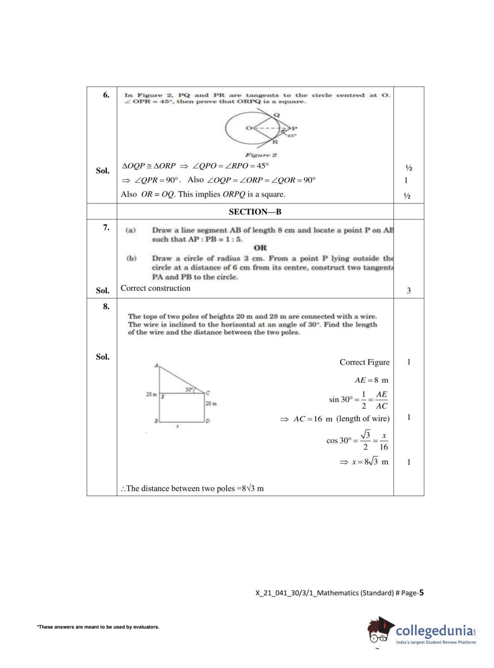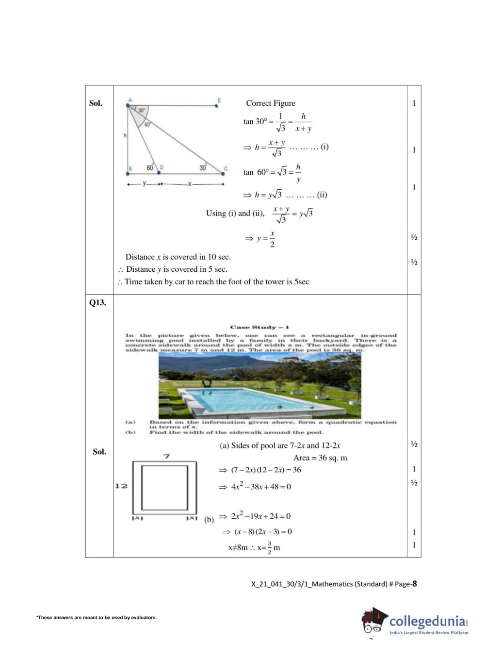 CBSE Class 10 Mathematics Standard Set 1 - 30/3/1 Question Paper 2022 with Answer Key (May 5)