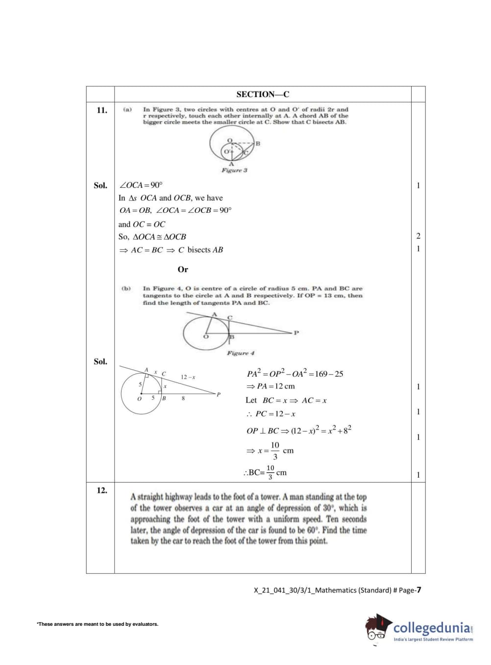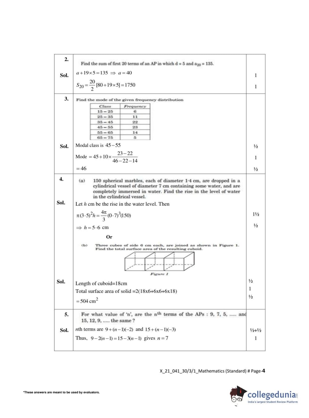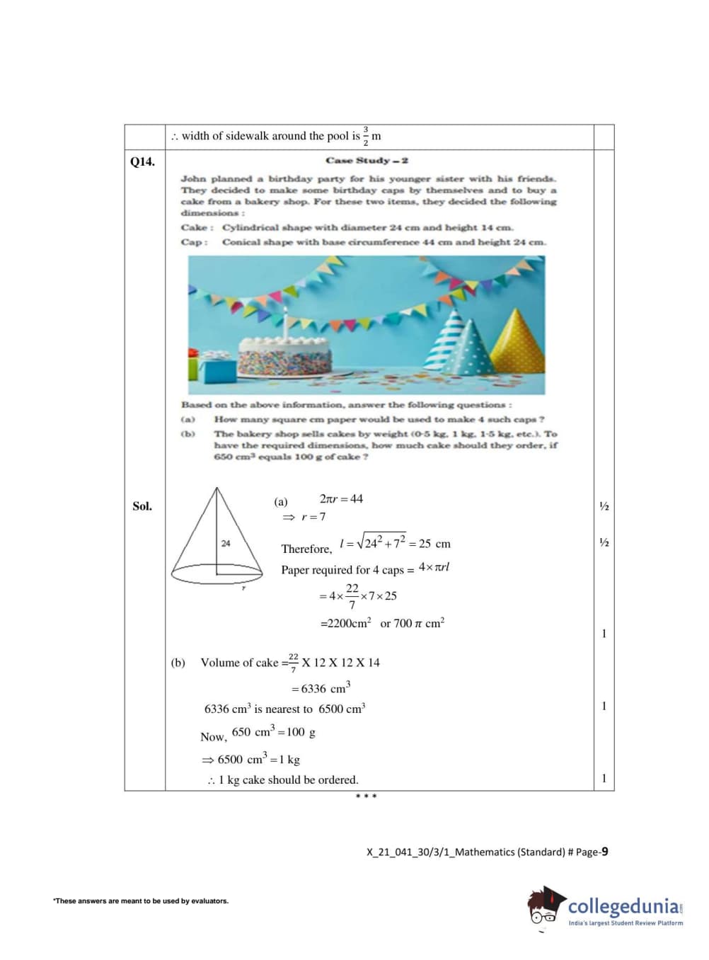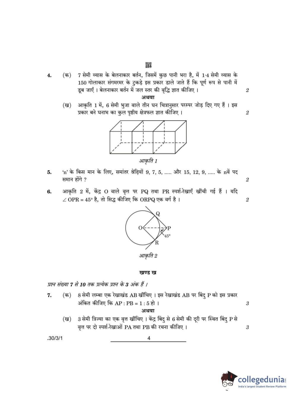 CBSE Class 10 Mathematics Standard Set 1 - 30/3/1 Question Paper 2022 with Answer Key (May 5)