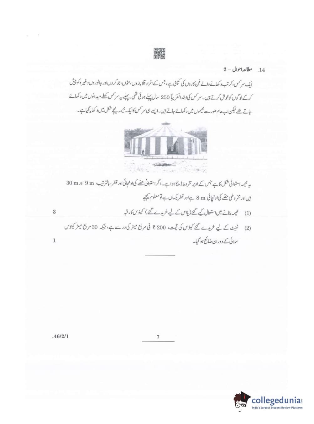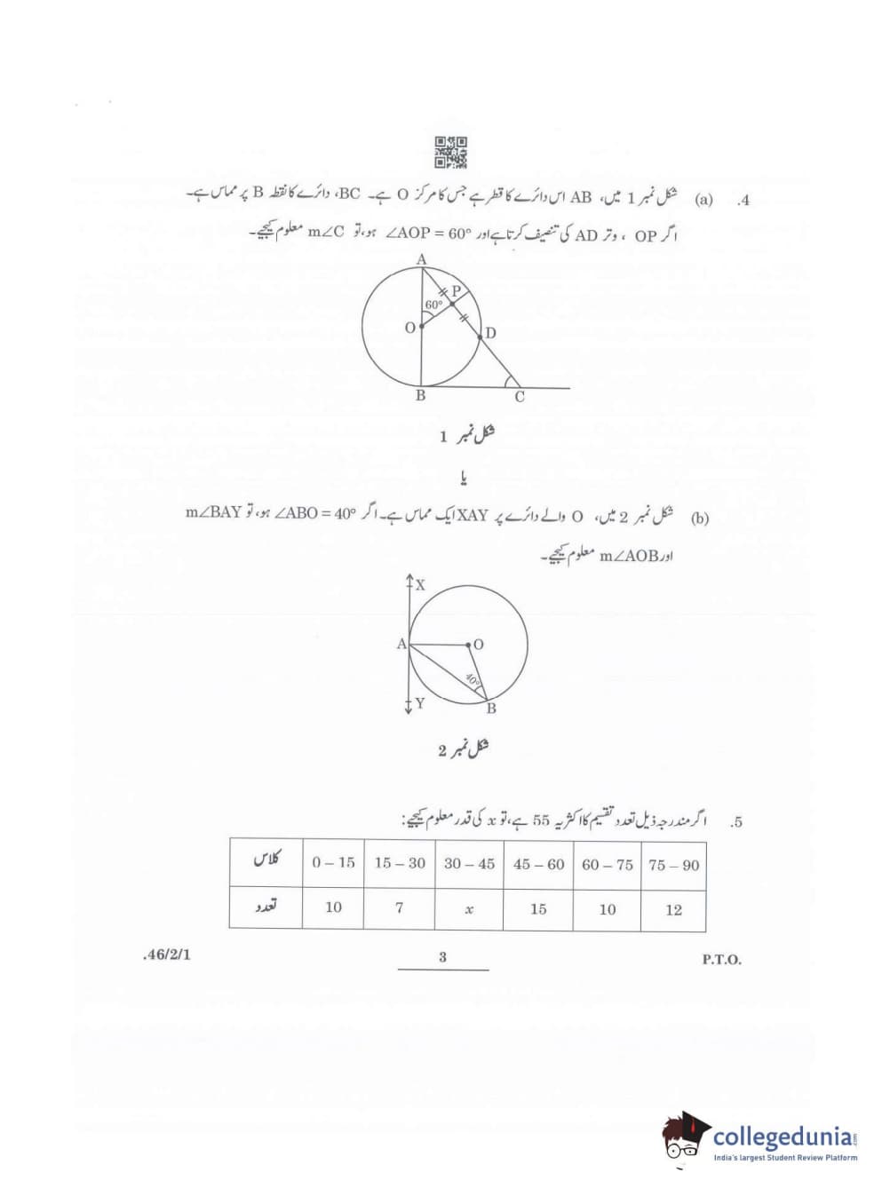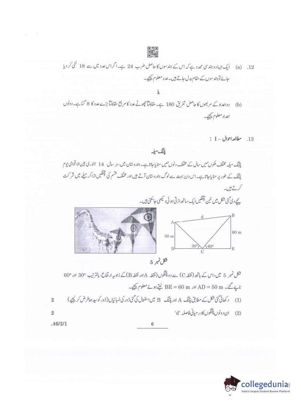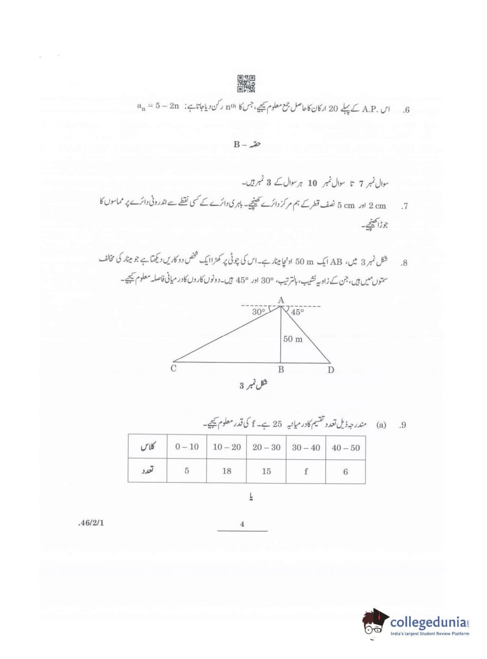 CBSE Class 10 Mathematics Standard Question Paper 2022 with Answer Key Set 1 - 46/2/1 is available for download. The exam was conducted by the Central Board of Secondary Education on May 5, 2022 in the Morning Session 10:30 AM to 12:30 PM. The medium of paper was Urdu. The question paper comprised a total of 14 questions divided among 3 sections.