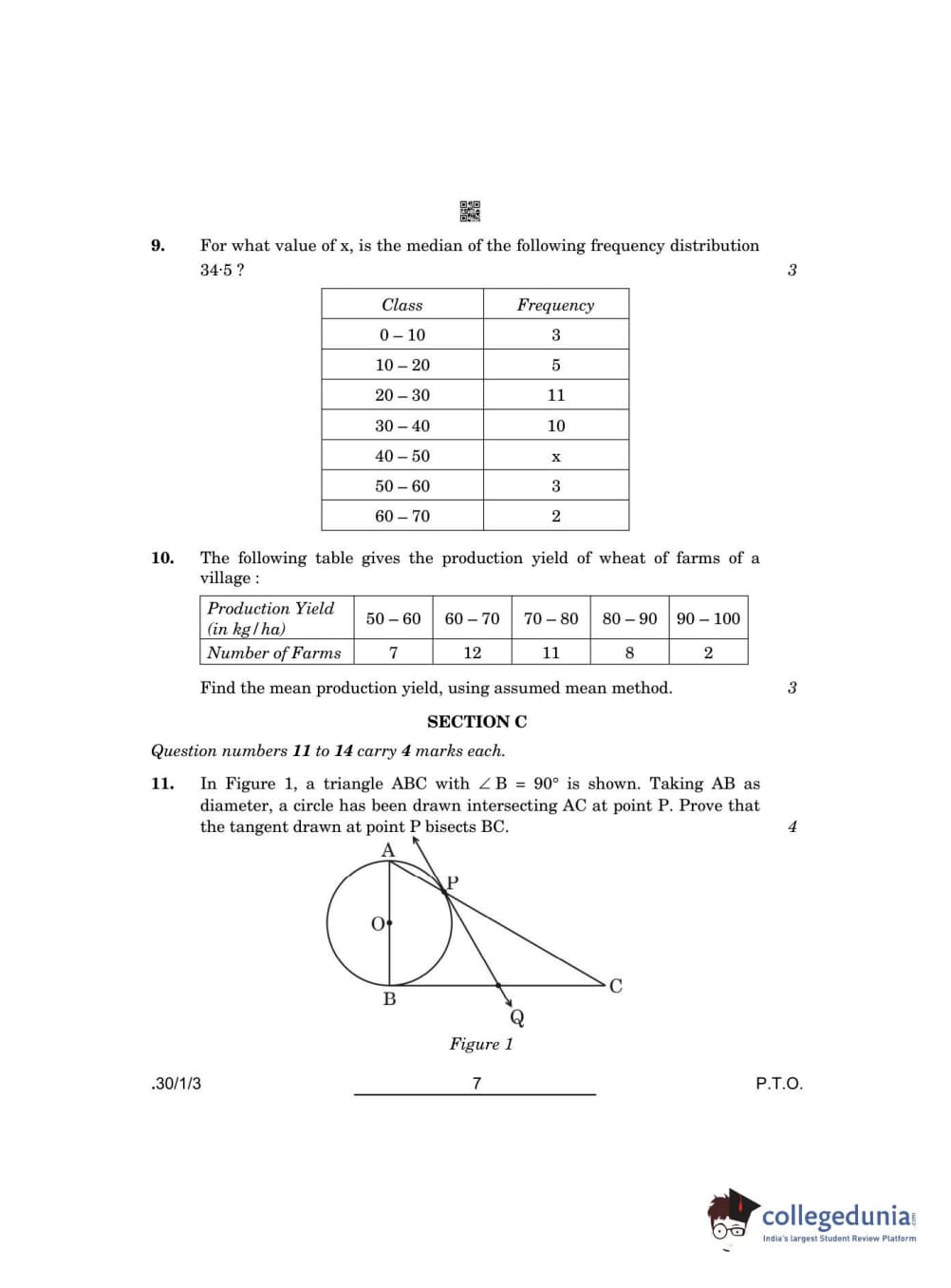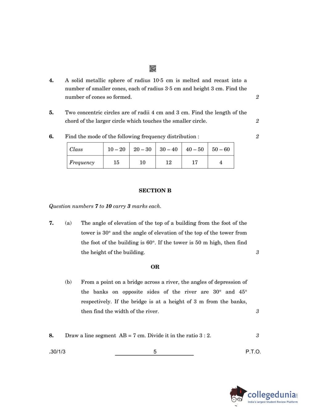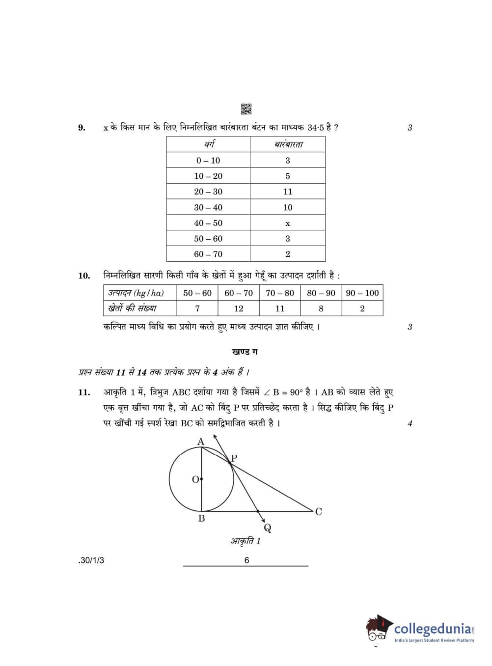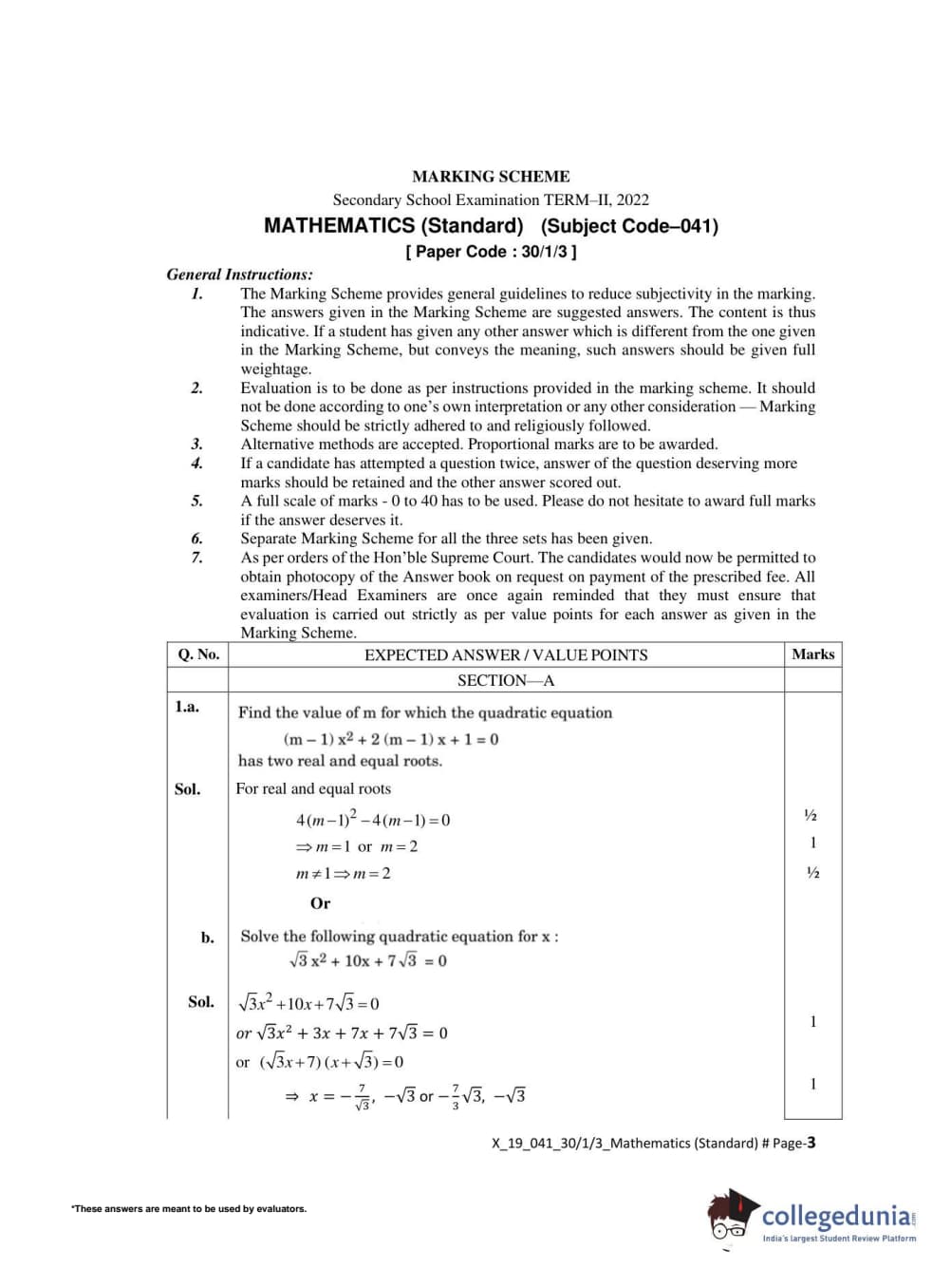 CBSE Class 10 Mathematics Standard Set 3 - 30/1/3 Question Paper 2022 with Answer Key (May 5)