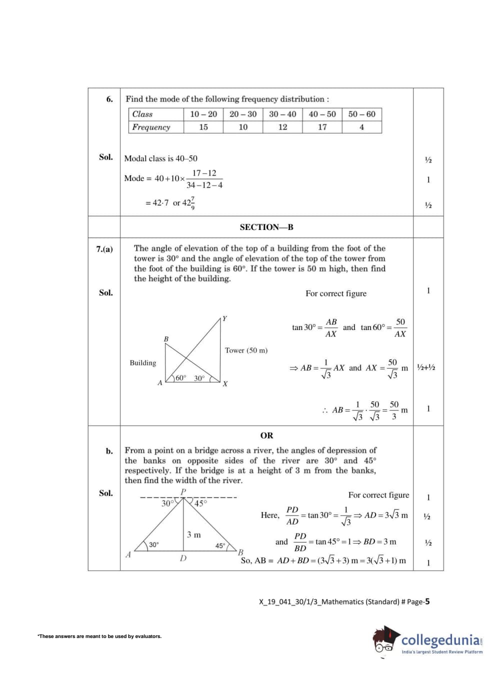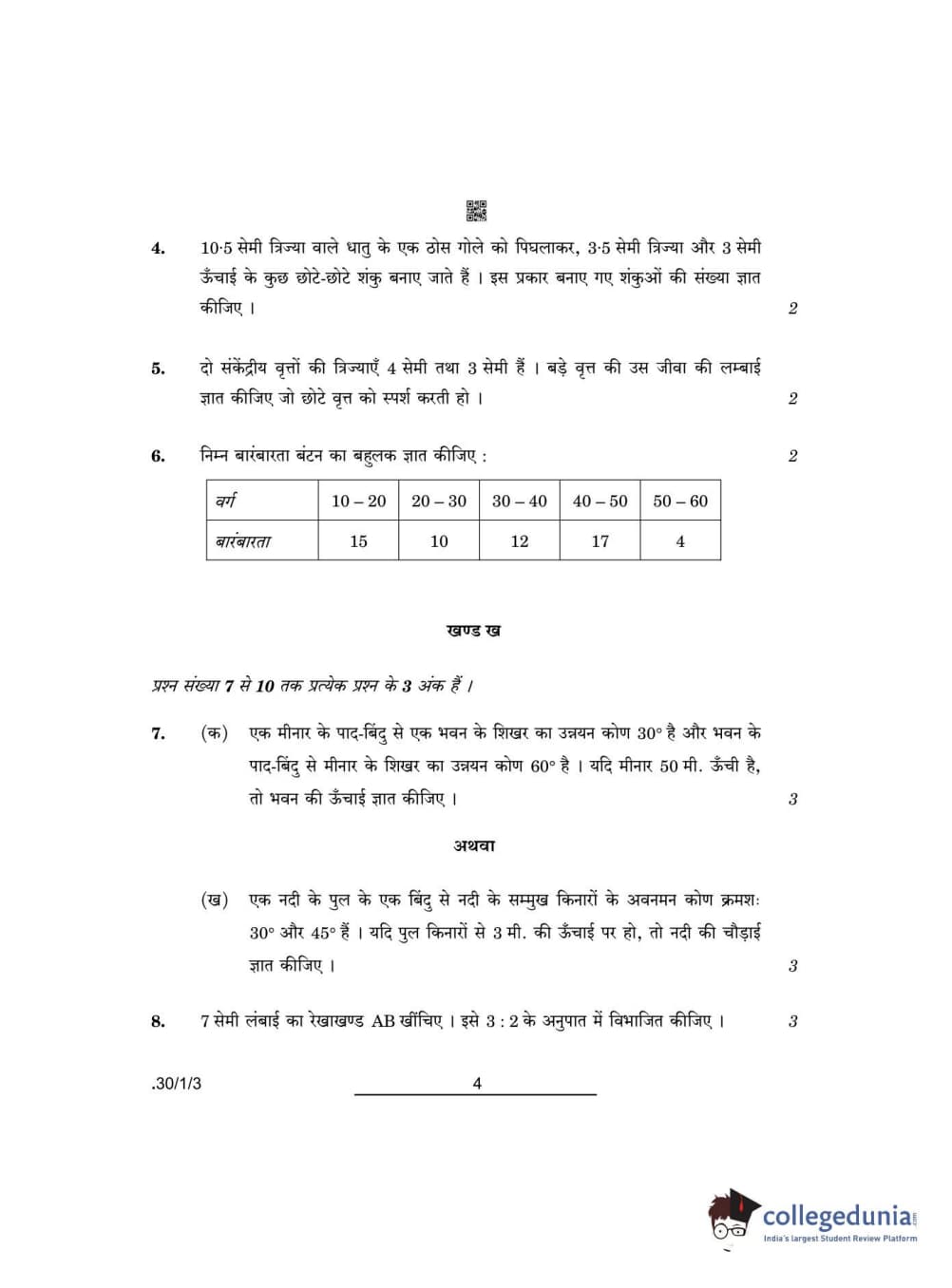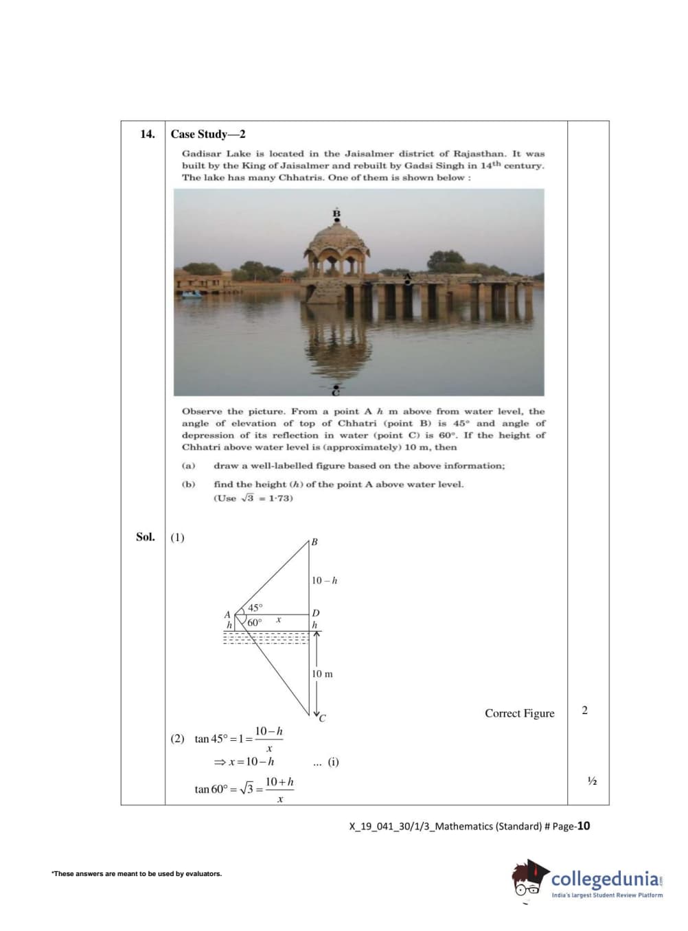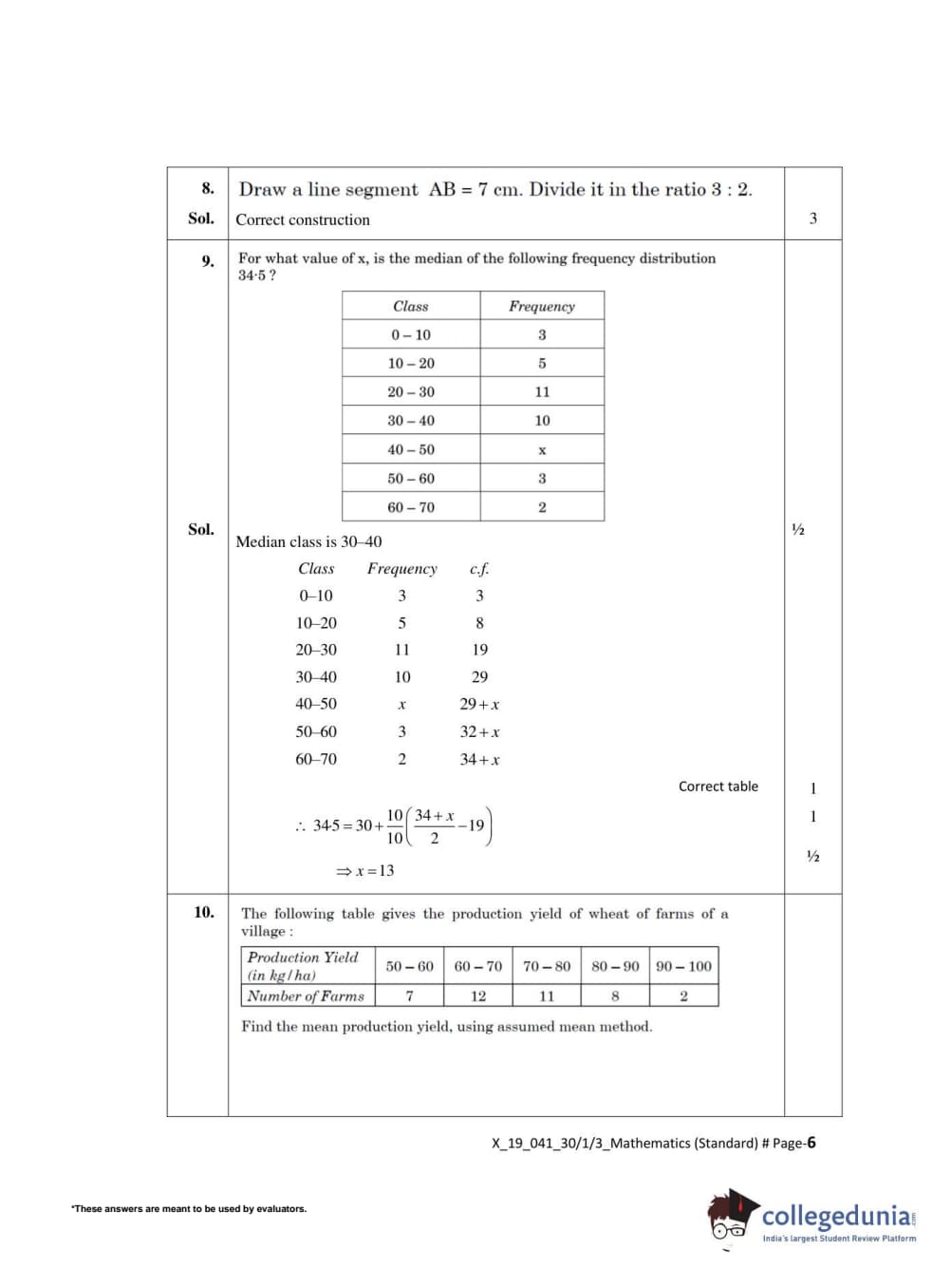 CBSE Class 10 Mathematics Standard Set 3 - 30/1/3 Question Paper 2022 with Answer Key (May 5)