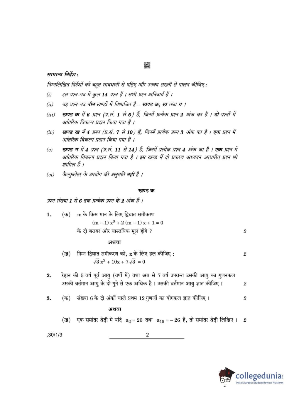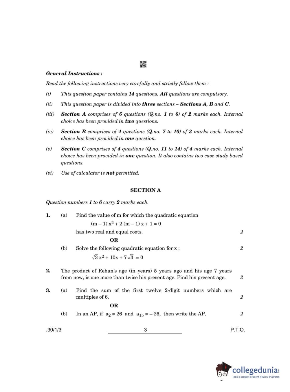 CBSE Class 10 Mathematics Standard Question Paper 2022 with Answer Key Set 3 - 30/1/3 is available for download. The exam was conducted by the Central Board of Secondary Education on May 5, 2022 in the Morning Session 10:30 AM to 12:30 PM. The medium of paper was English & Hindi. The question paper comprised a total of 14 questions divided among 3 sections.