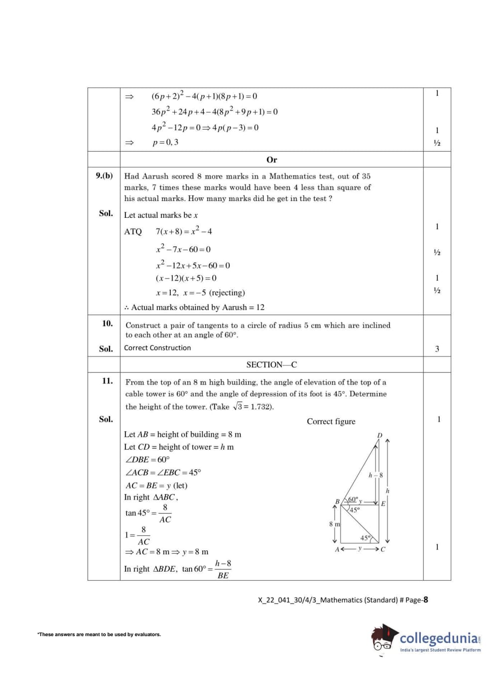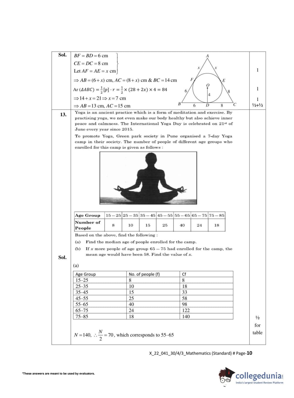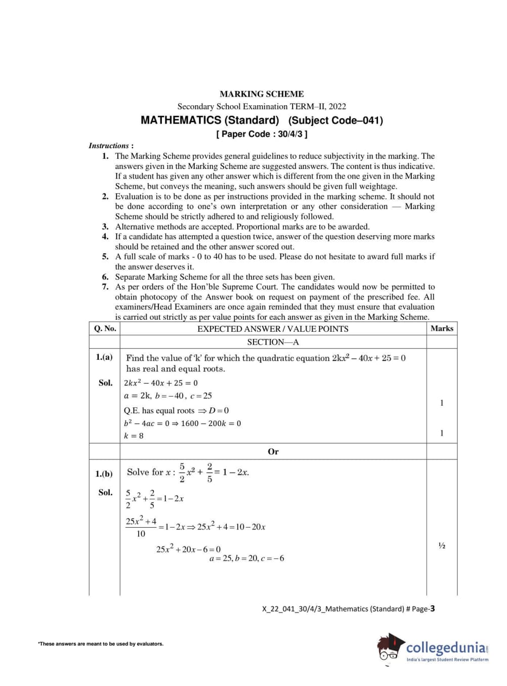 CBSE Class 10 Mathematics Standard Set 3 - 30/4/3 Question Paper 2022 with Answer Key (May 5)