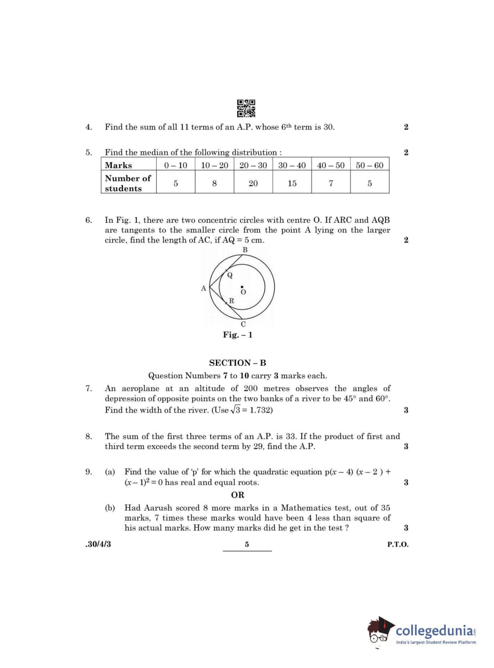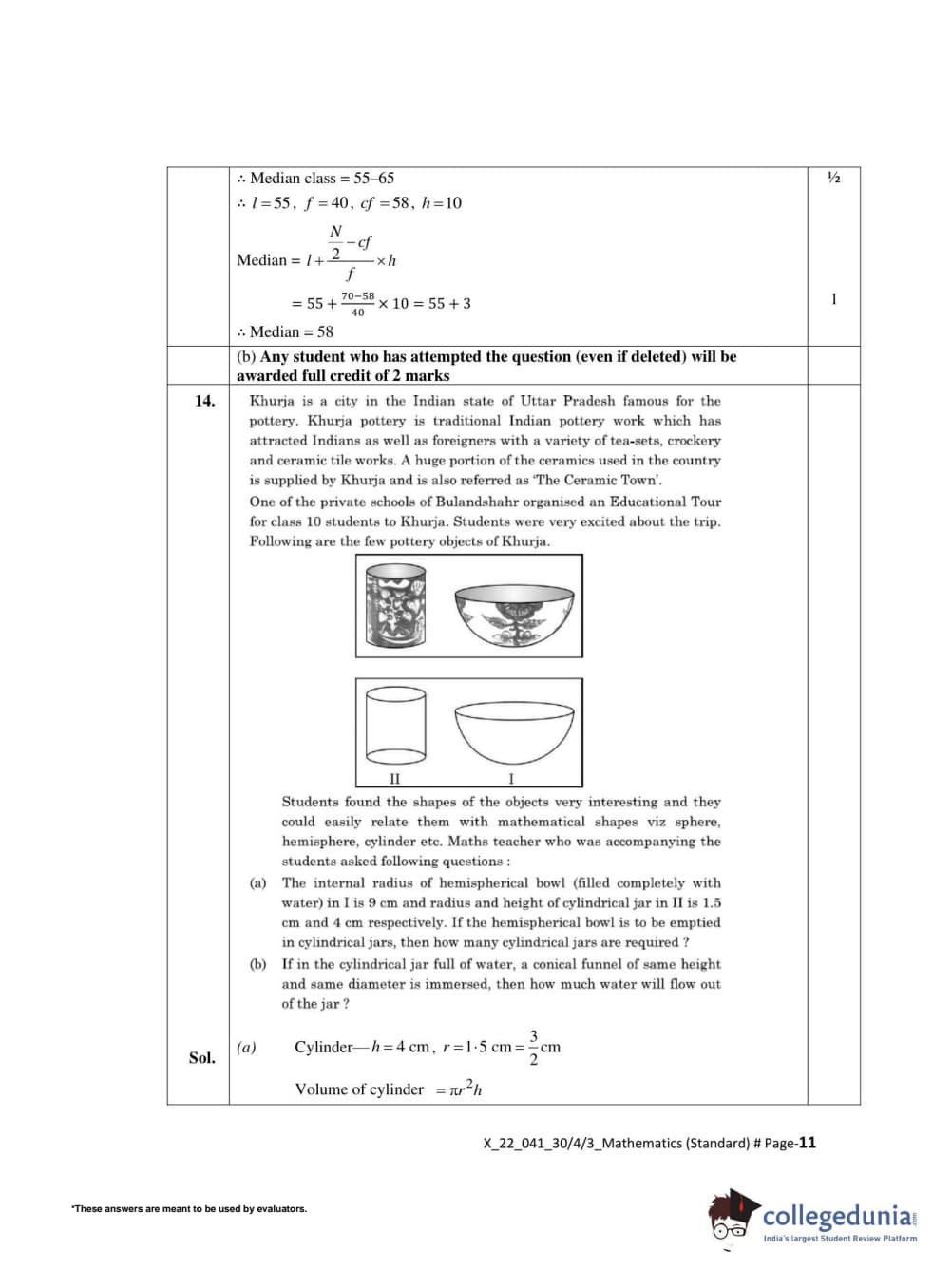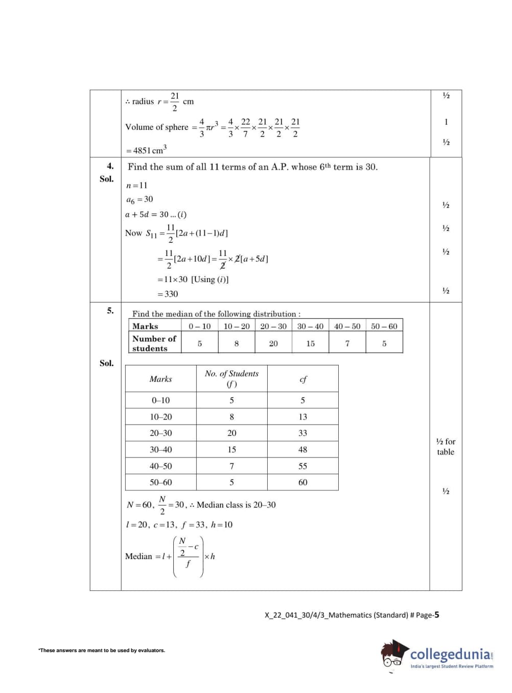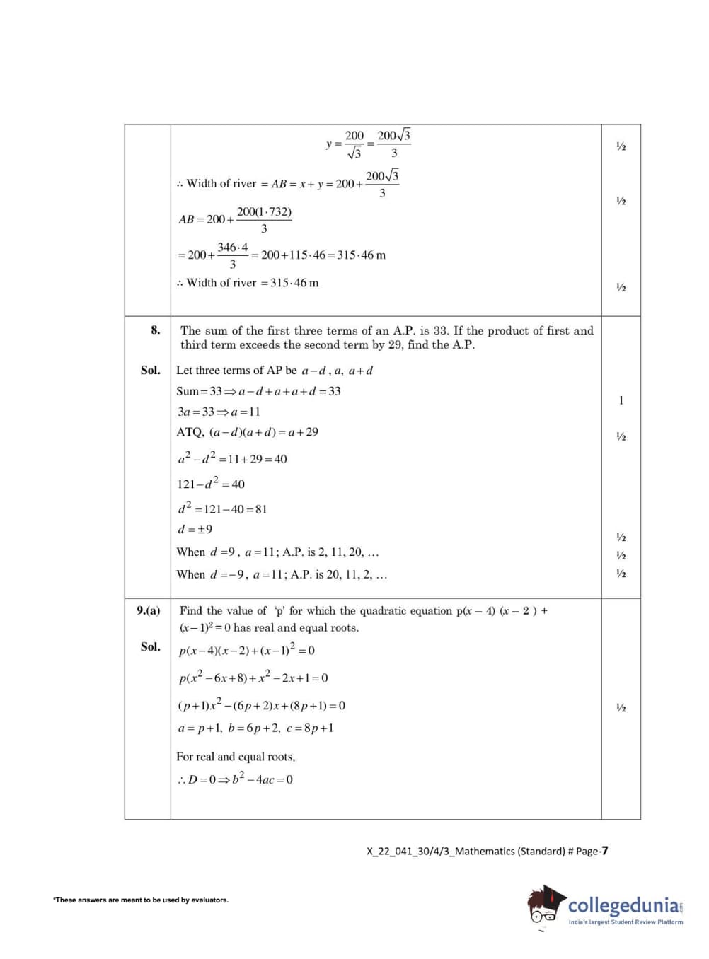 CBSE Class 10 Mathematics Standard Set 3 - 30/4/3 Question Paper 2022 with Answer Key (May 5)