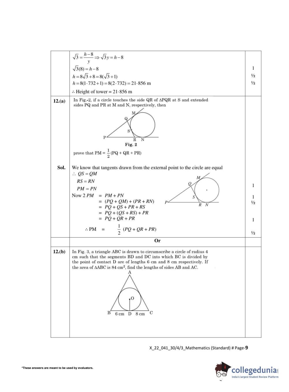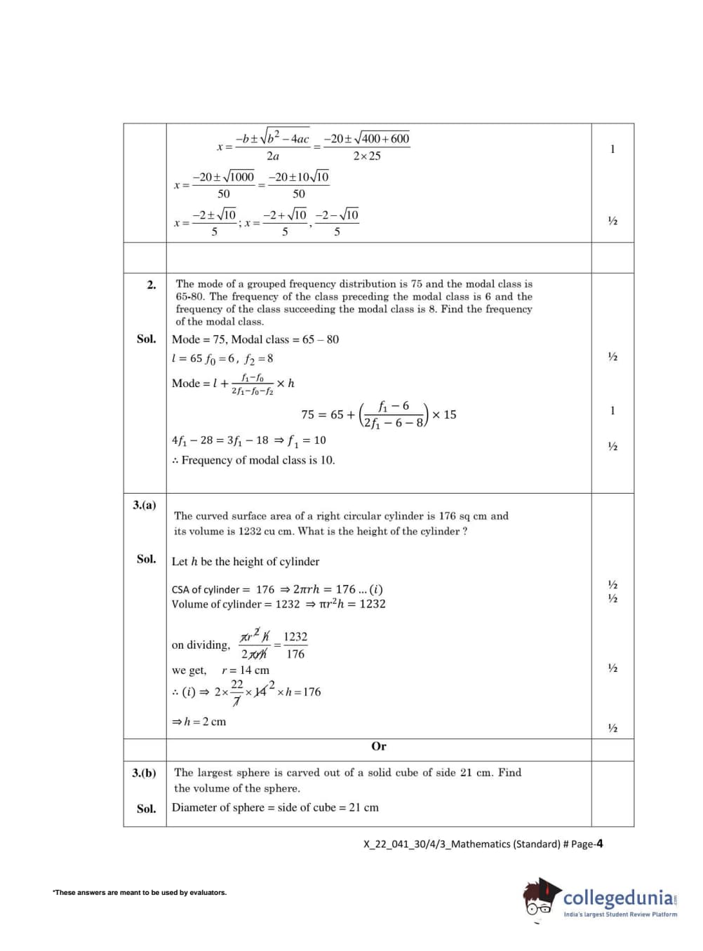 | CBSE Class 10 Mathematics Standard Question Paper 2022 PDF | CBSE Class 10 Mathematics Standard Answer Key 2022 PDF | Detailed Solutions |
