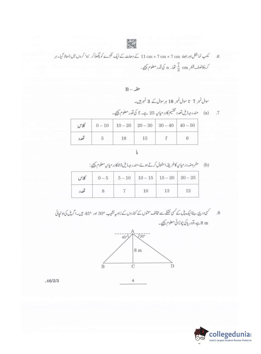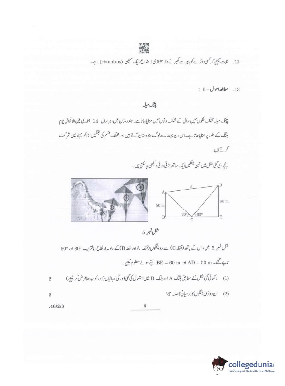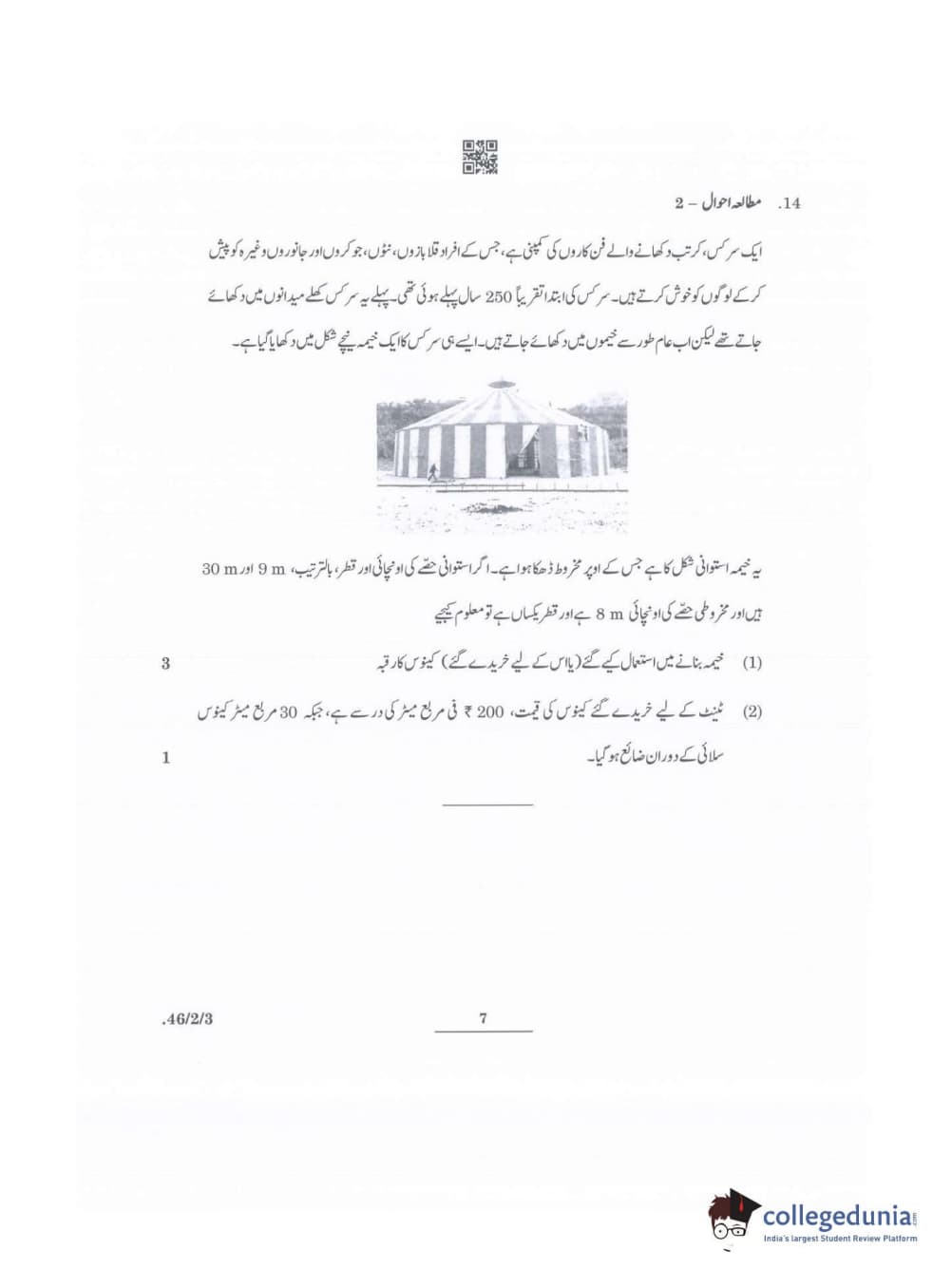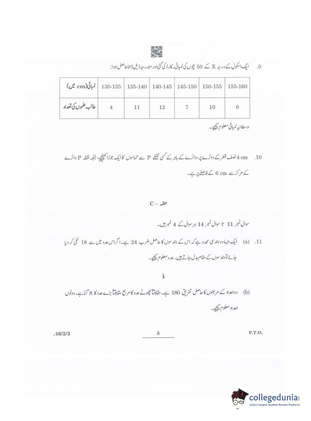 CBSE Class 10 Mathematics Standard Question Paper 2022 with Answer Key Set 3 - 46/2/3 is available for download. The exam was conducted by the Central Board of Secondary Education on May 5, 2022 in the Morning Session 10:30 AM to 12:30 PM. The medium of paper was Urdu. The question paper comprised a total of 14 questions divided among 3 sections.