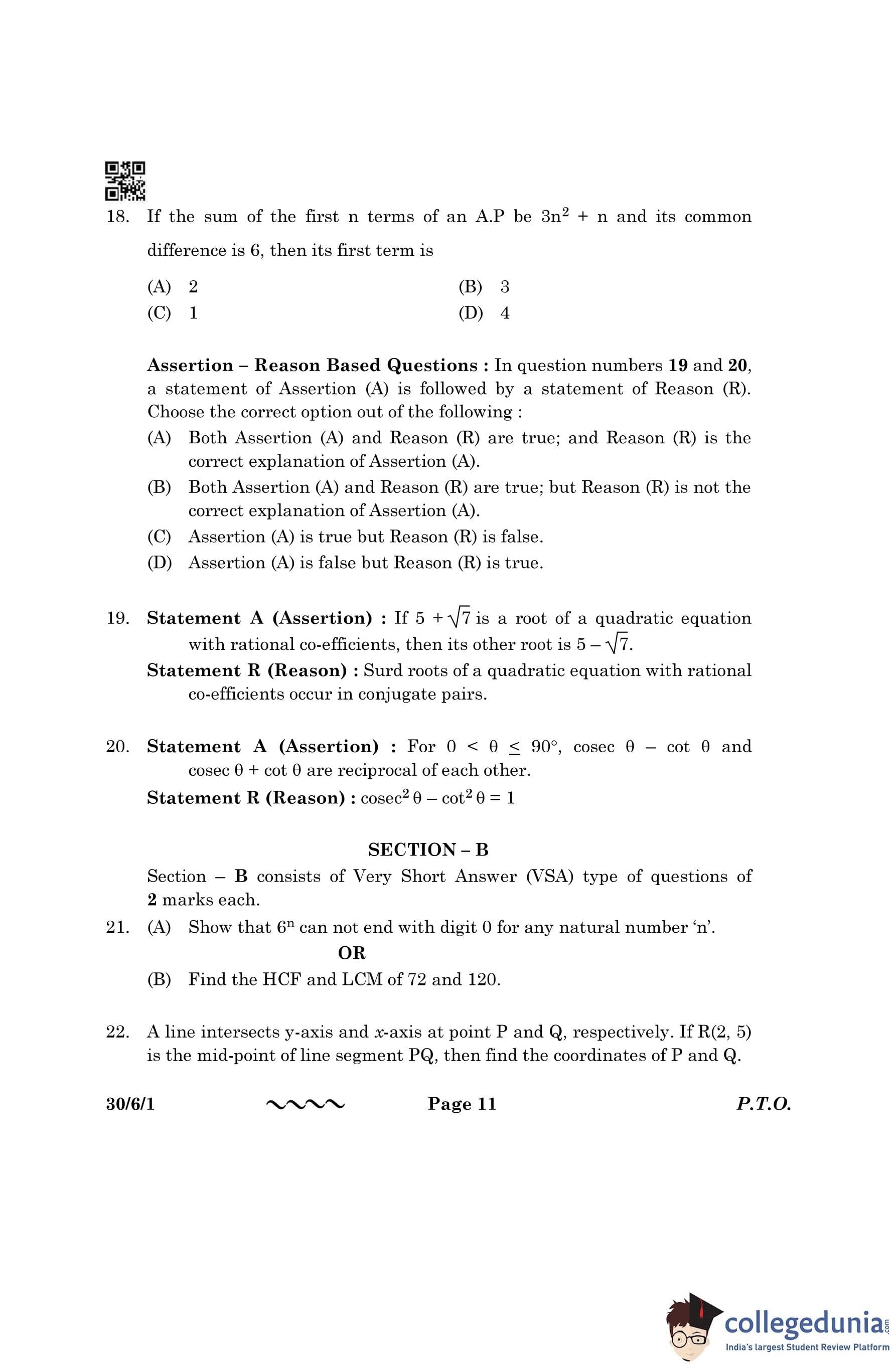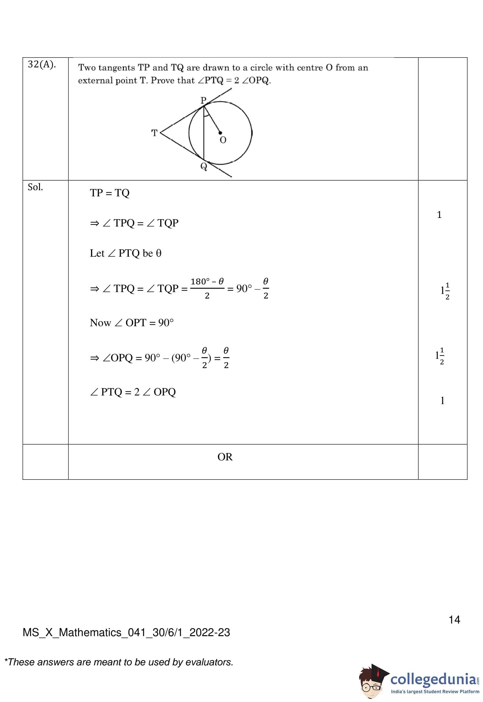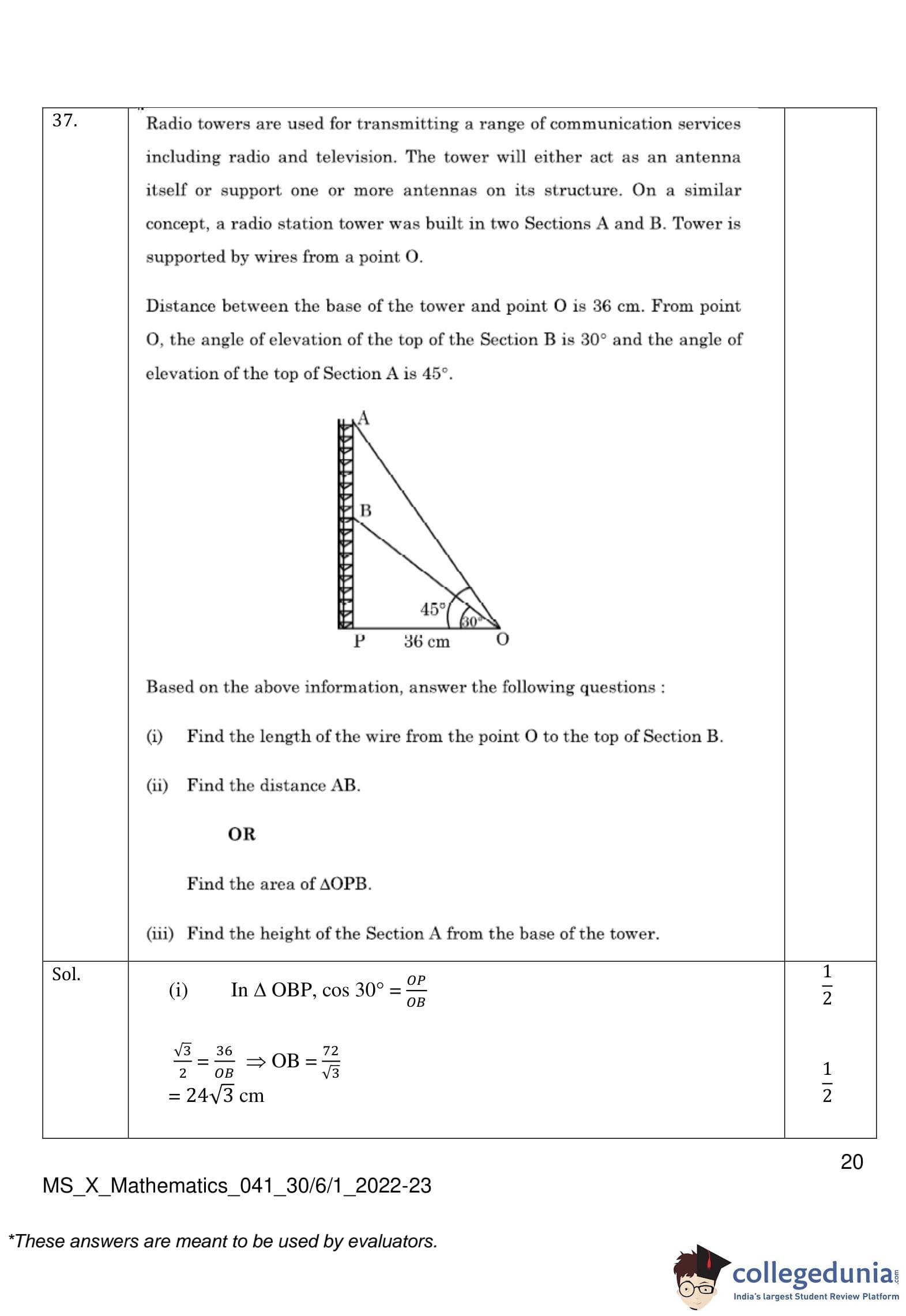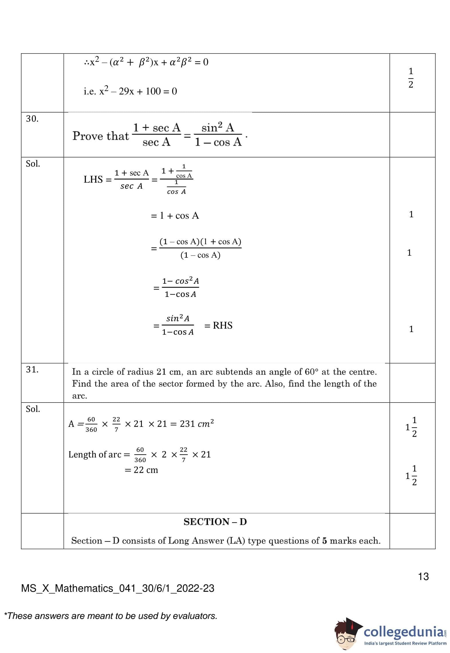 CBSE Class 10 Mathematics Standard (Set 1- 30/6/1) Question Paper 2023 with Answer Key