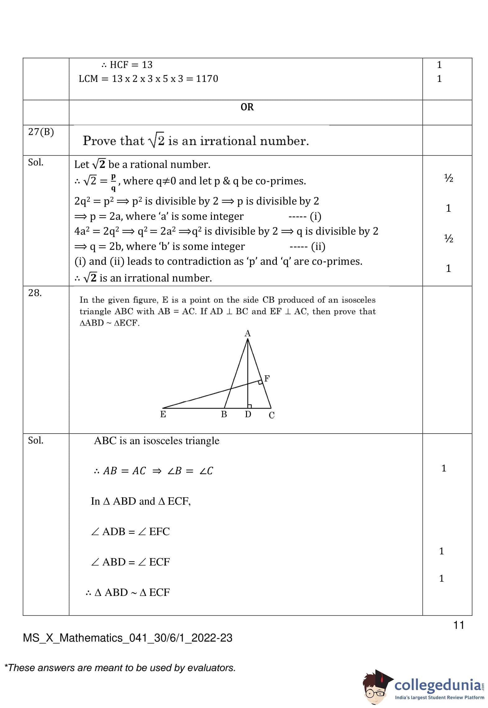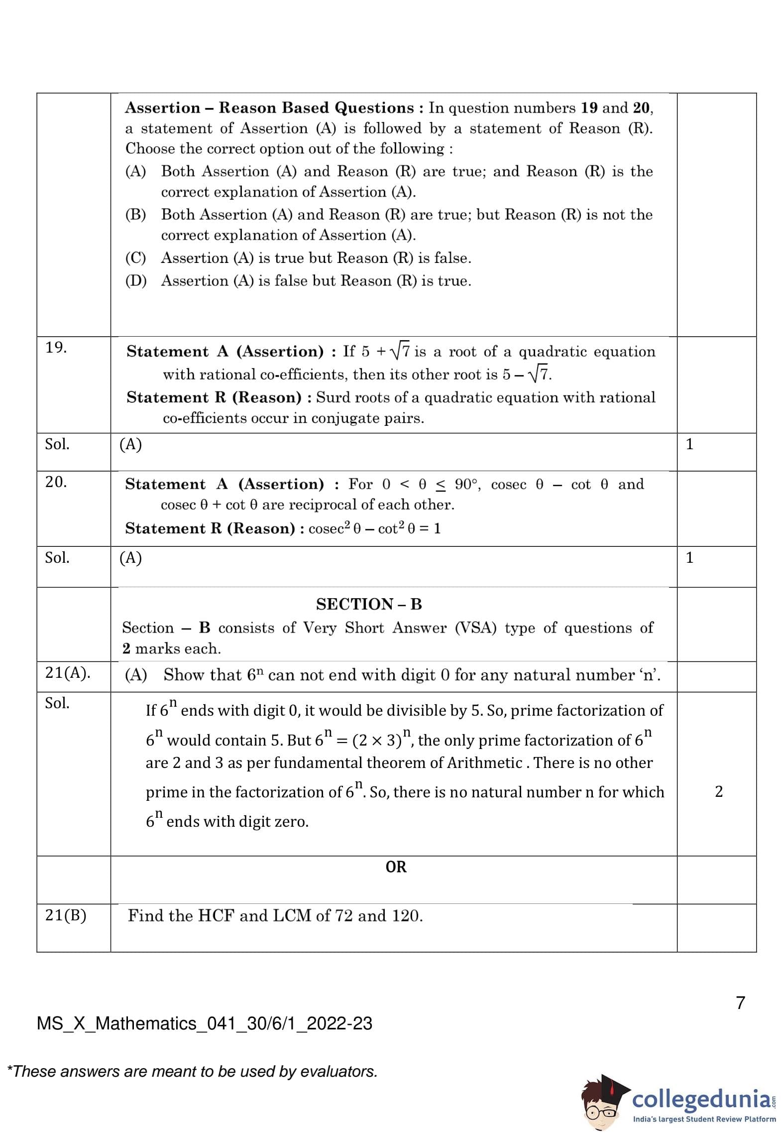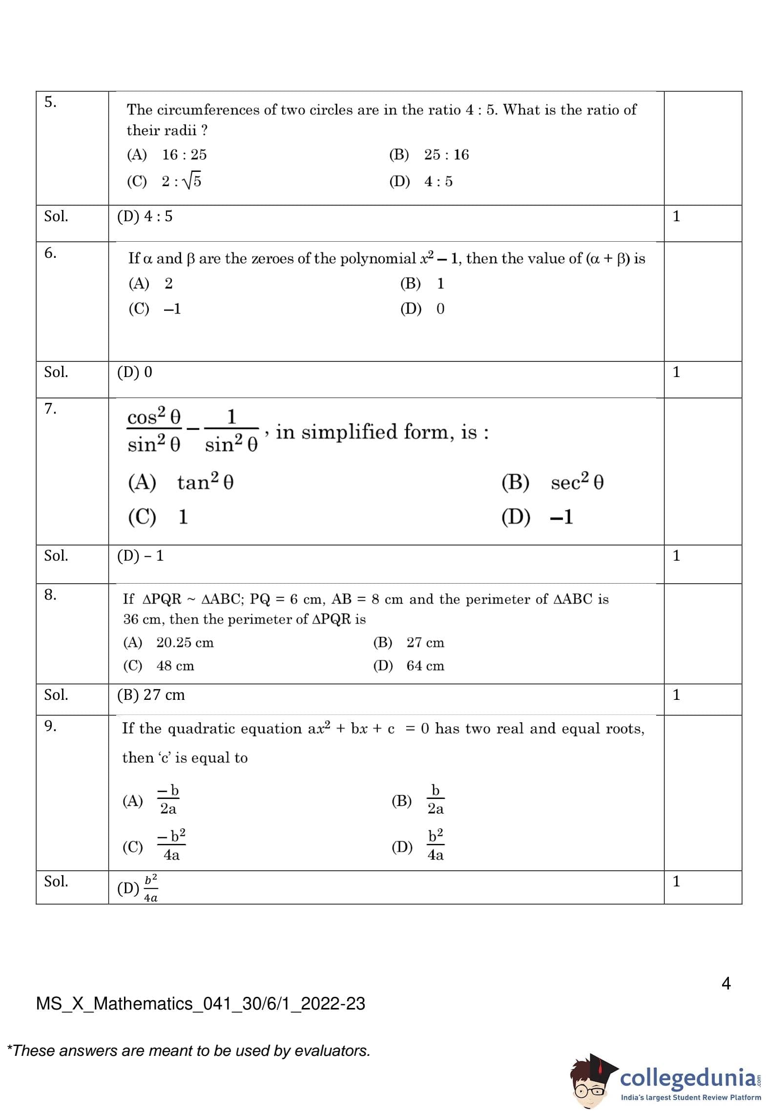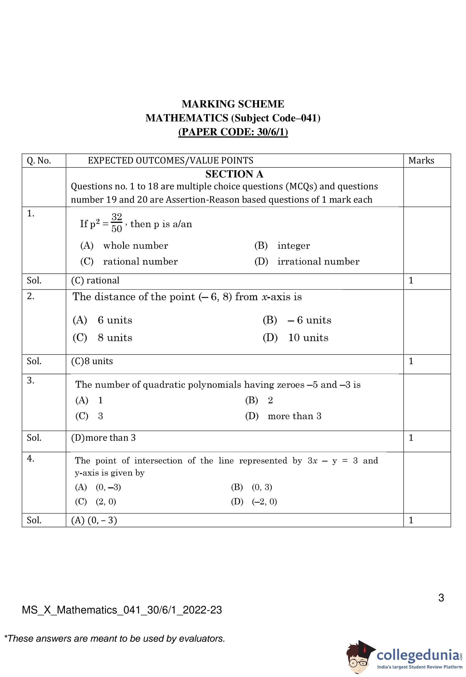 | CBSE Class 10 Mathematics Question Paper 2023 PDF | CBSE Class 10 Mathematics Answer Key 2023 PDF | Detailed Solutions |