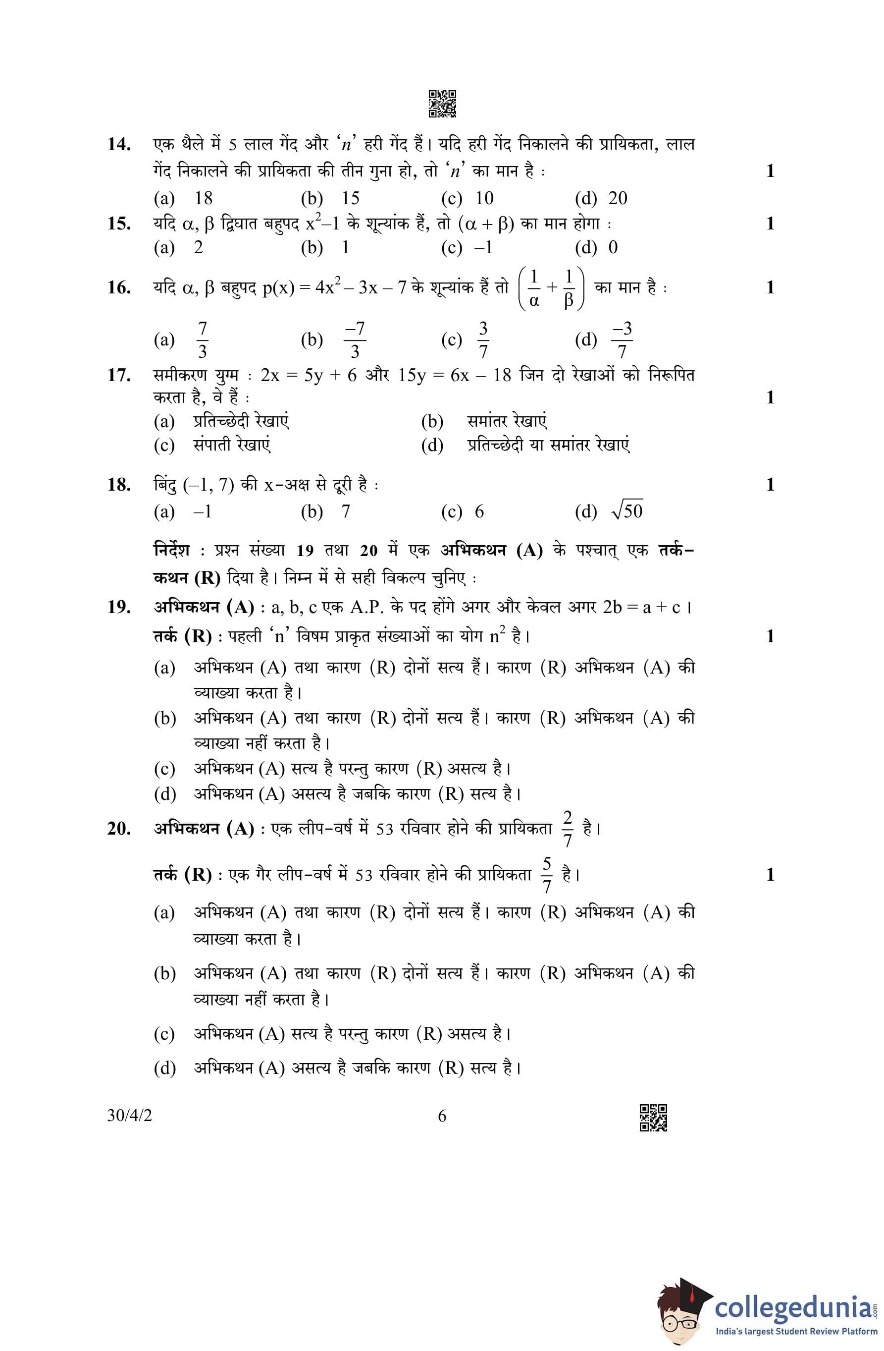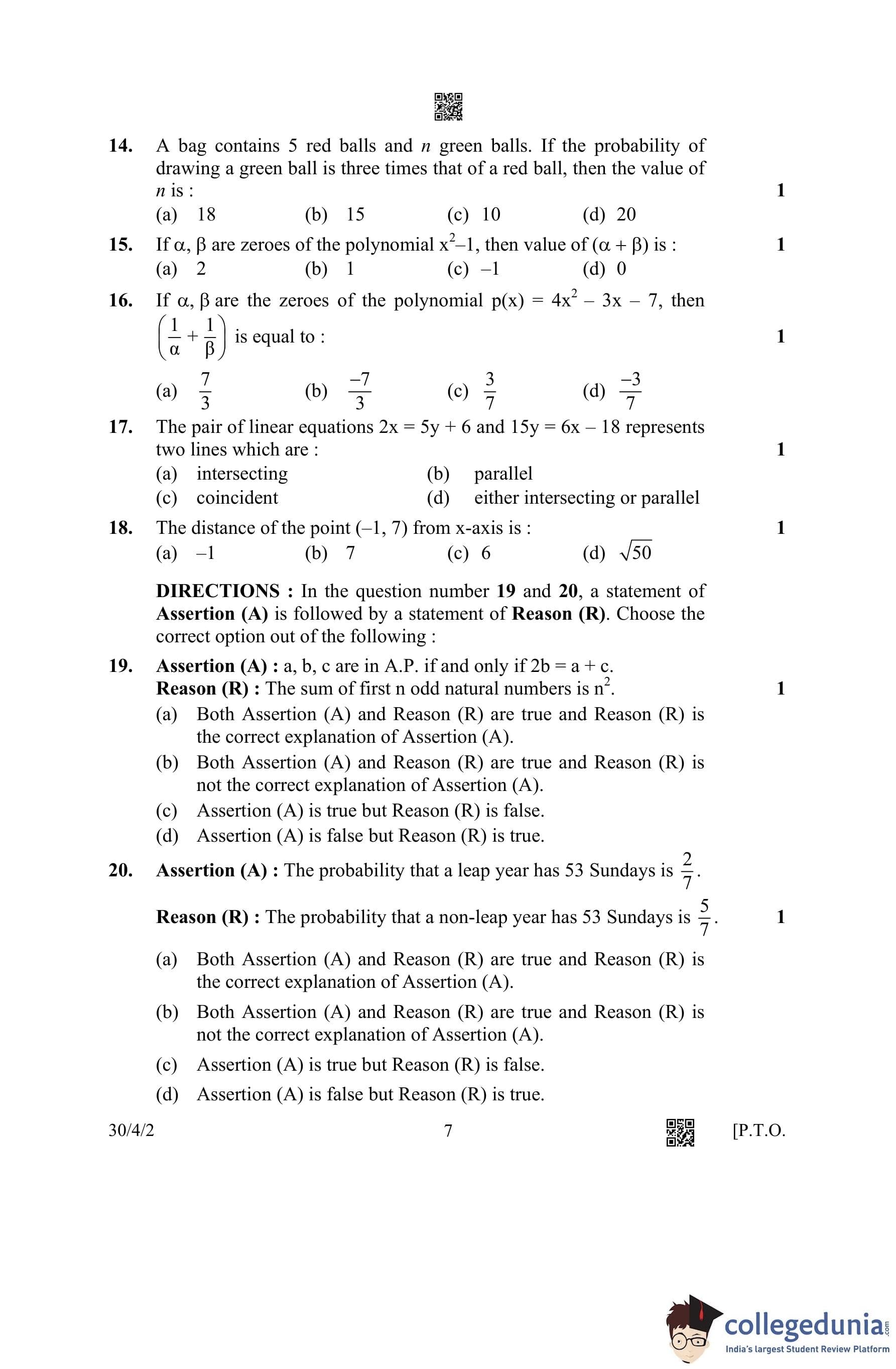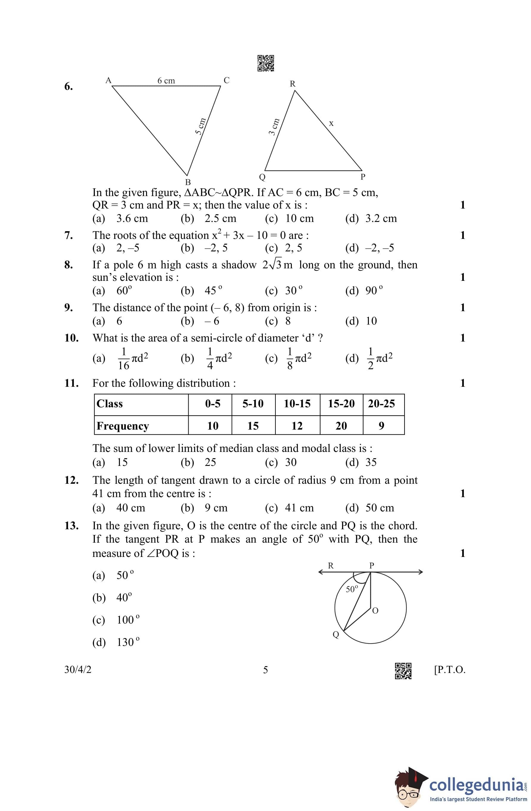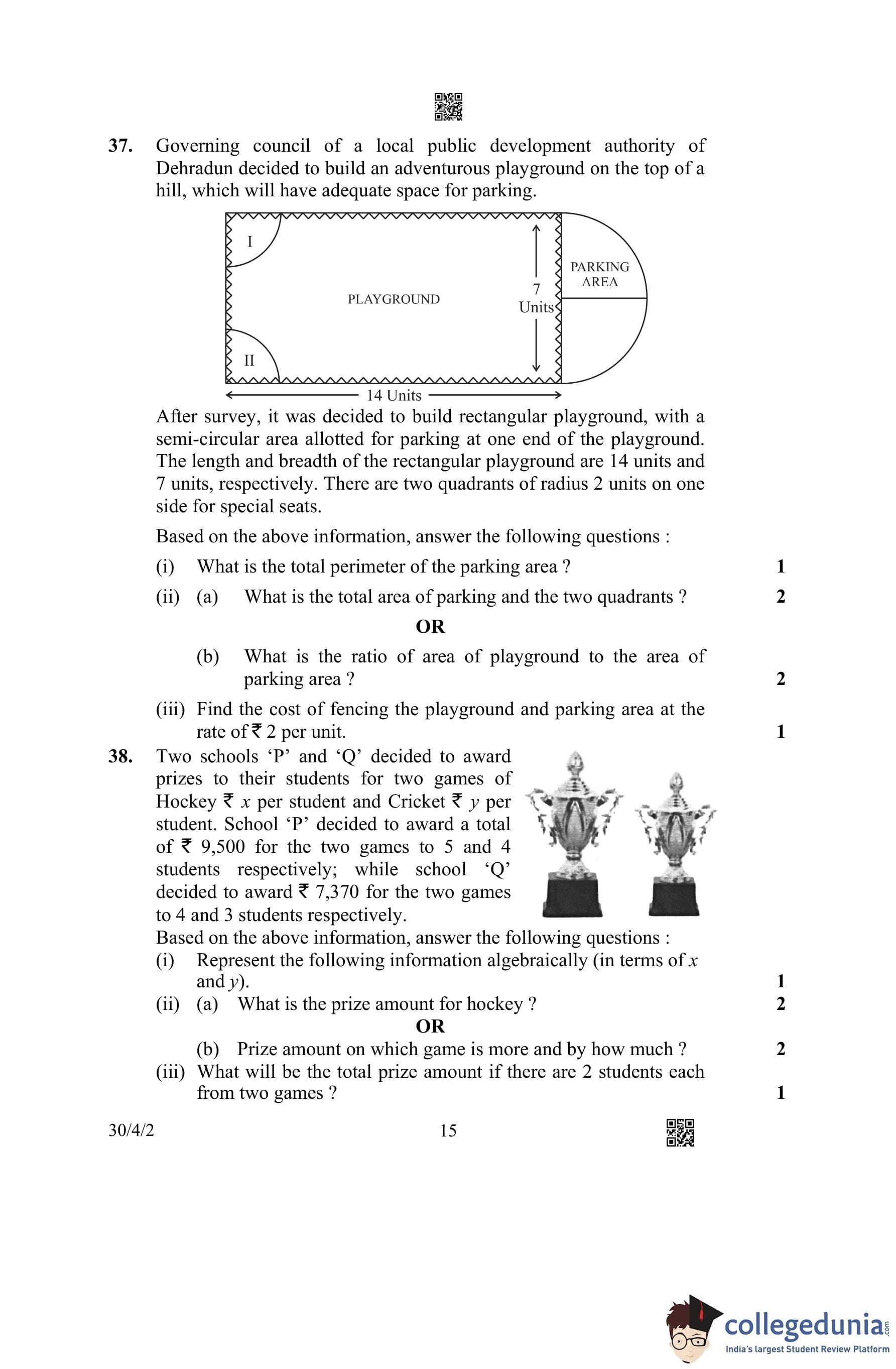 CBSE Class 10 Mathematics Standard Question Paper 2023 with Answer Key (Set 2- 30/4/2) is available for download here. The exam was conducted by the Central Board of Secondary Education on March 21, 2023 in the Morning Session 10:30 AM to 1:30 PM. The medium of paper was English & Hindi. According to initial student reaction, the CBSE Class 10 Mathematics Standard paper was rated as Moderate in difficulty level. The question paper comprised a total of 38 questions divided among 5 sections.