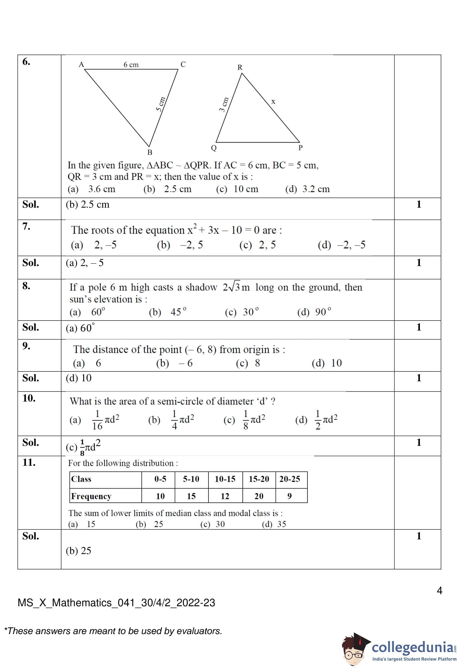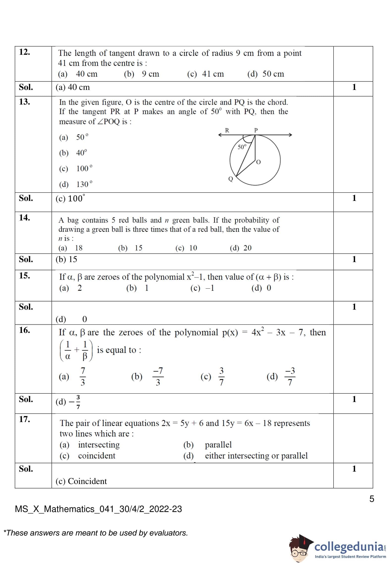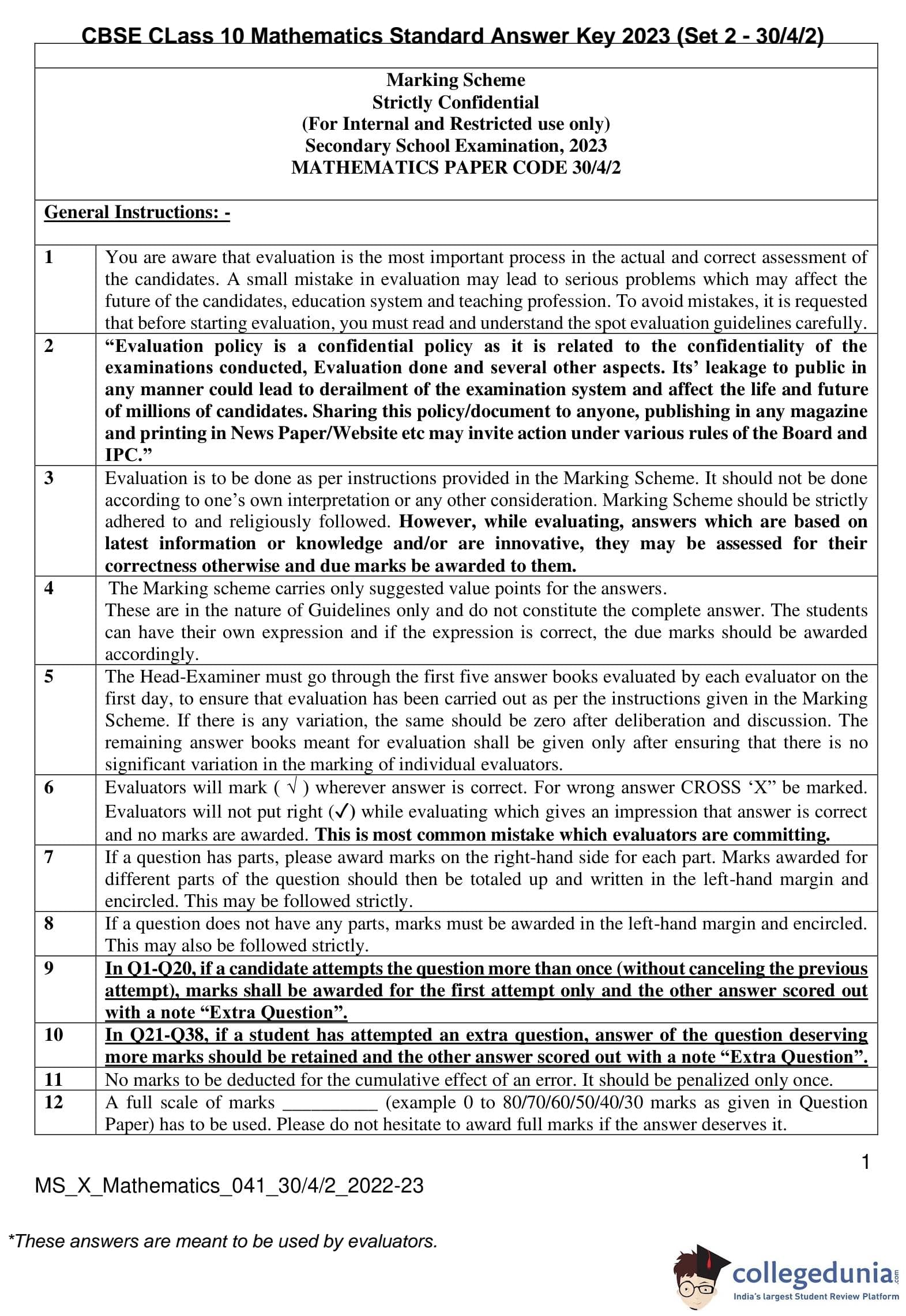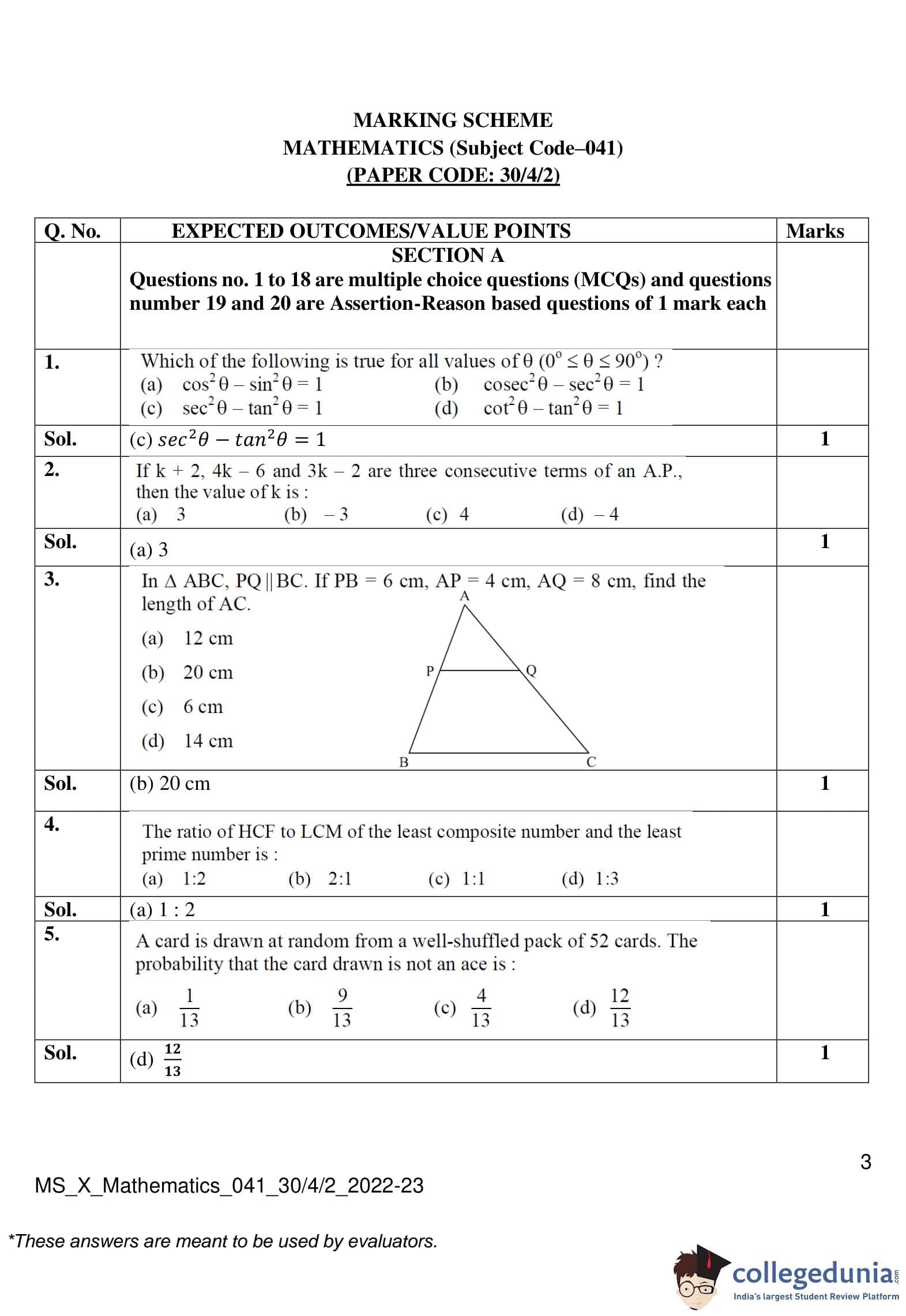 | CBSE Class 10 Mathematics Question Paper 2023 PDF | CBSE Class 10 Mathematics Answer Key 2023 PDF | Detailed Solutions |