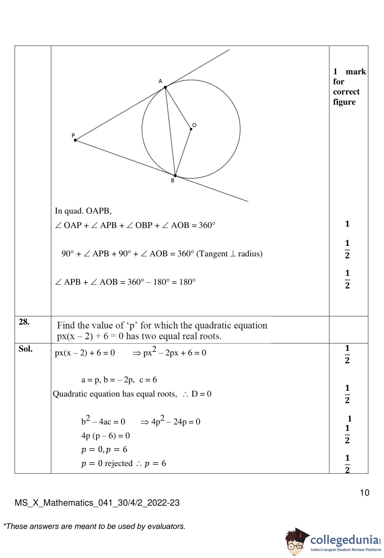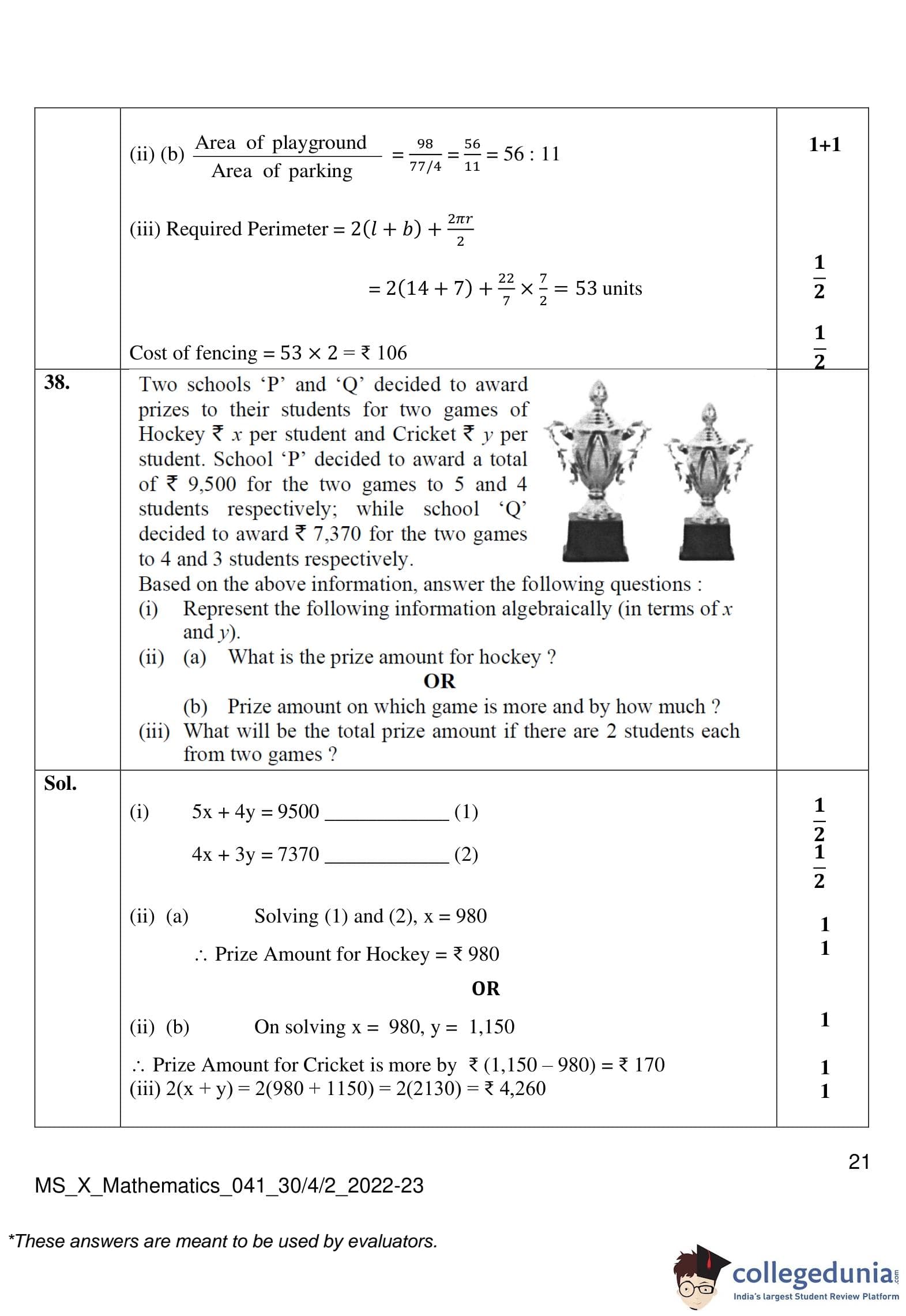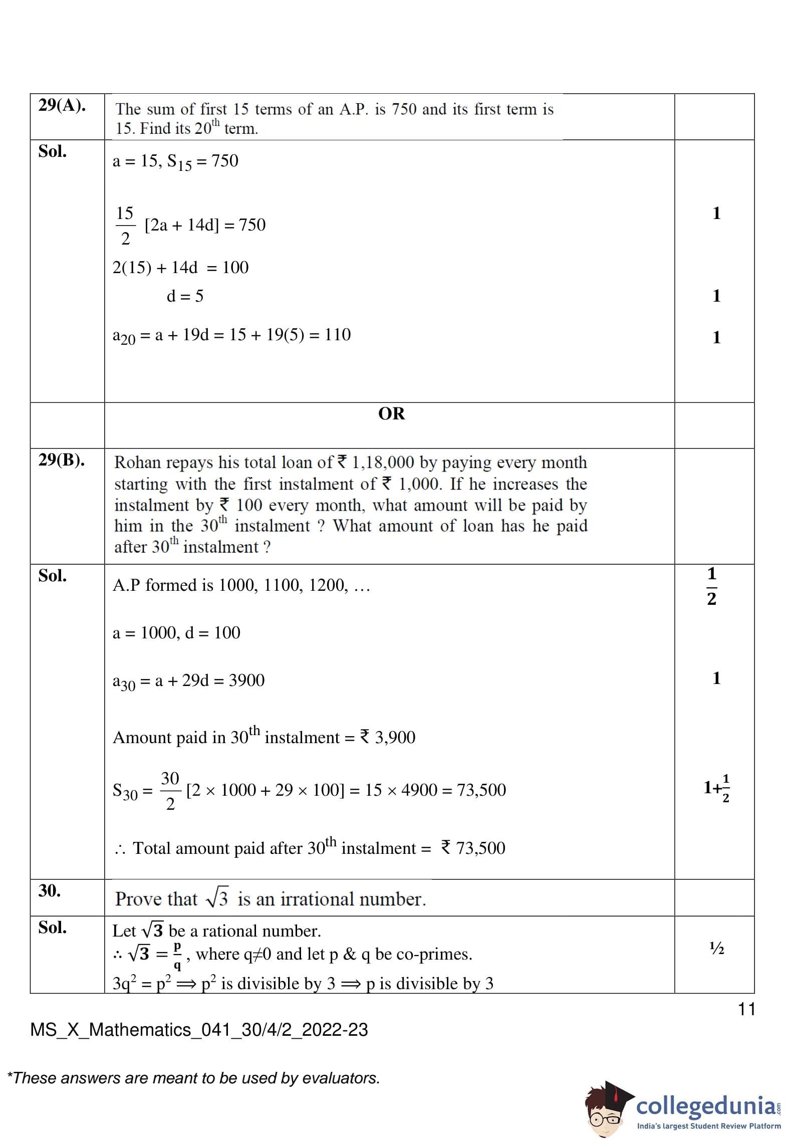 | CBSE Class 10 Mathematics Question Paper 2023 PDF | CBSE Class 10 Mathematics Answer Key 2023 PDF | Detailed Solutions |