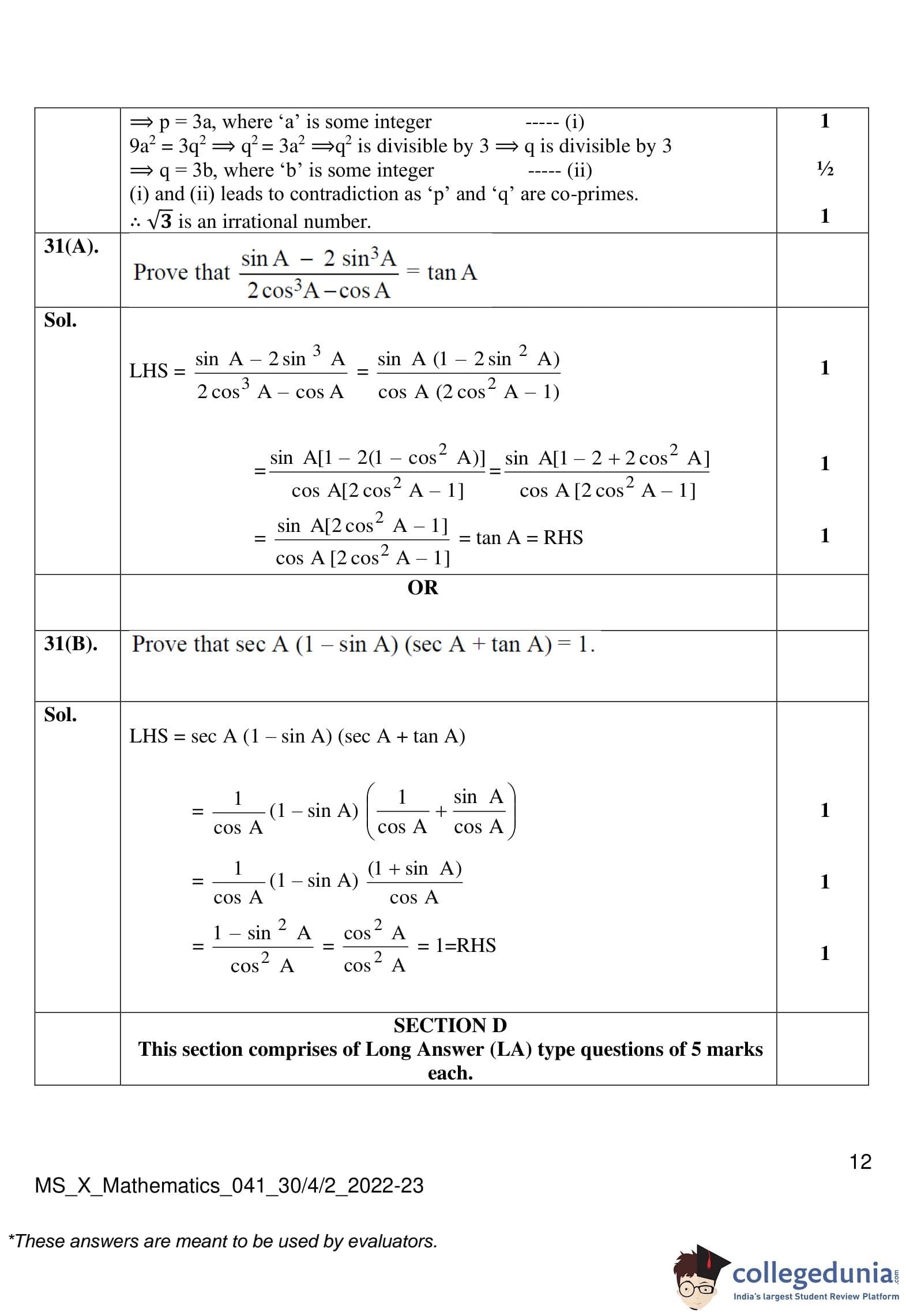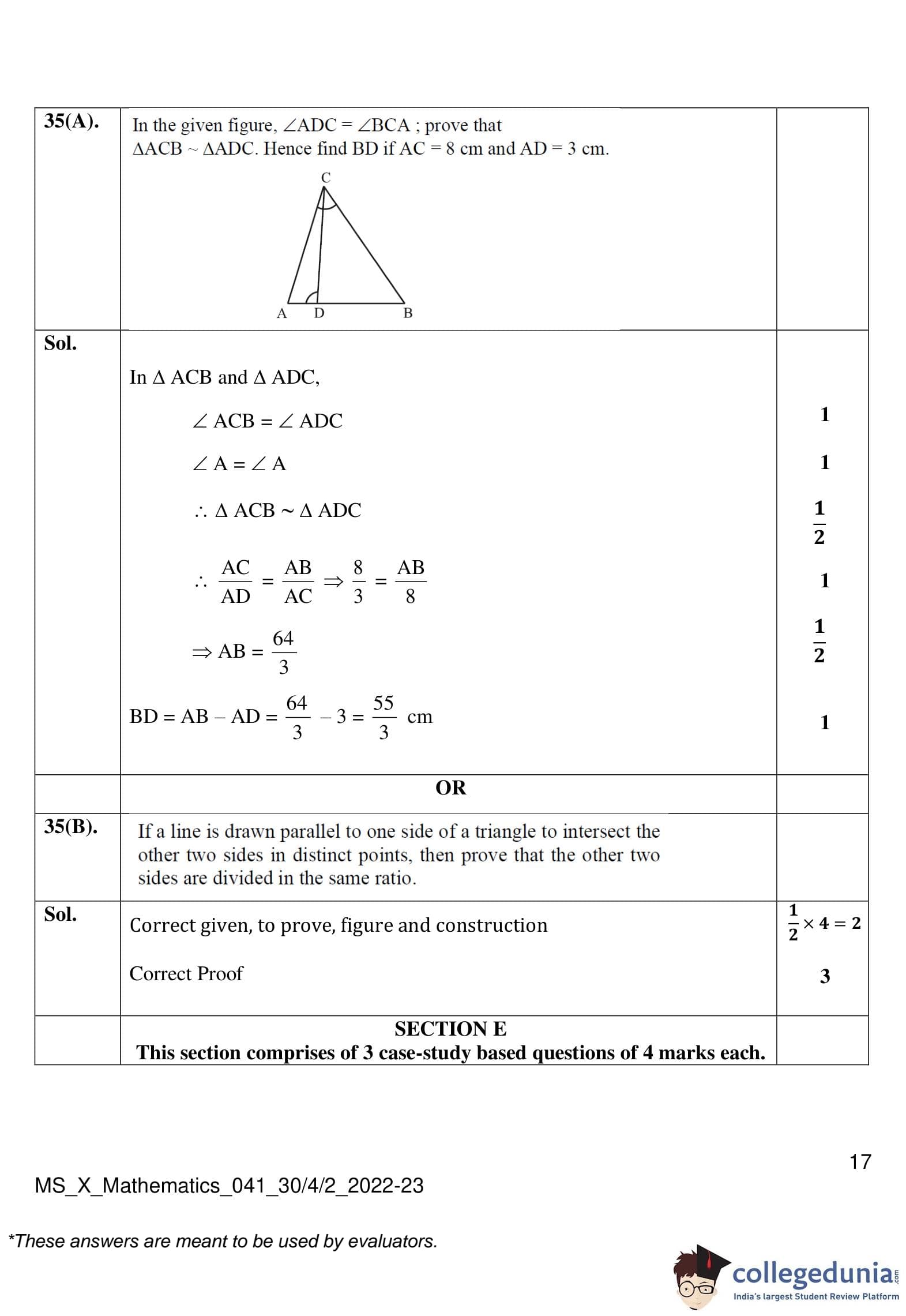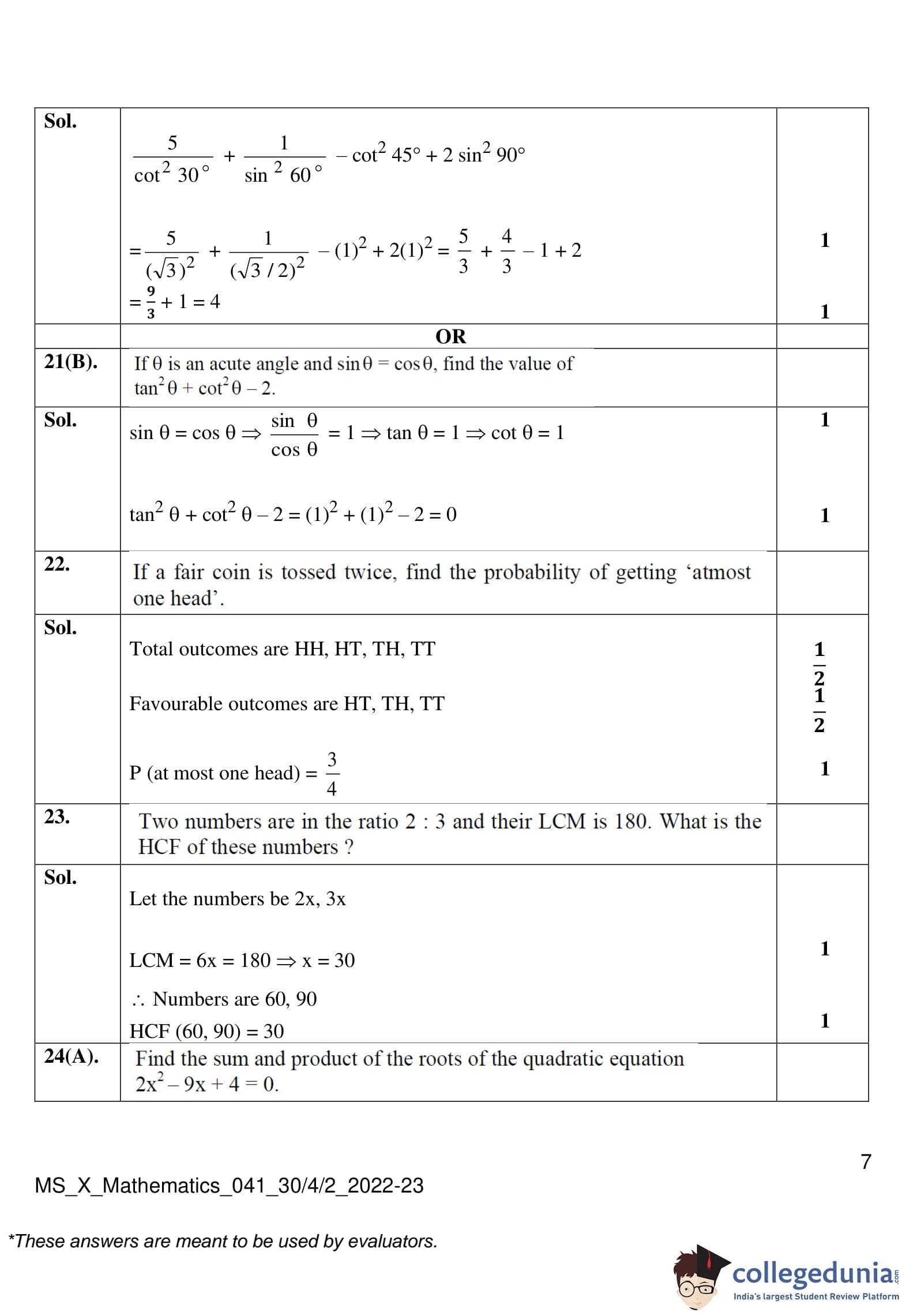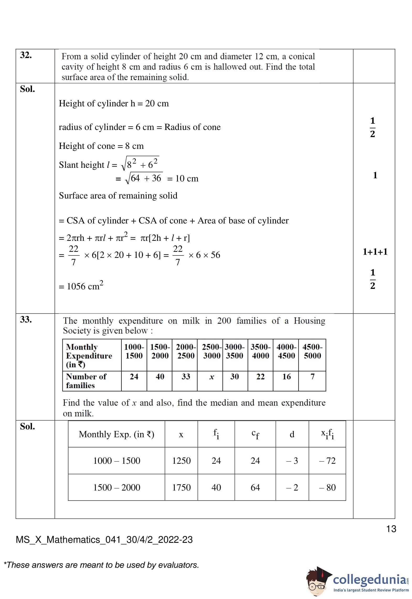 | CBSE Class 10 Mathematics Question Paper 2023 PDF | CBSE Class 10 Mathematics Answer Key 2023 PDF | Detailed Solutions |
