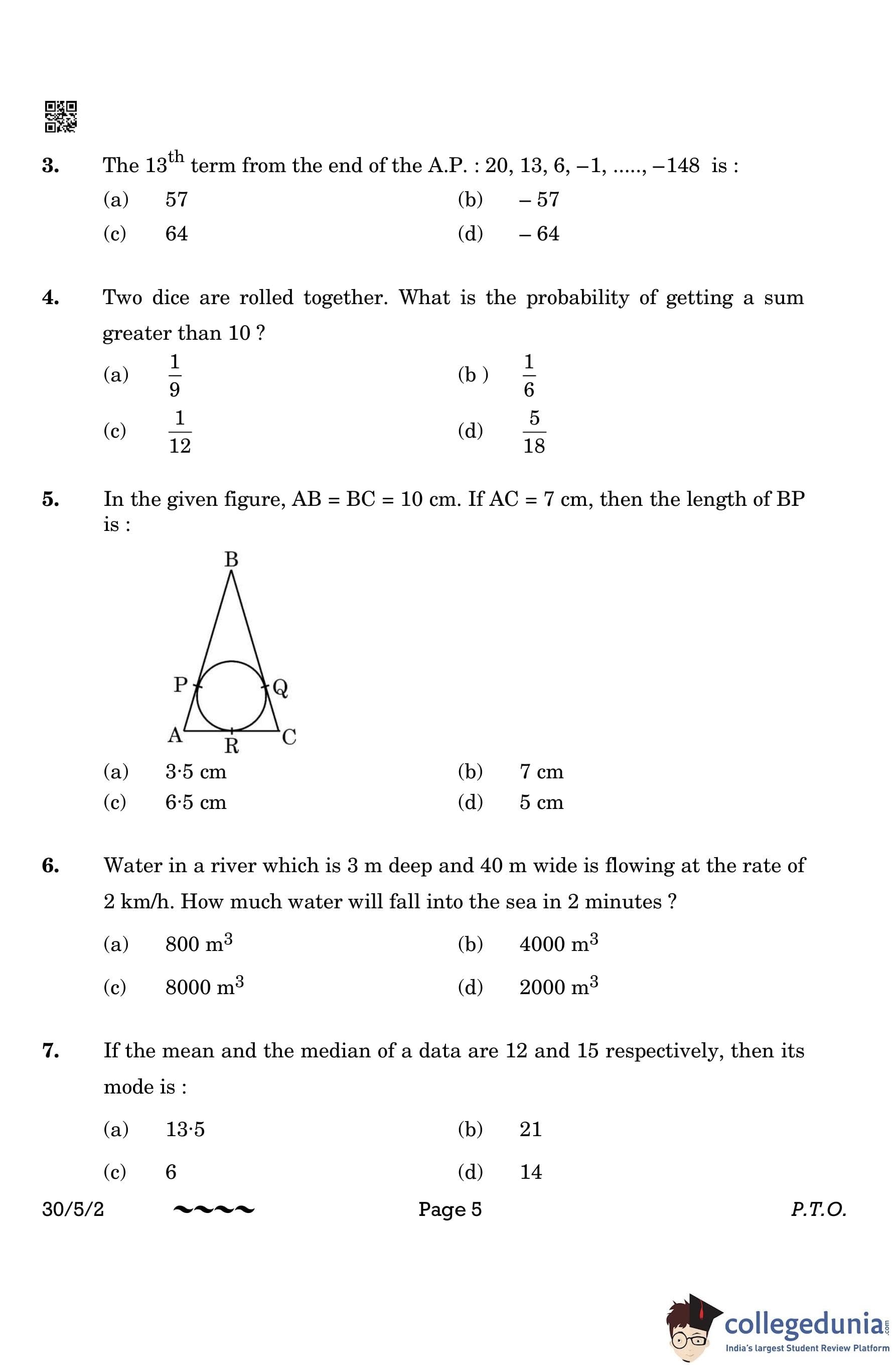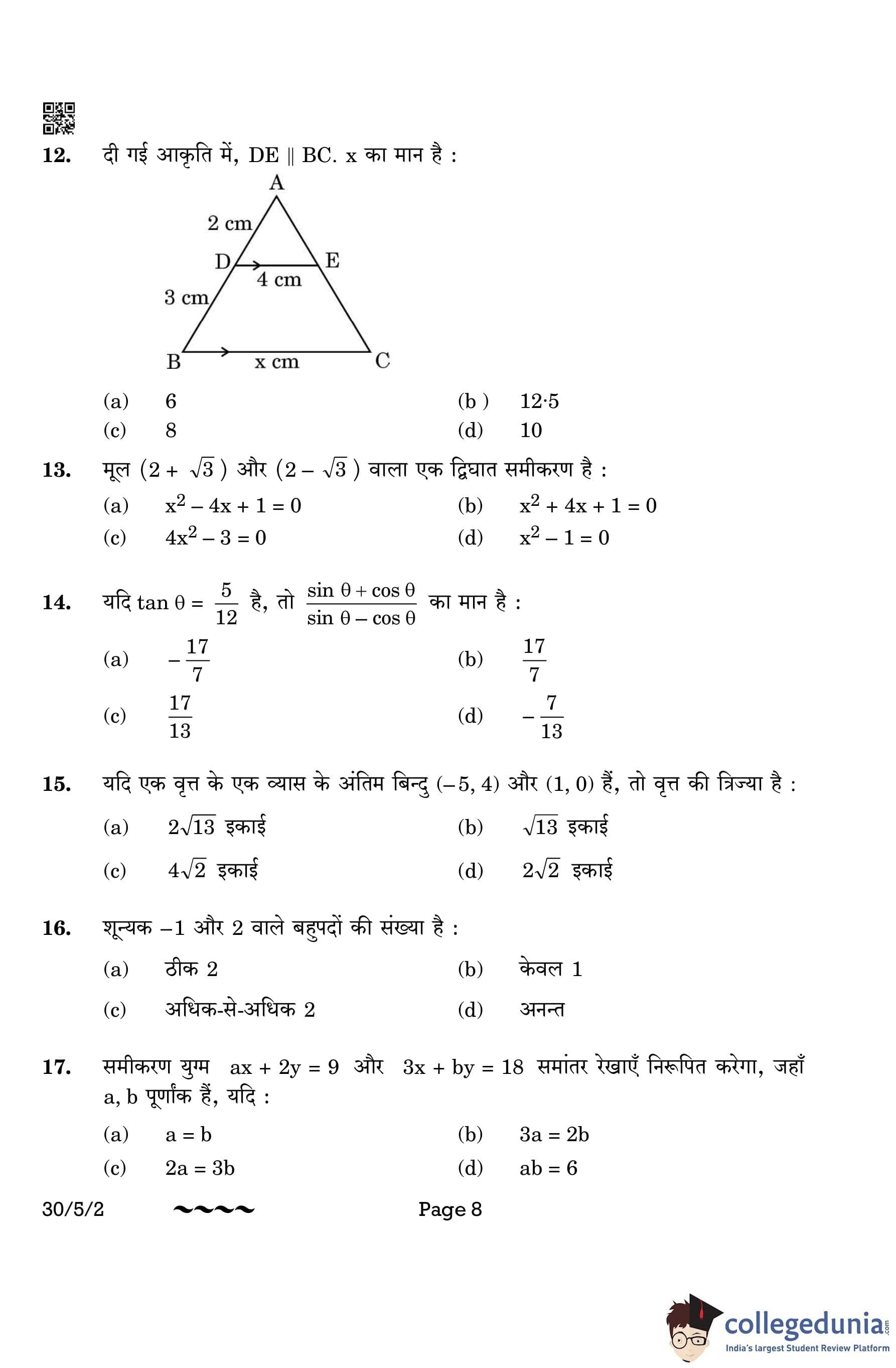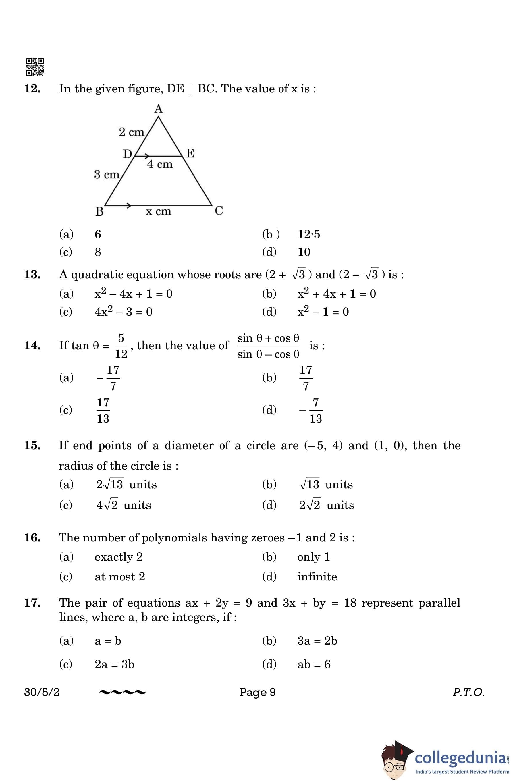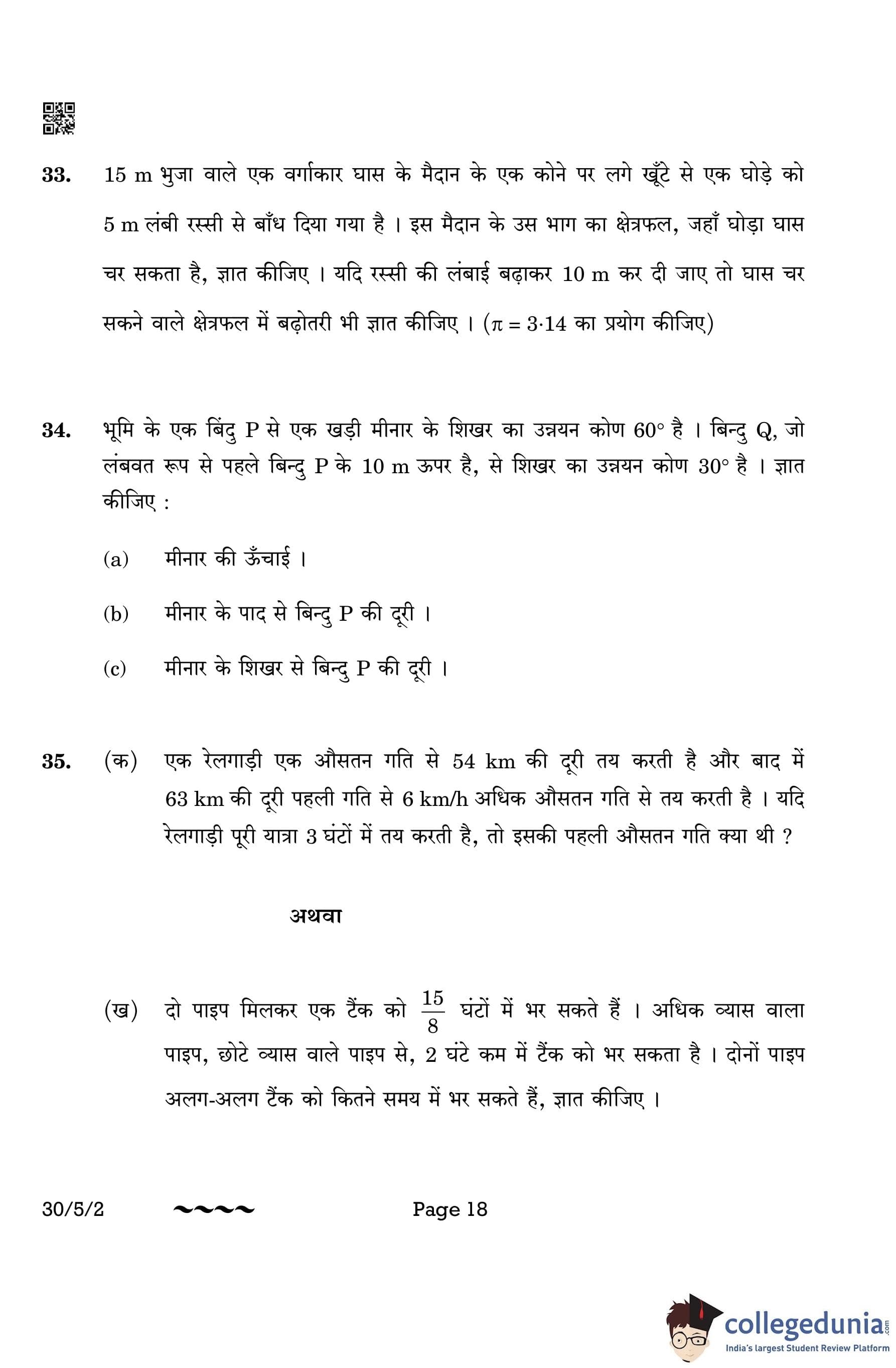 CBSE Class 10 Mathematics Standard Question Paper 2023 with Answer Key (Set 2- 30/5/2) is available for download here. The exam was conducted by the Central Board of Secondary Education on March 21, 2023 in the Morning Session 10:30 AM to 1:30 PM. The medium of paper was English & Hindi. According to initial student reaction, the CBSE Class 10 Mathematics Standard paper was rated as Moderate in difficulty level. The question paper comprised a total of 38 questions divided among 5 sections.
