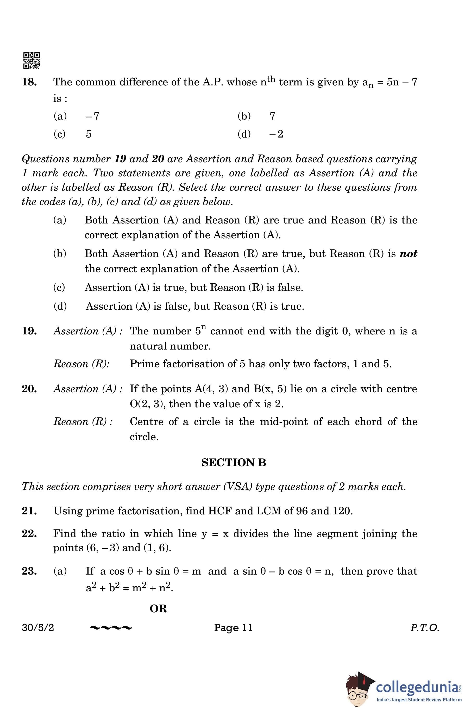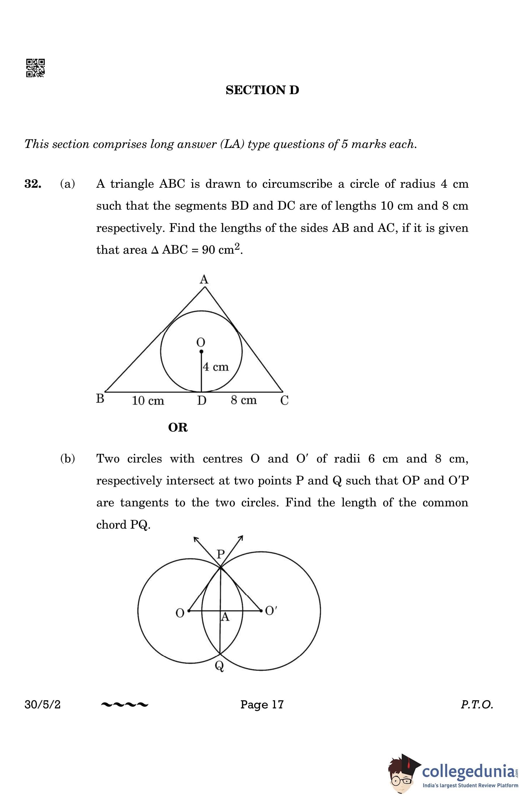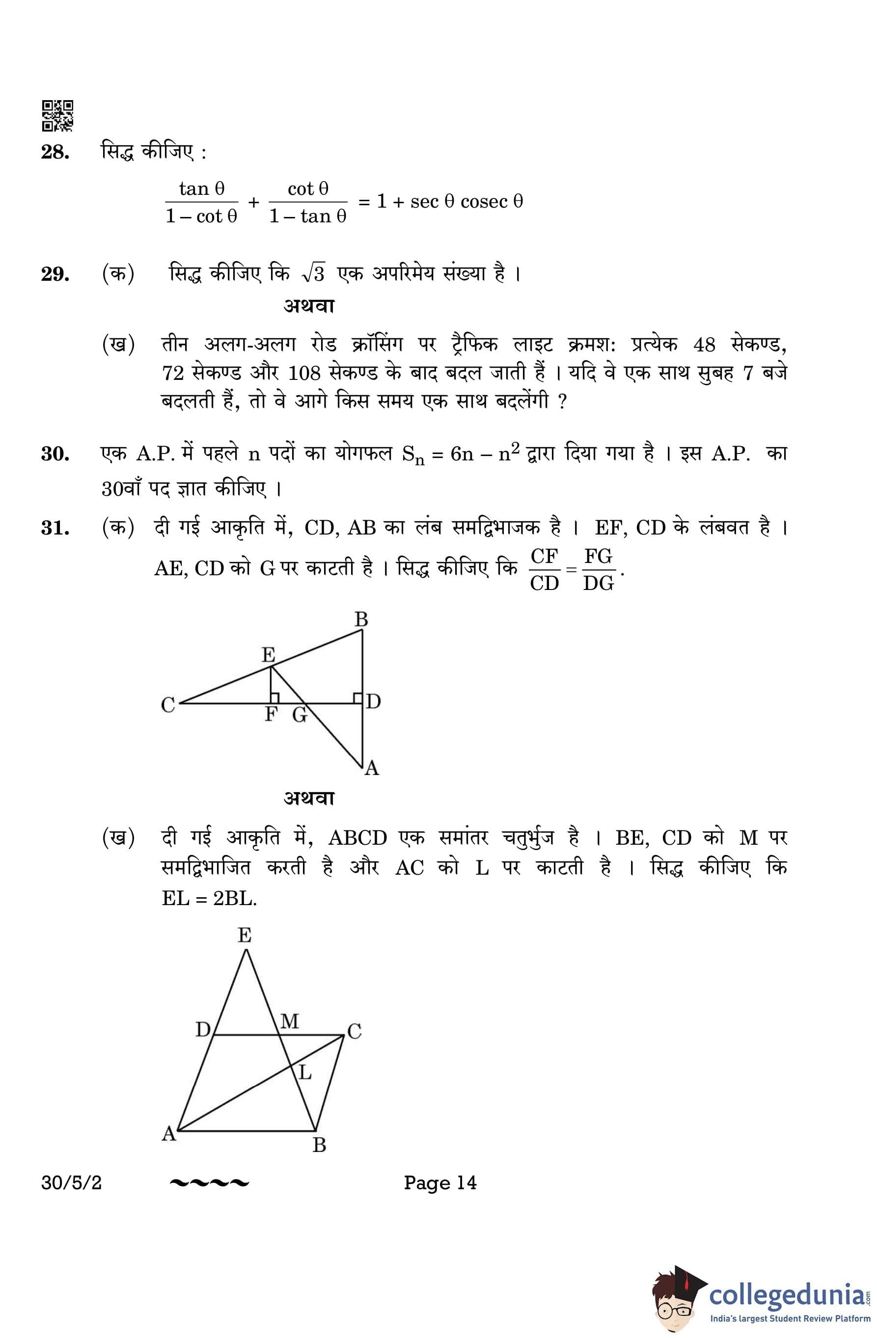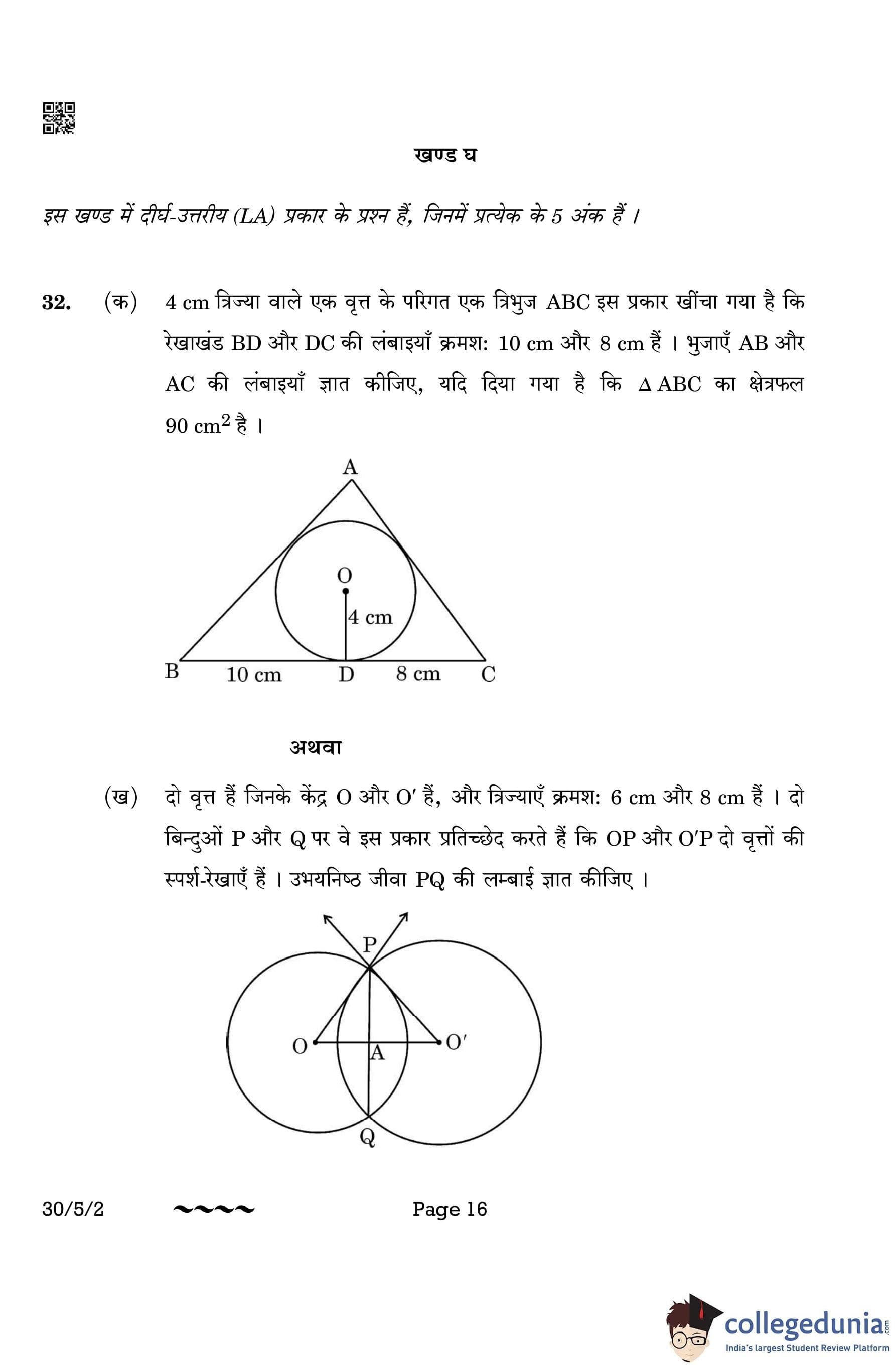 CBSE Class 10 Mathematics Standard (Set 2- 30/5/2) Question Paper 2023 with Answer Key