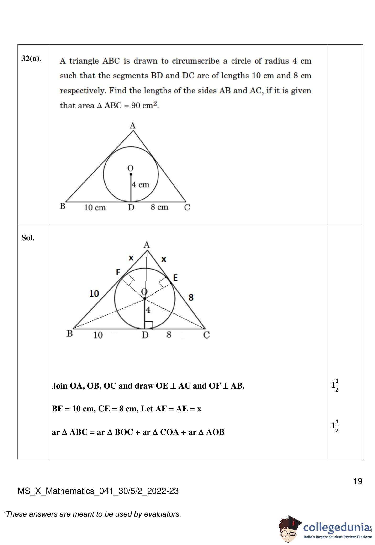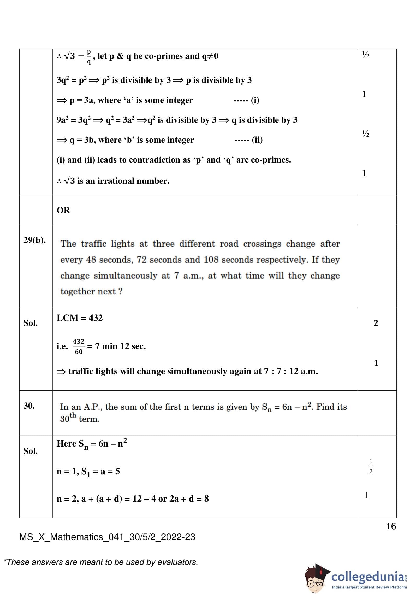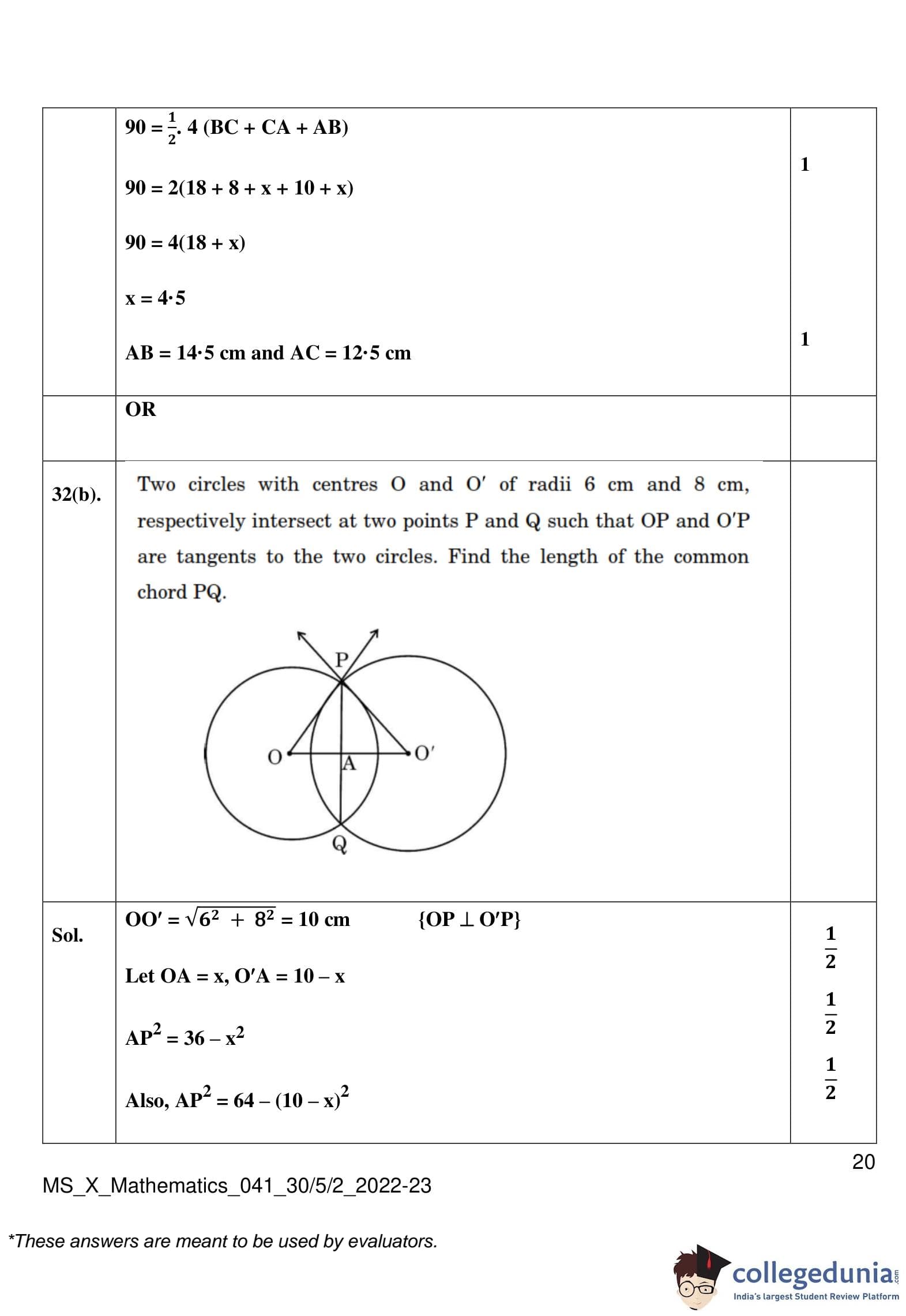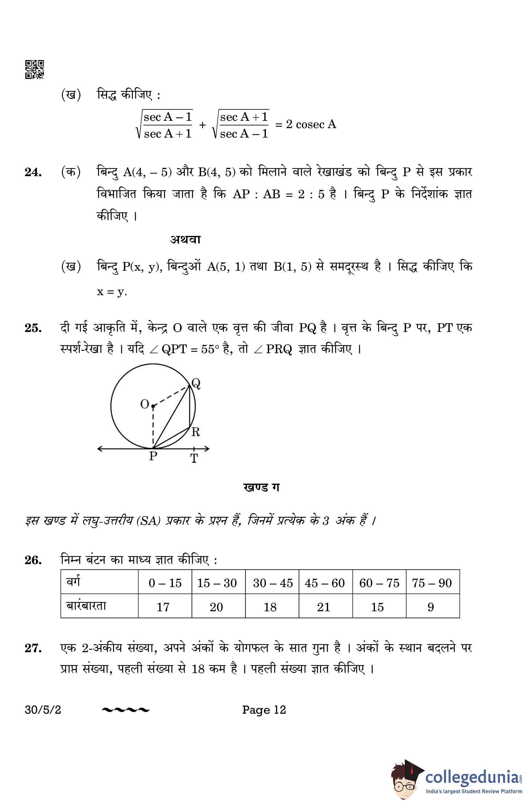 CBSE Class 10 Mathematics Standard (Set 2- 30/5/2) Question Paper 2023 with Answer Key