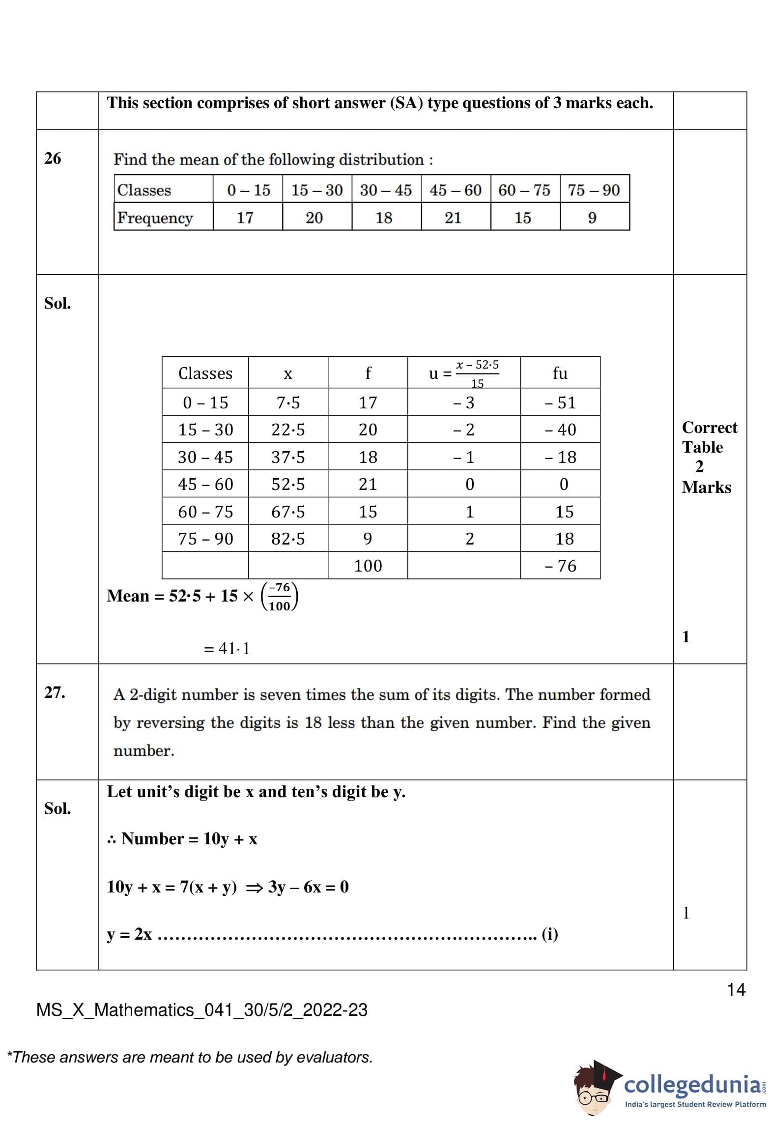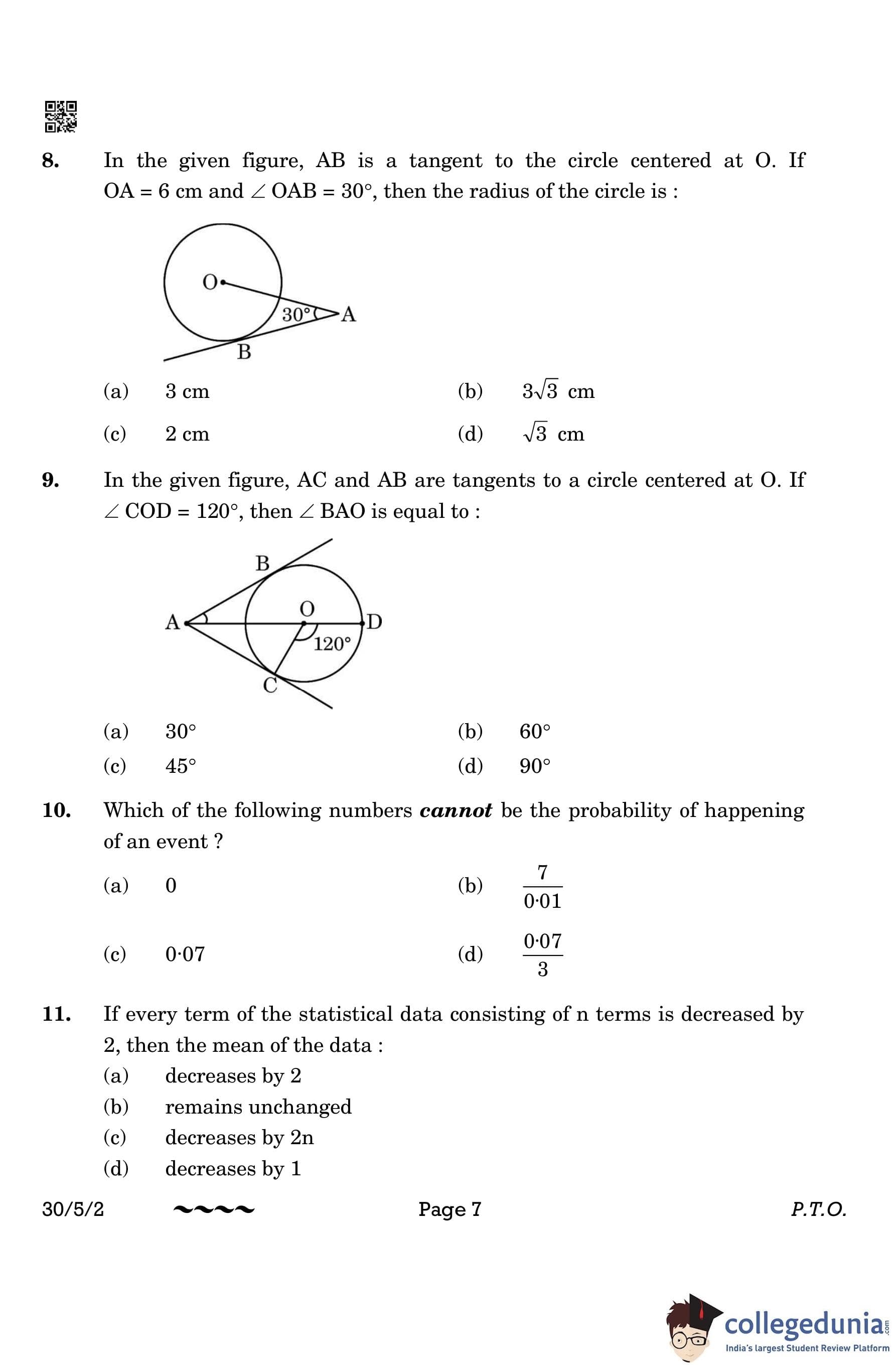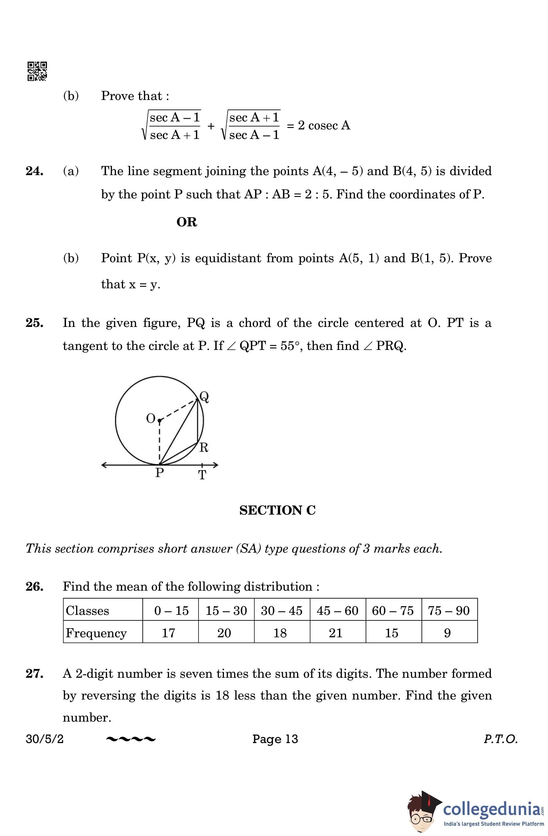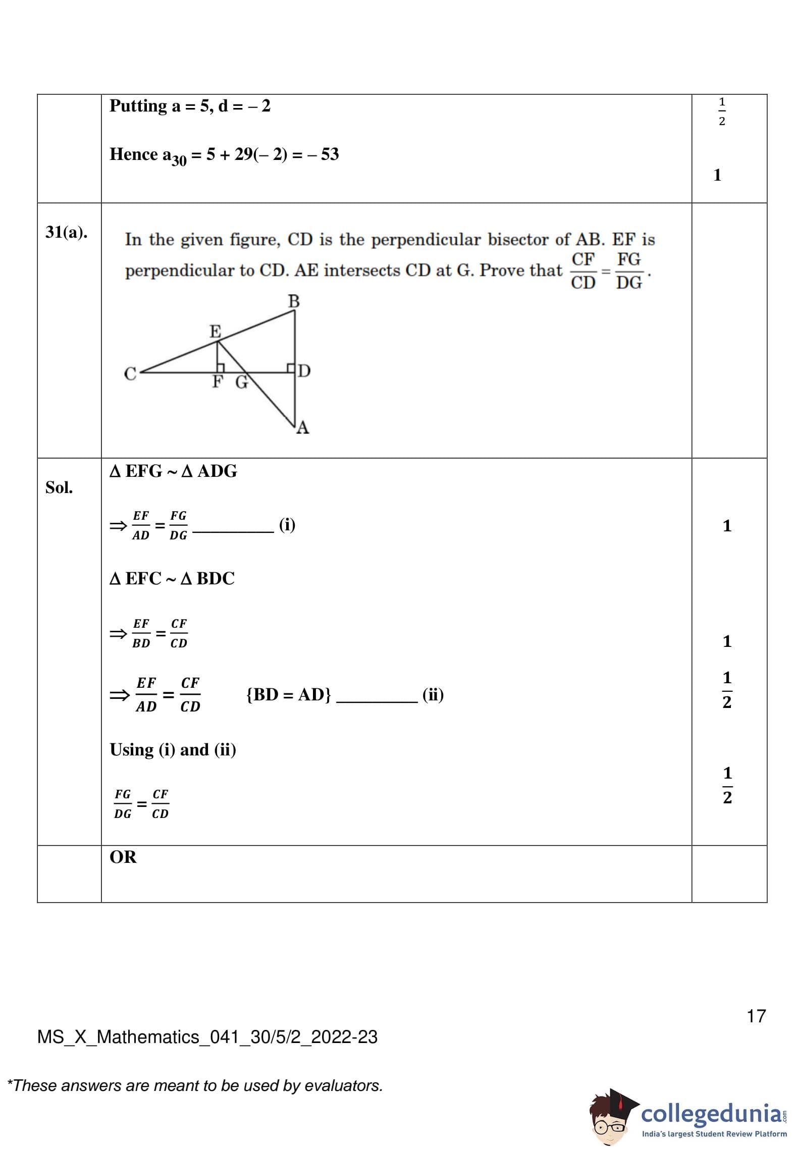 CBSE Class 10 Mathematics Standard (Set 2- 30/5/2) Question Paper 2023 with Answer Key