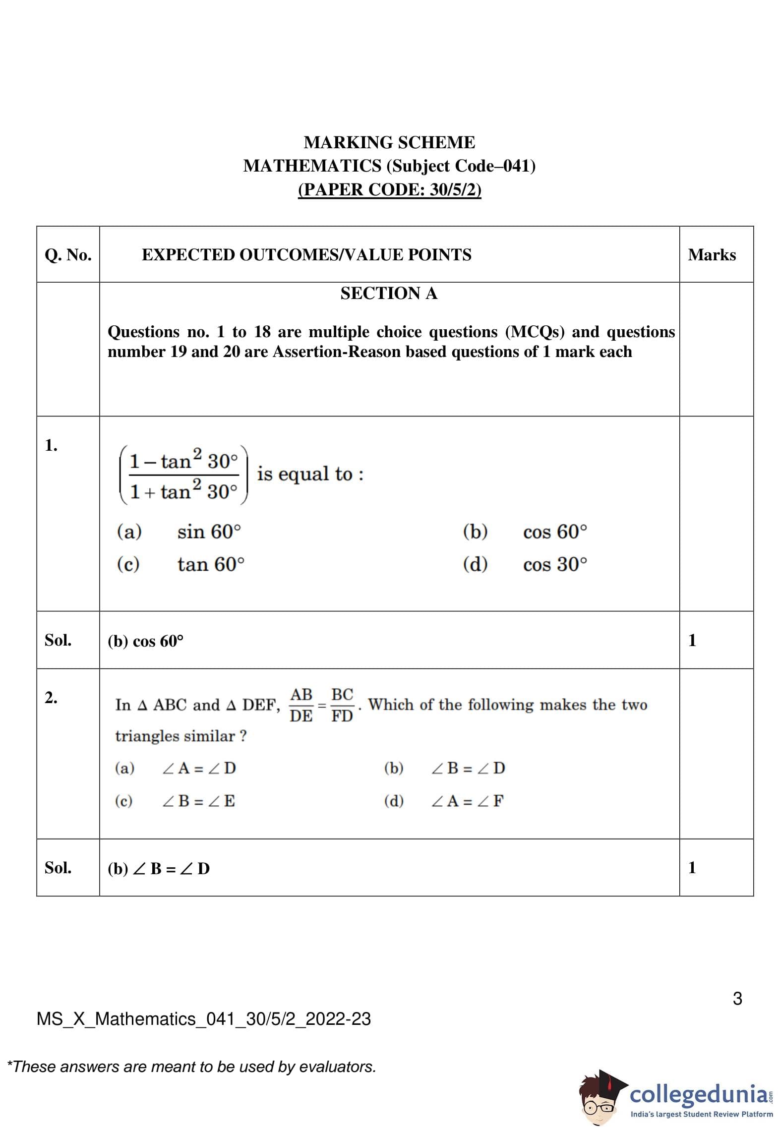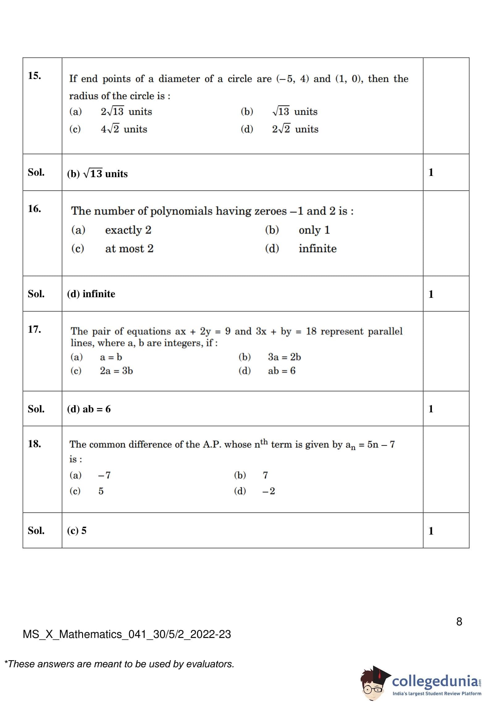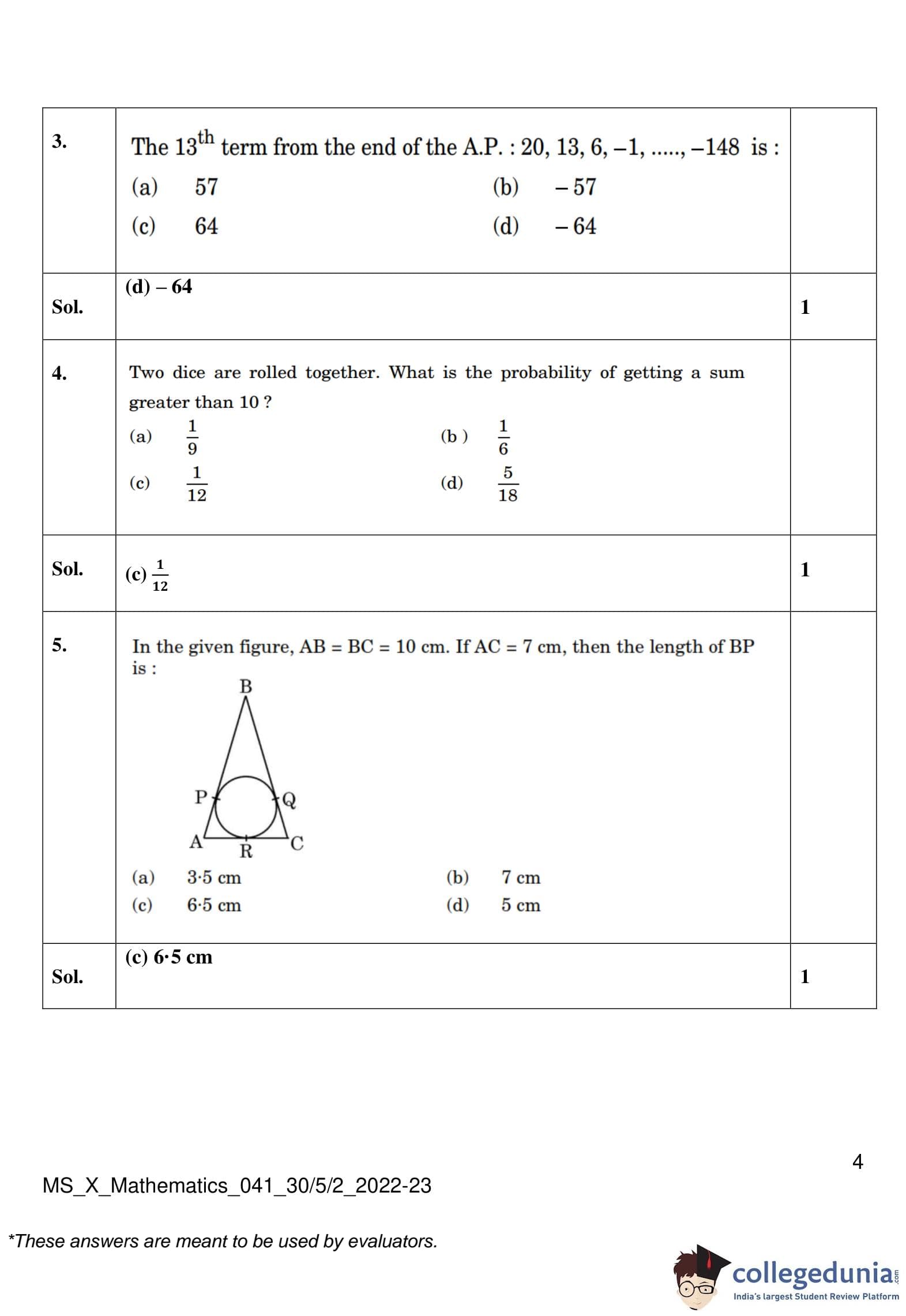 | CBSE Class 10 Mathematics Question Paper 2023 PDF | CBSE Class 10 Mathematics Answer Key 2023 PDF | Detailed Solutions |