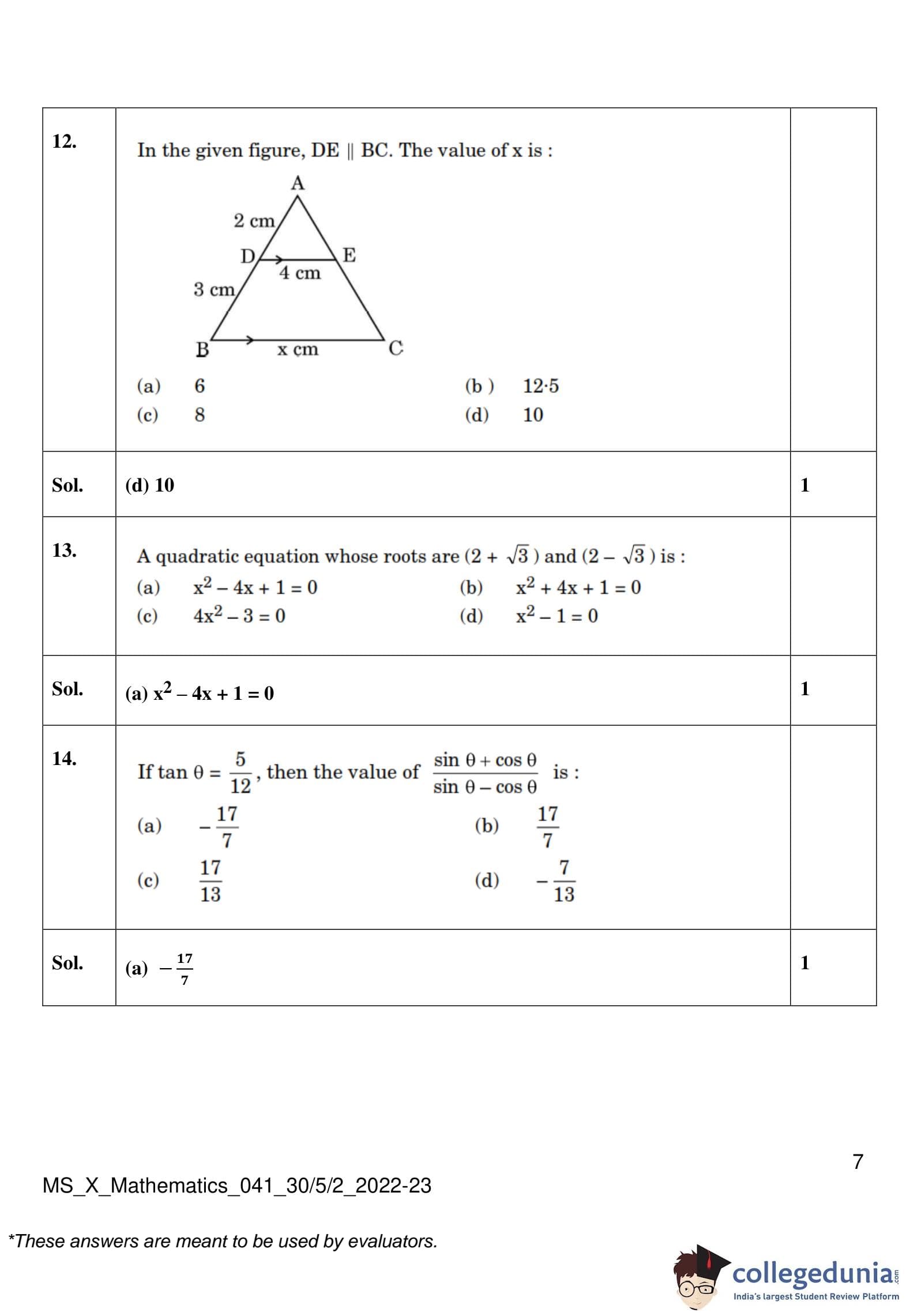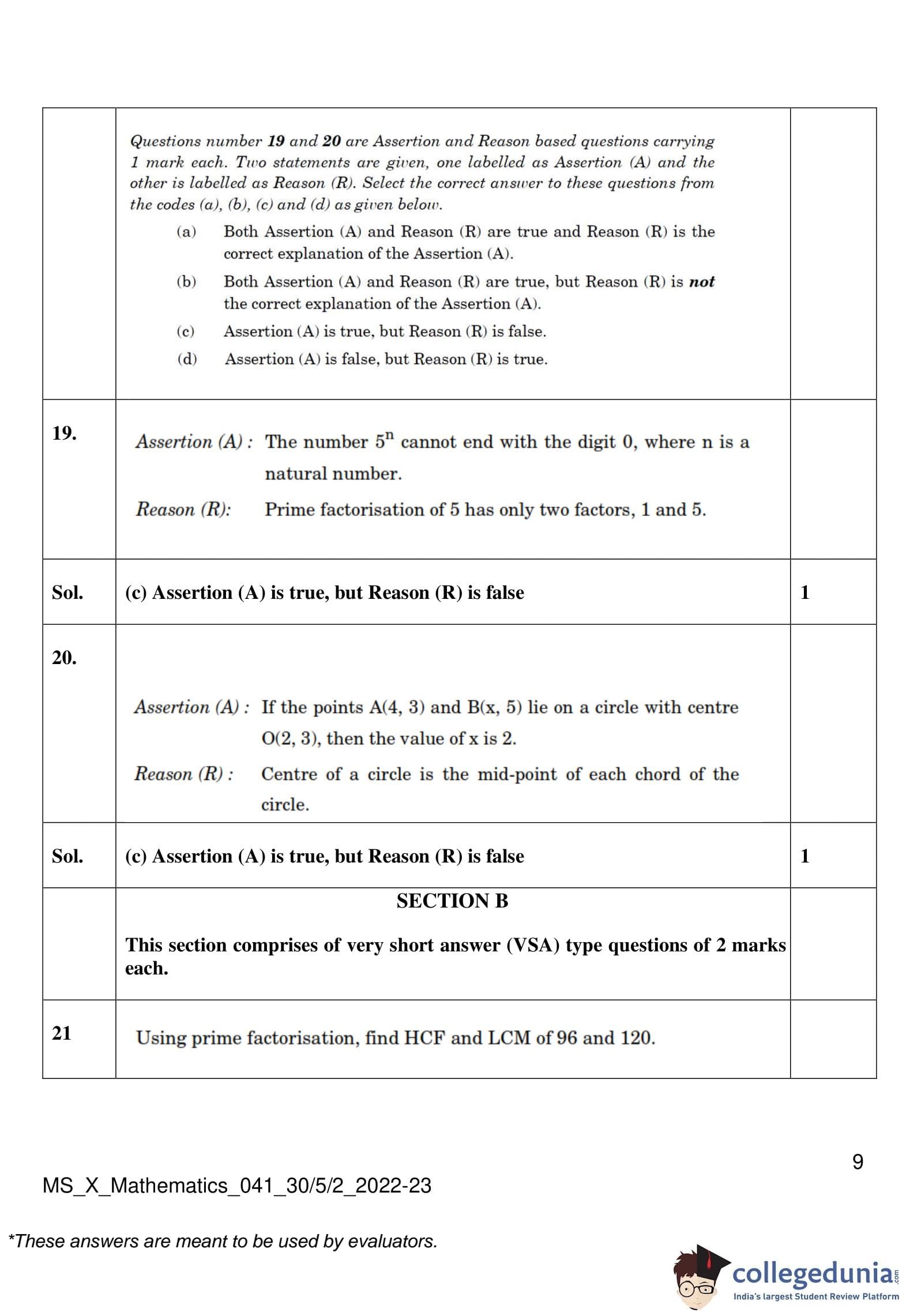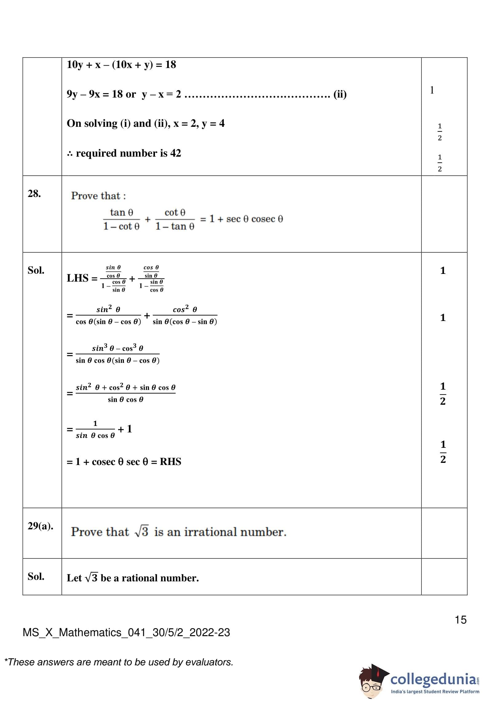 | CBSE Class 10 Mathematics Question Paper 2023 PDF | CBSE Class 10 Mathematics Answer Key 2023 PDF | Detailed Solutions |