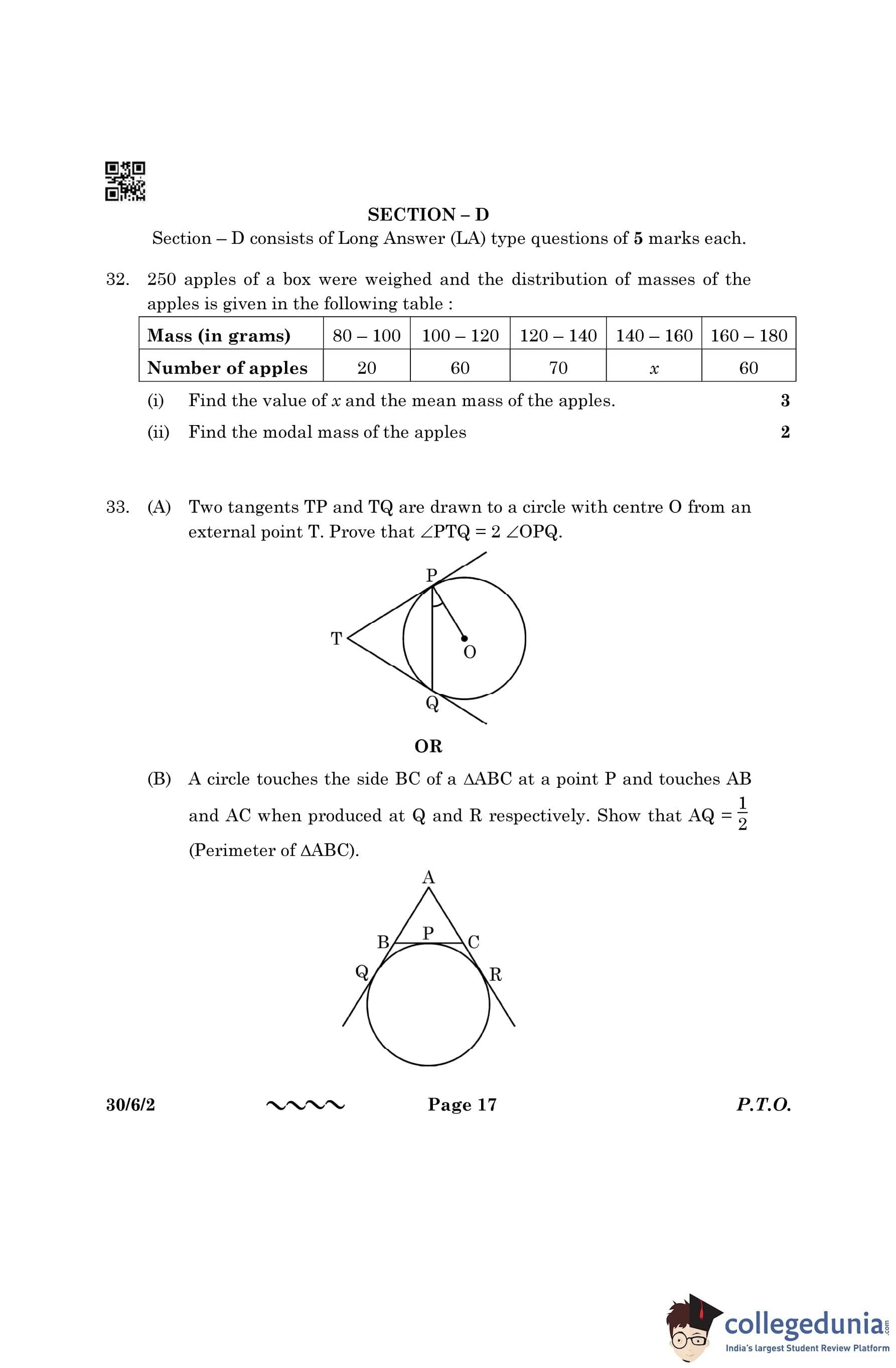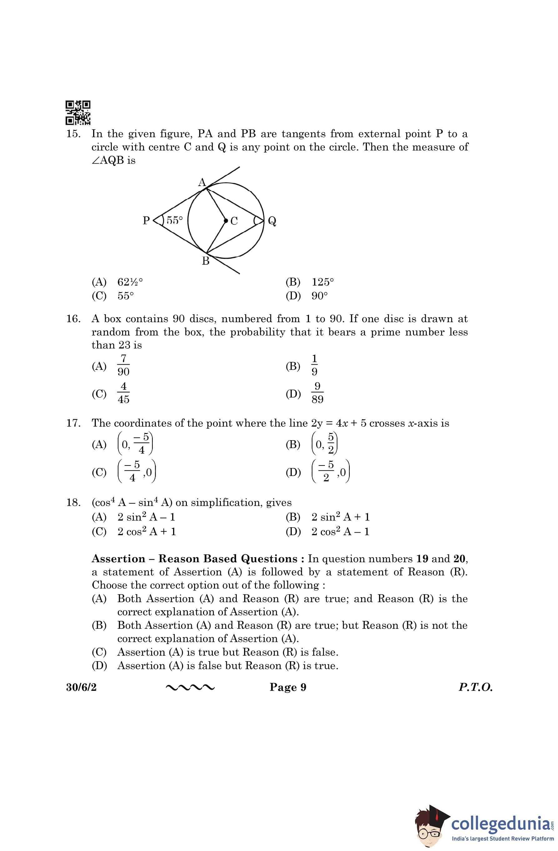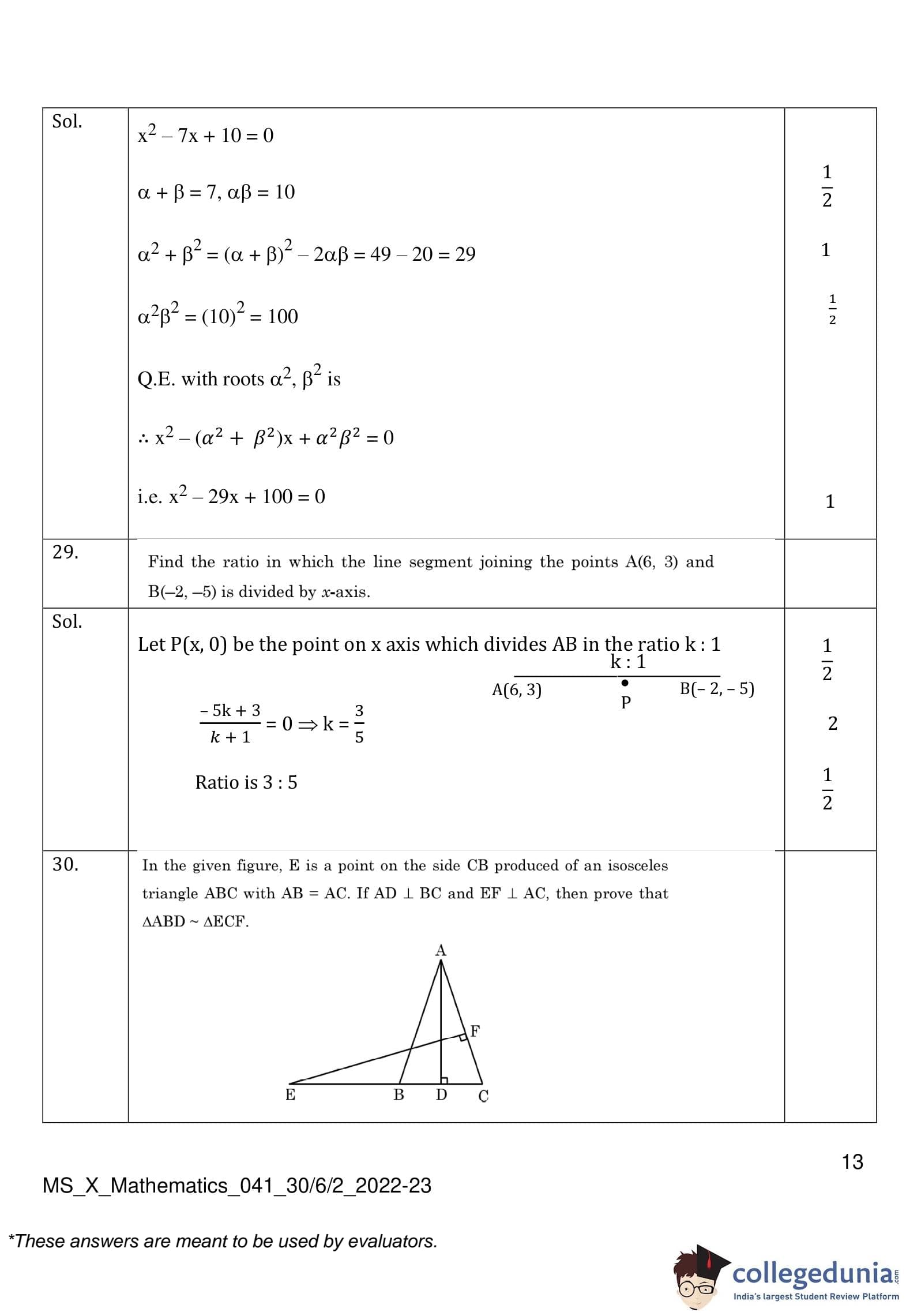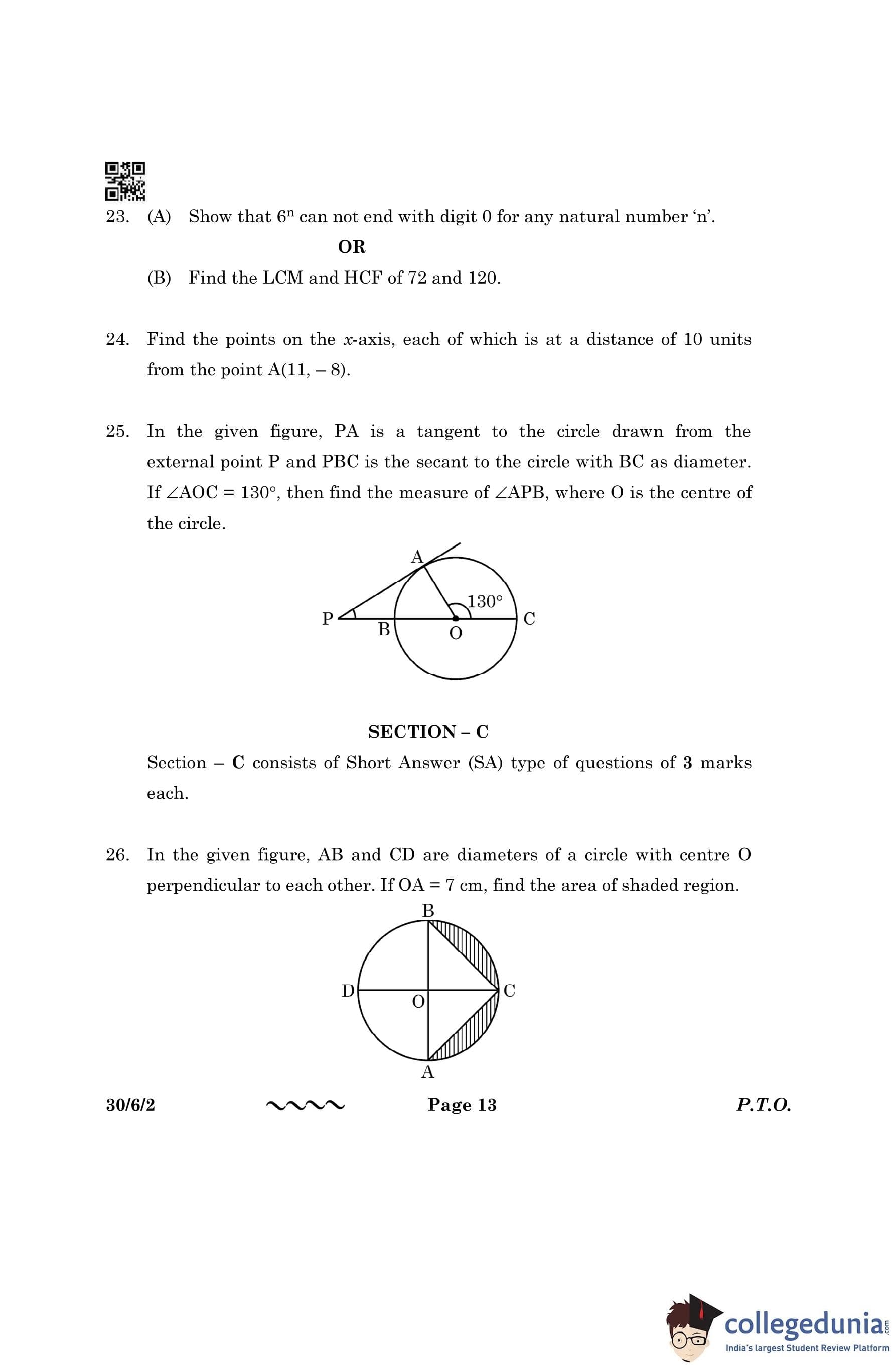 CBSE Class 10 Mathematics Standard (Set 2- 30/6/2) Question Paper 2023 with Answer Key