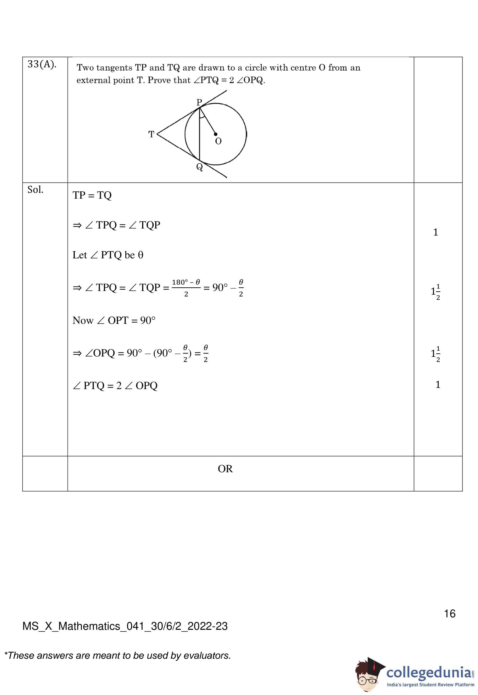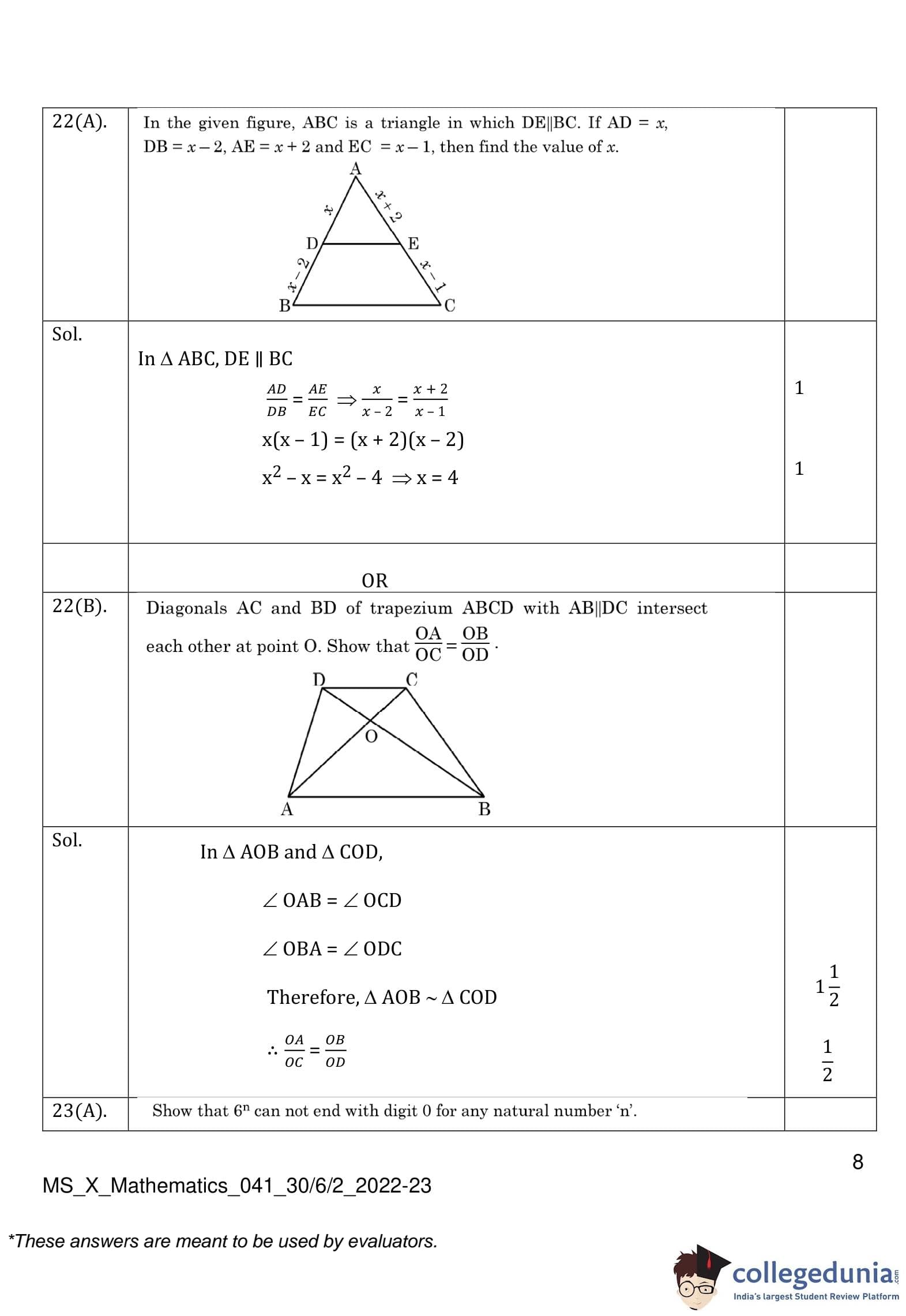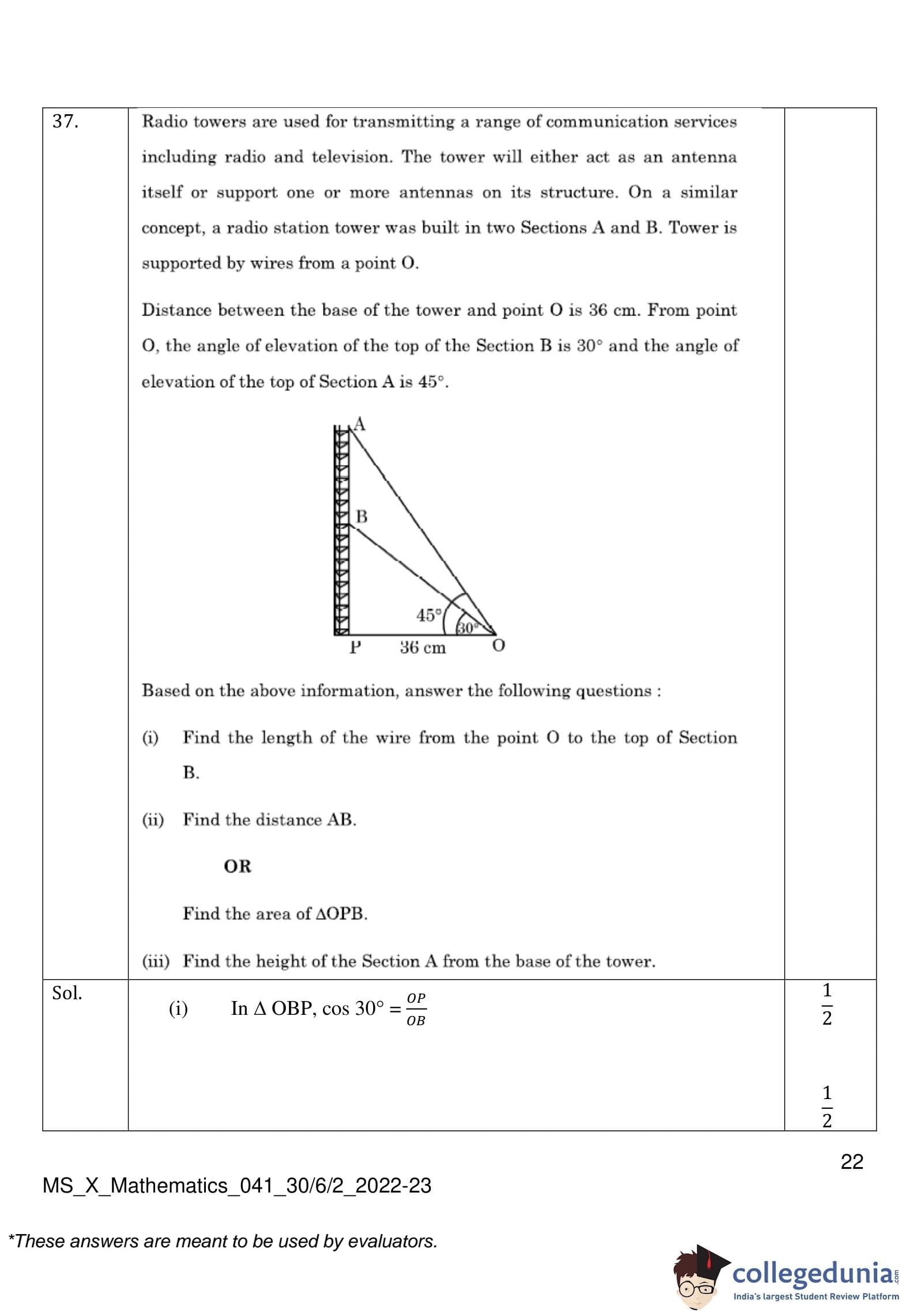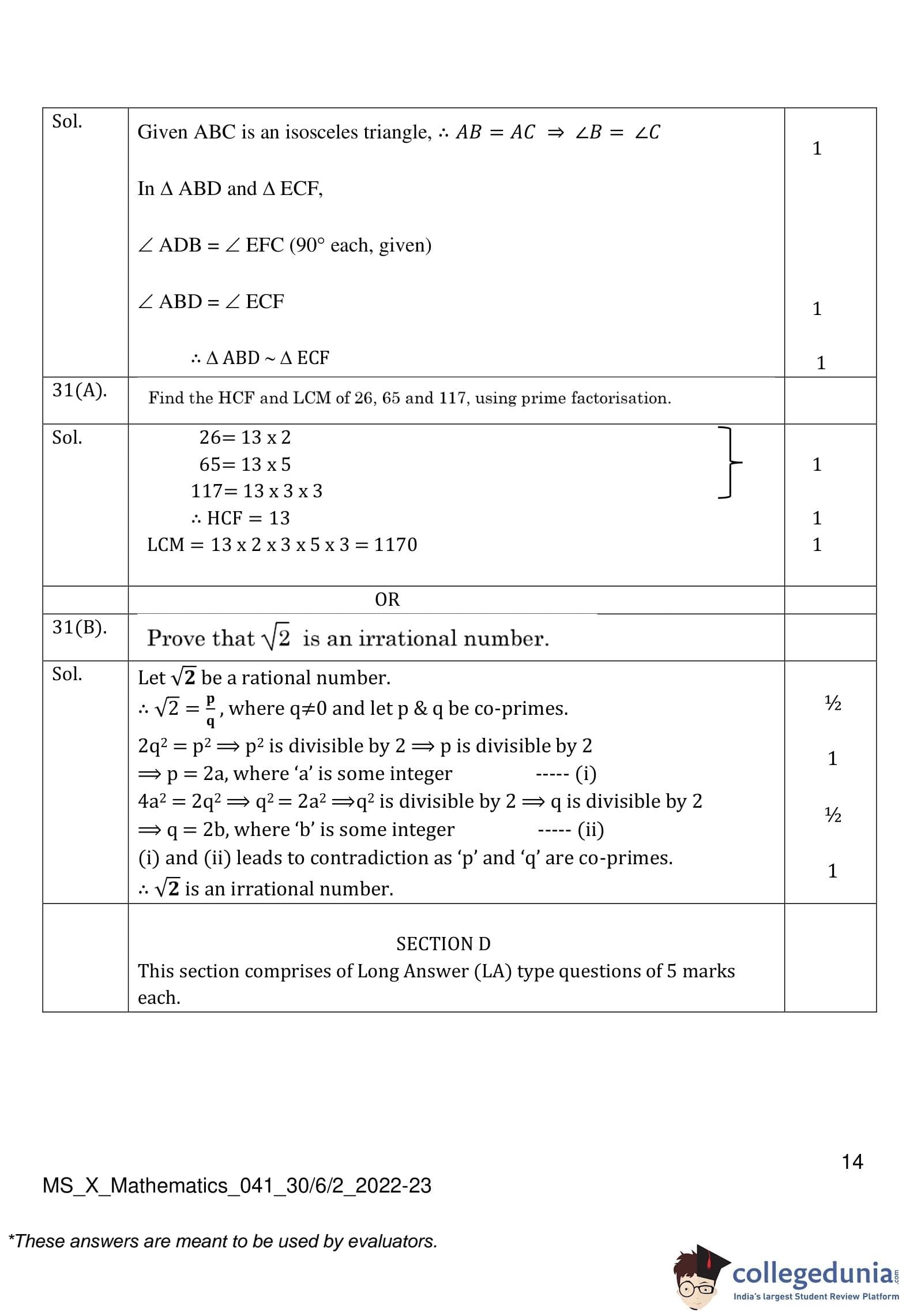 CBSE Class 10 Mathematics Standard (Set 2- 30/6/2) Question Paper 2023 with Answer Key