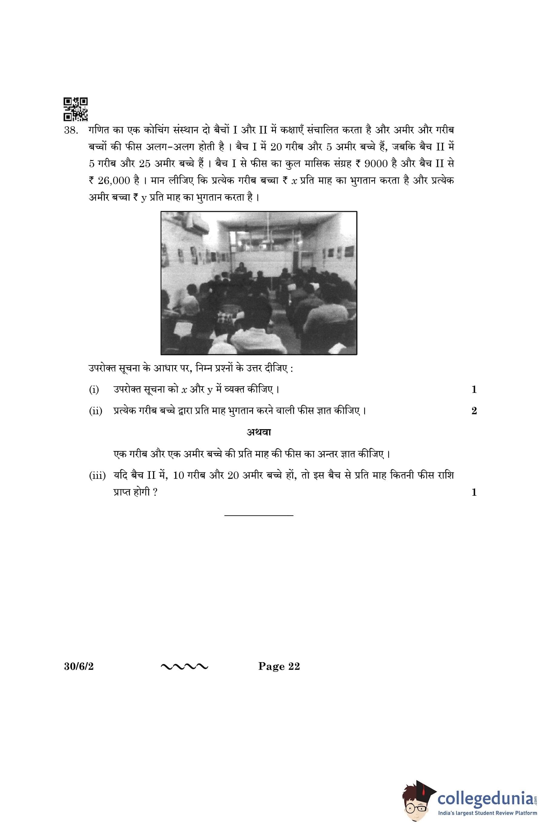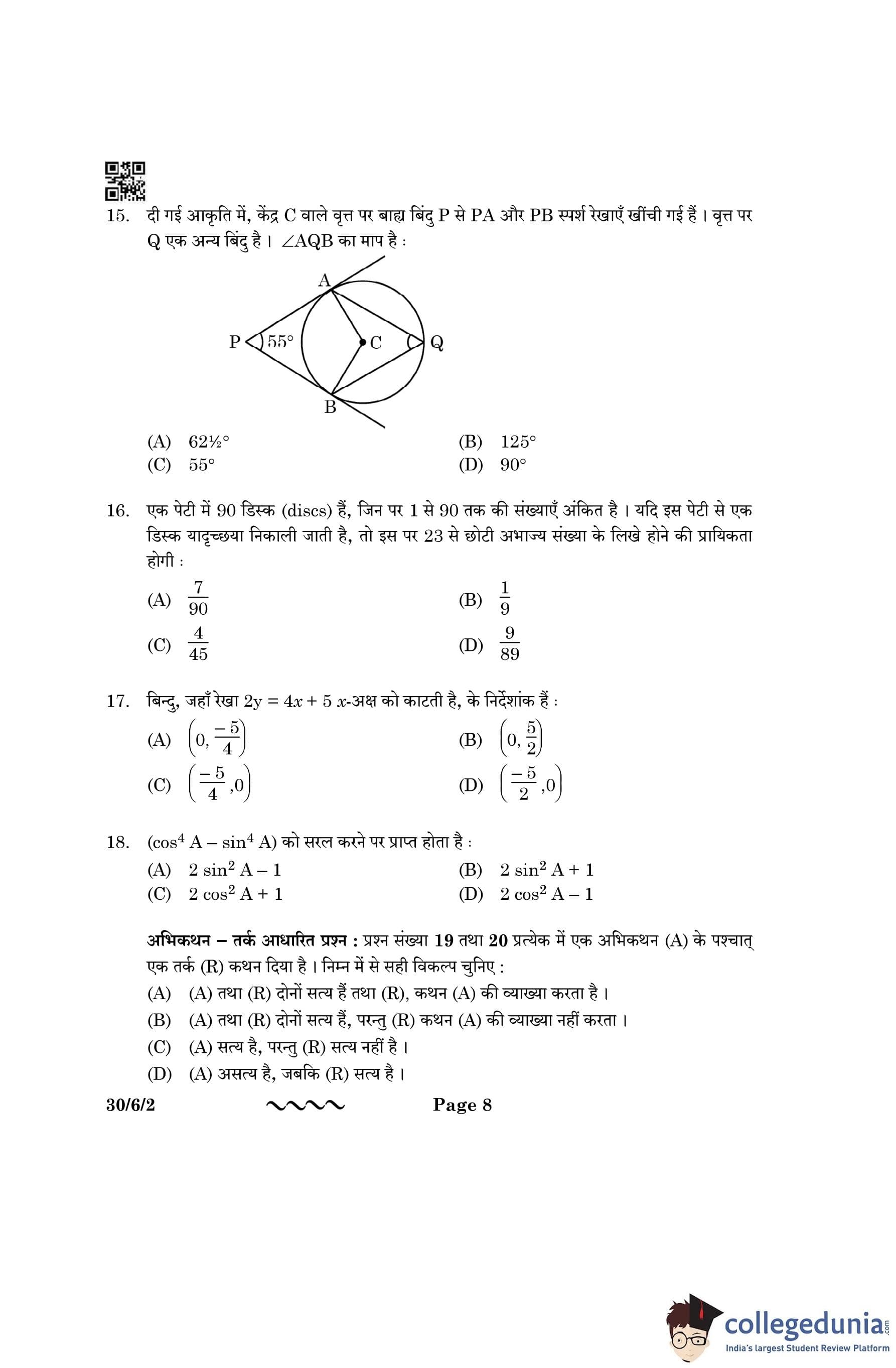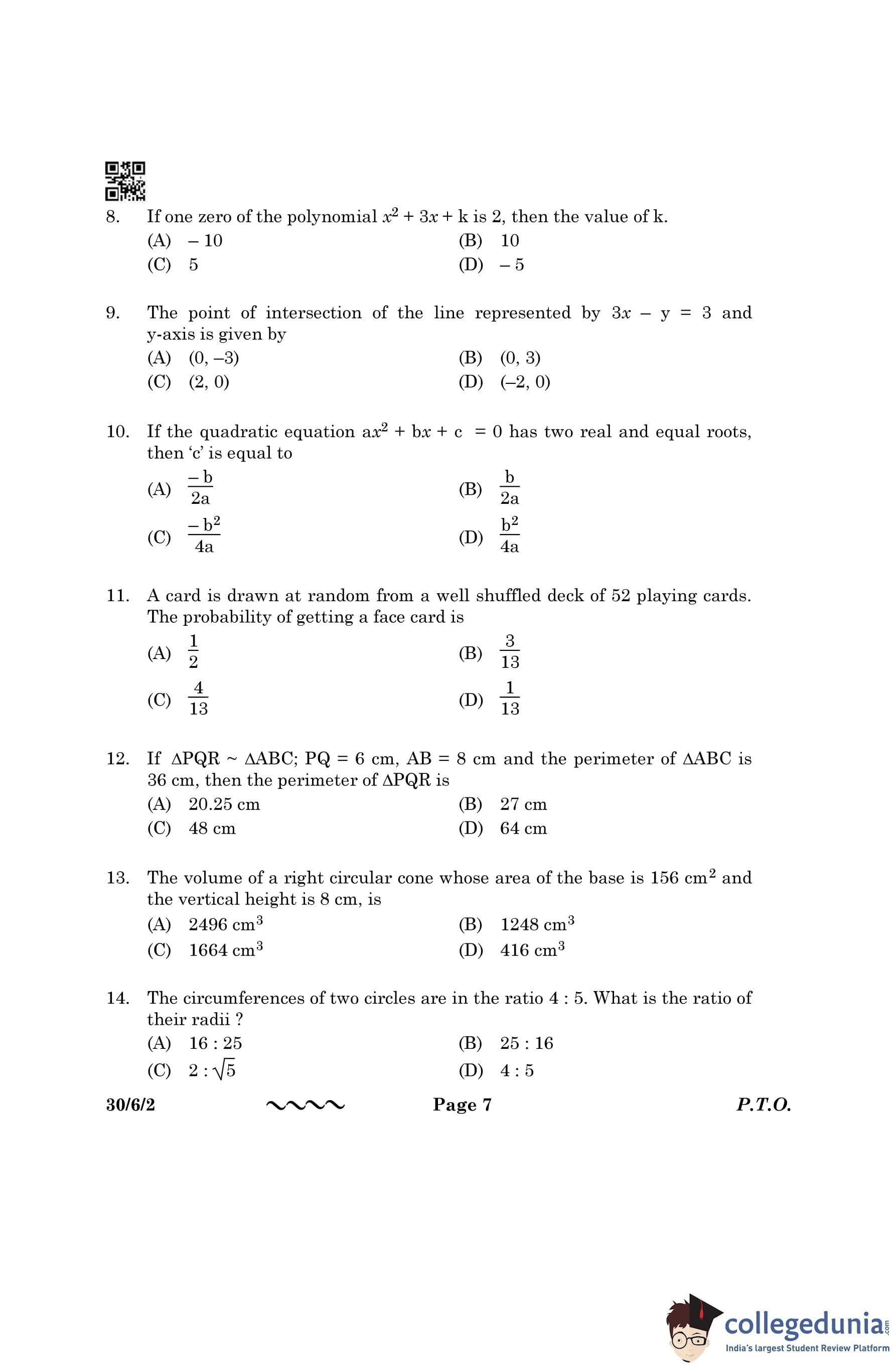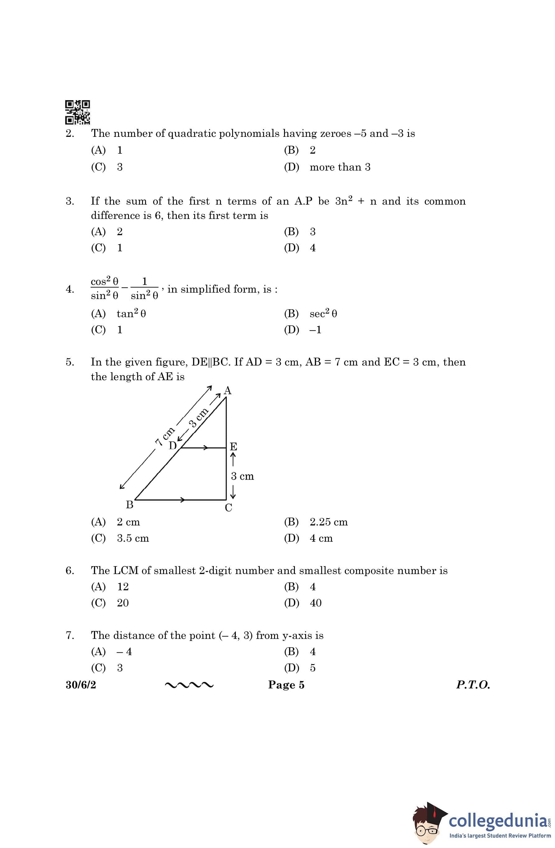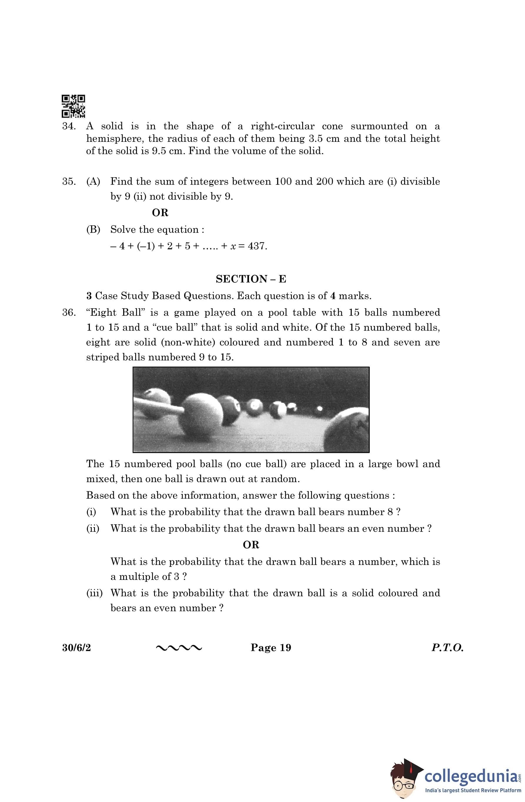 CBSE Class 10 Mathematics Standard Question Paper 2023 with Answer Key (Set 2- 30/6/2) is available for download here. The exam was conducted by the Central Board of Secondary Education on March 21, 2023 in the Morning Session 10:30 AM to 1:30 PM. The medium of paper was English & Hindi. According to initial student reaction, the CBSE Class 10 Mathematics Standard paper was rated as Moderate in difficulty level. The question paper comprised a total of 38 questions divided among 5 sections.