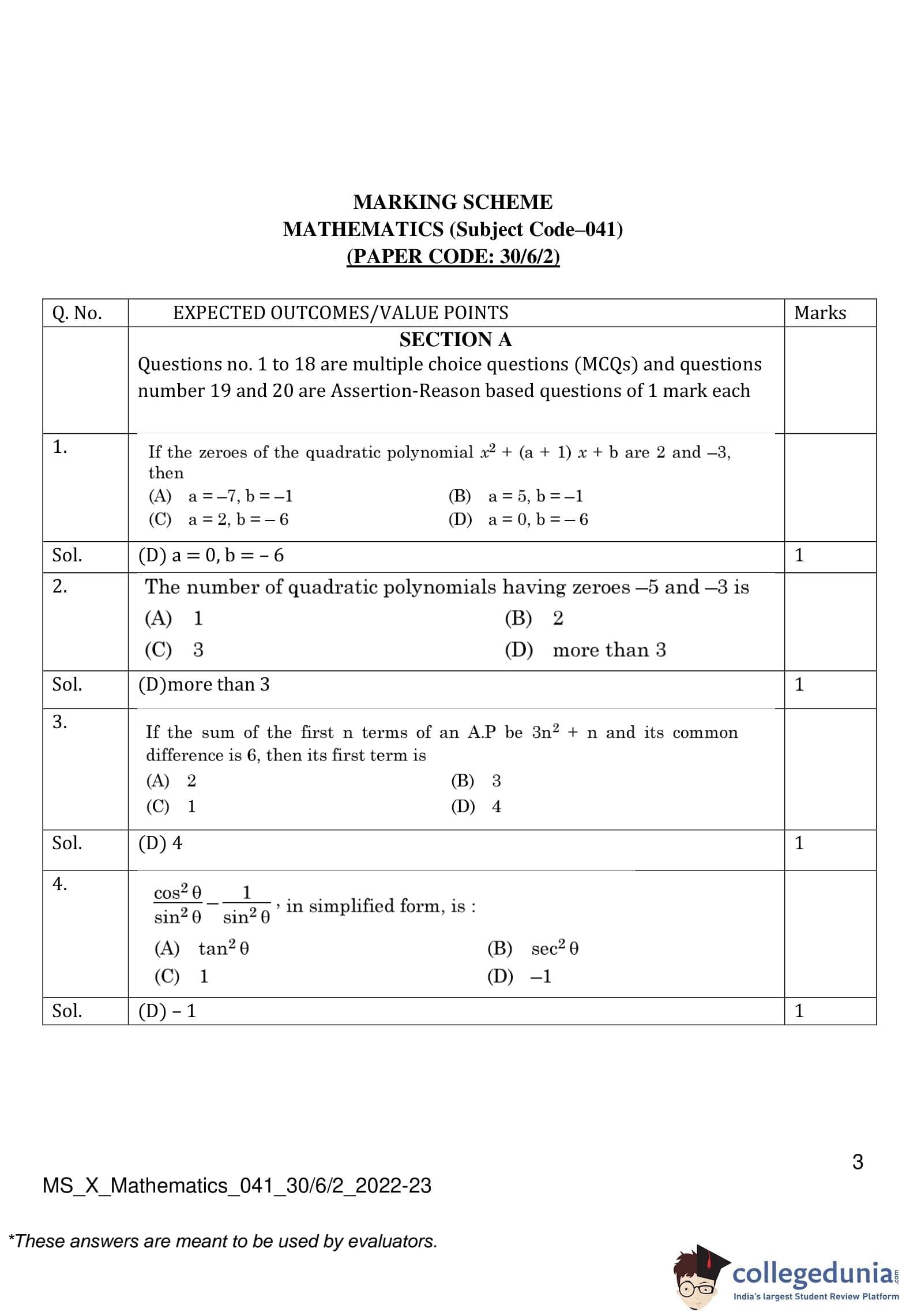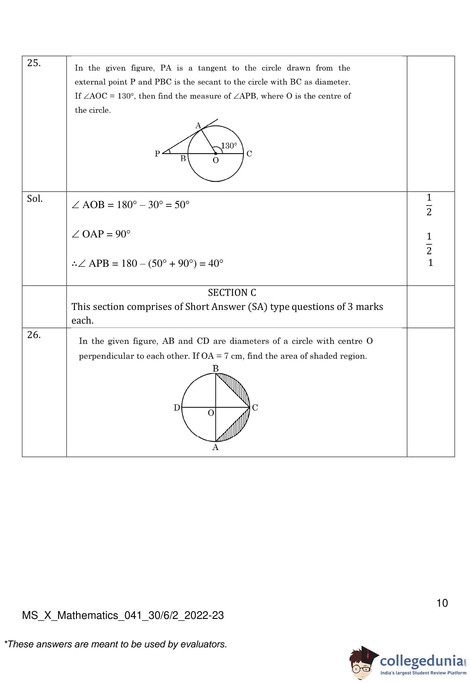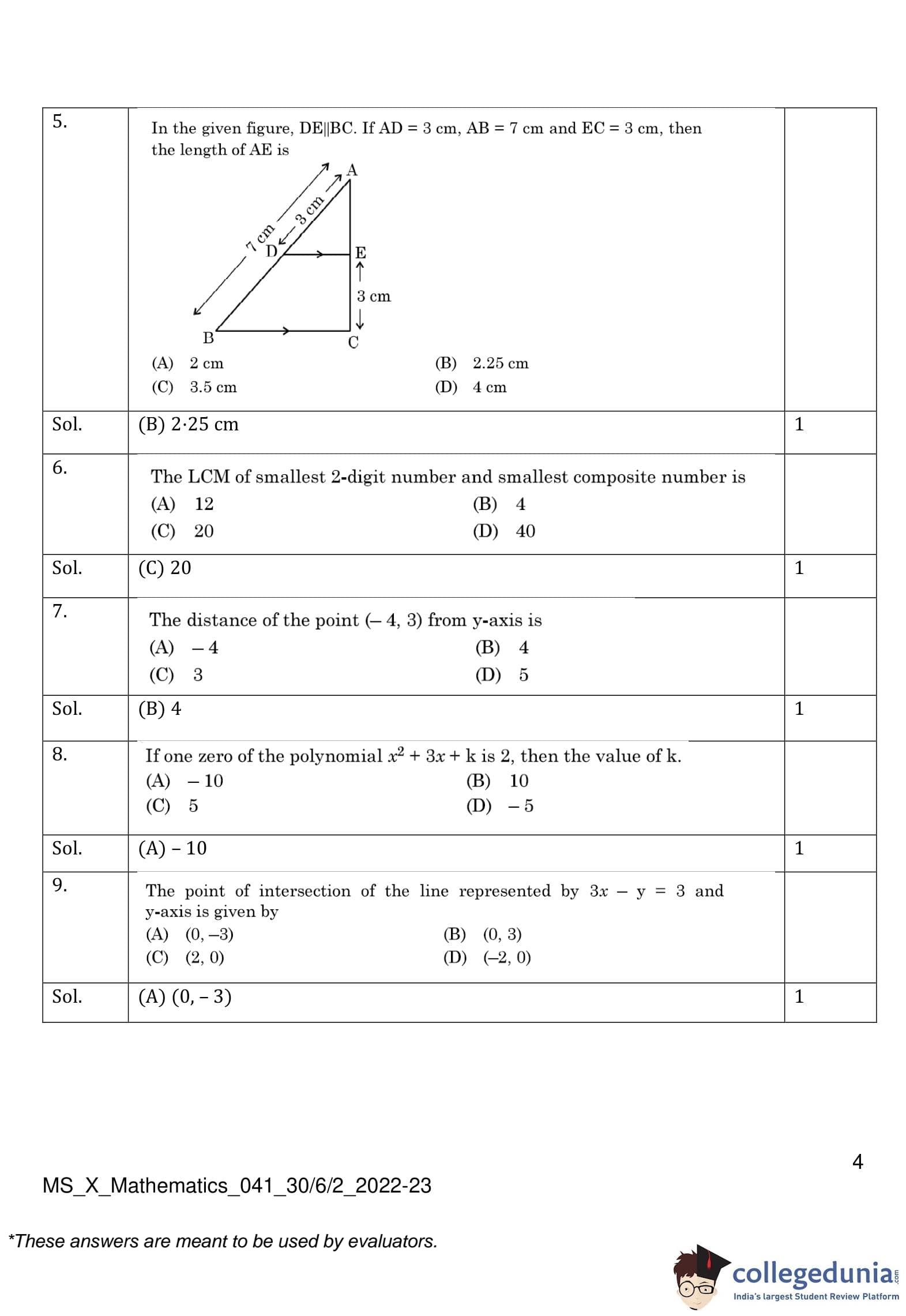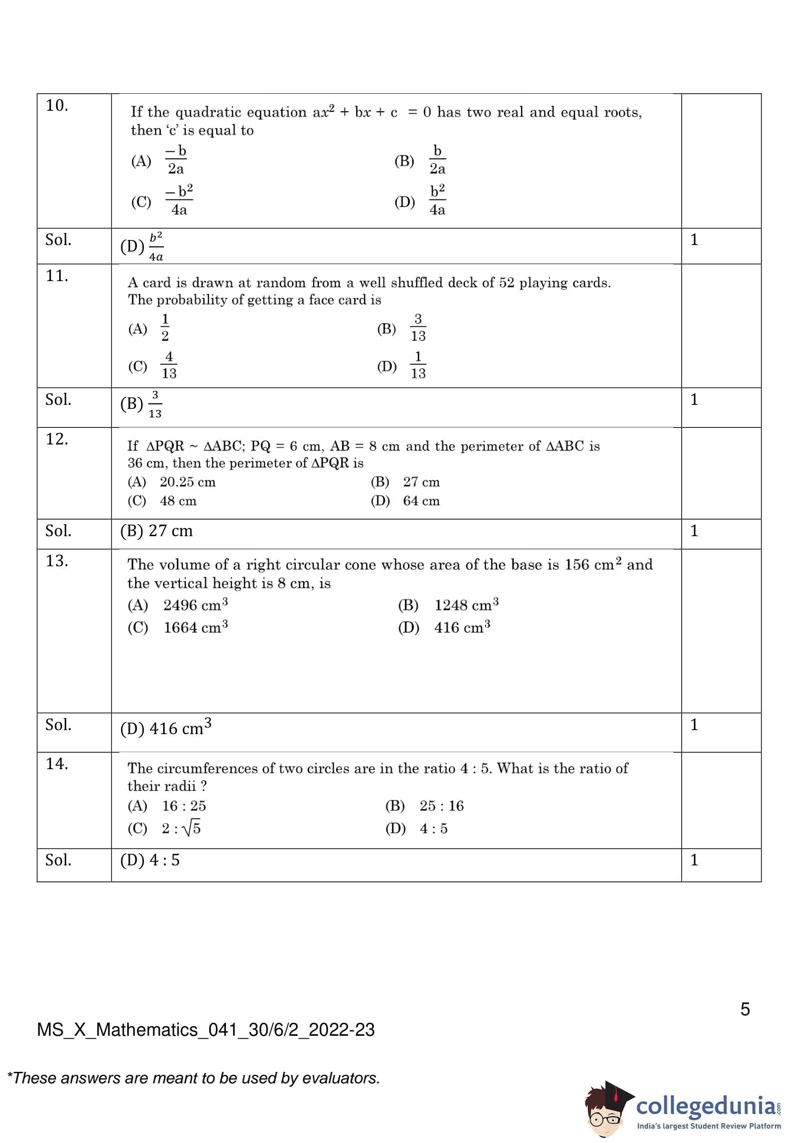 | CBSE Class 10 Mathematics Question Paper 2023 PDF | CBSE Class 10 Mathematics Answer Key 2023 PDF | Detailed Solutions |