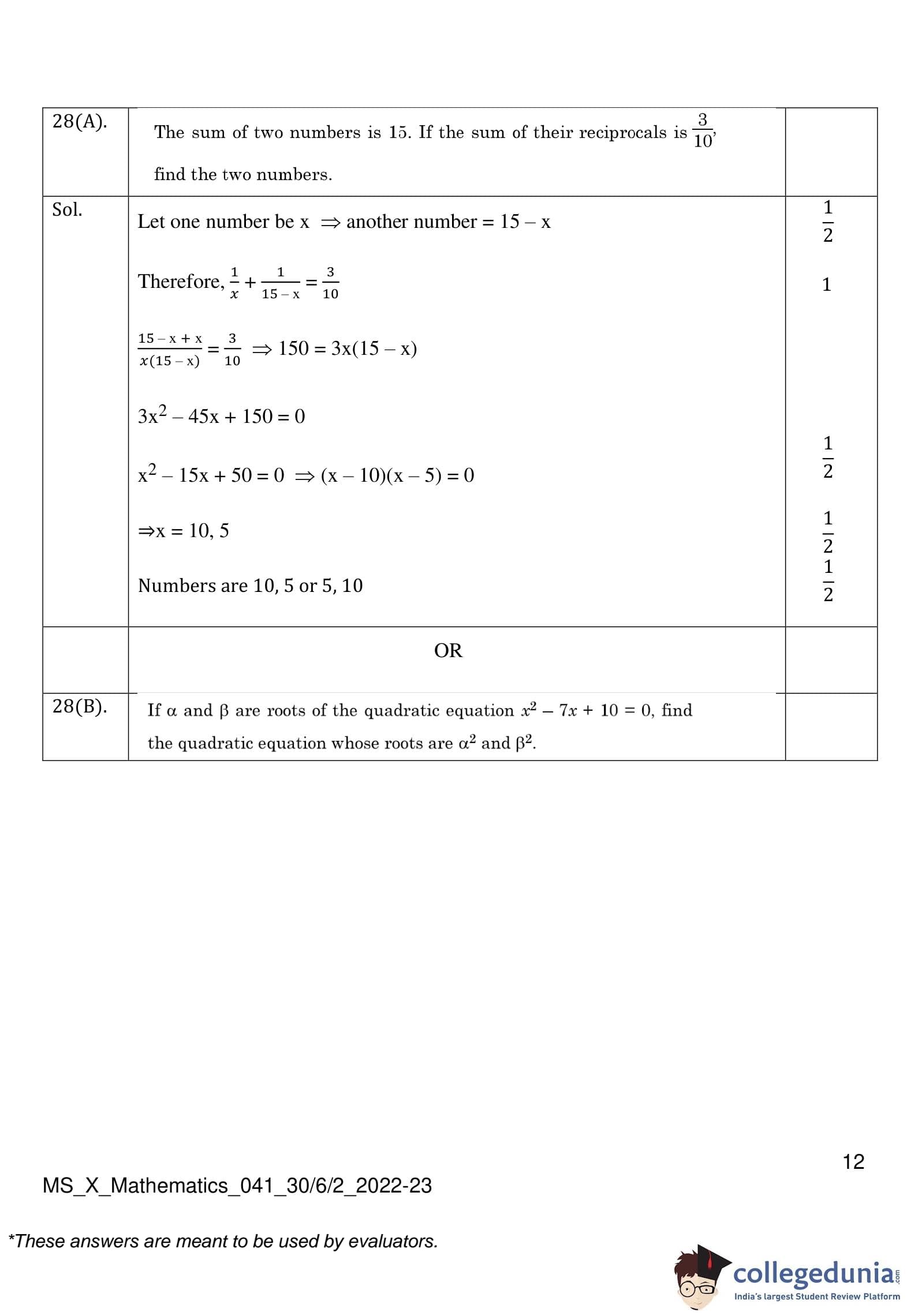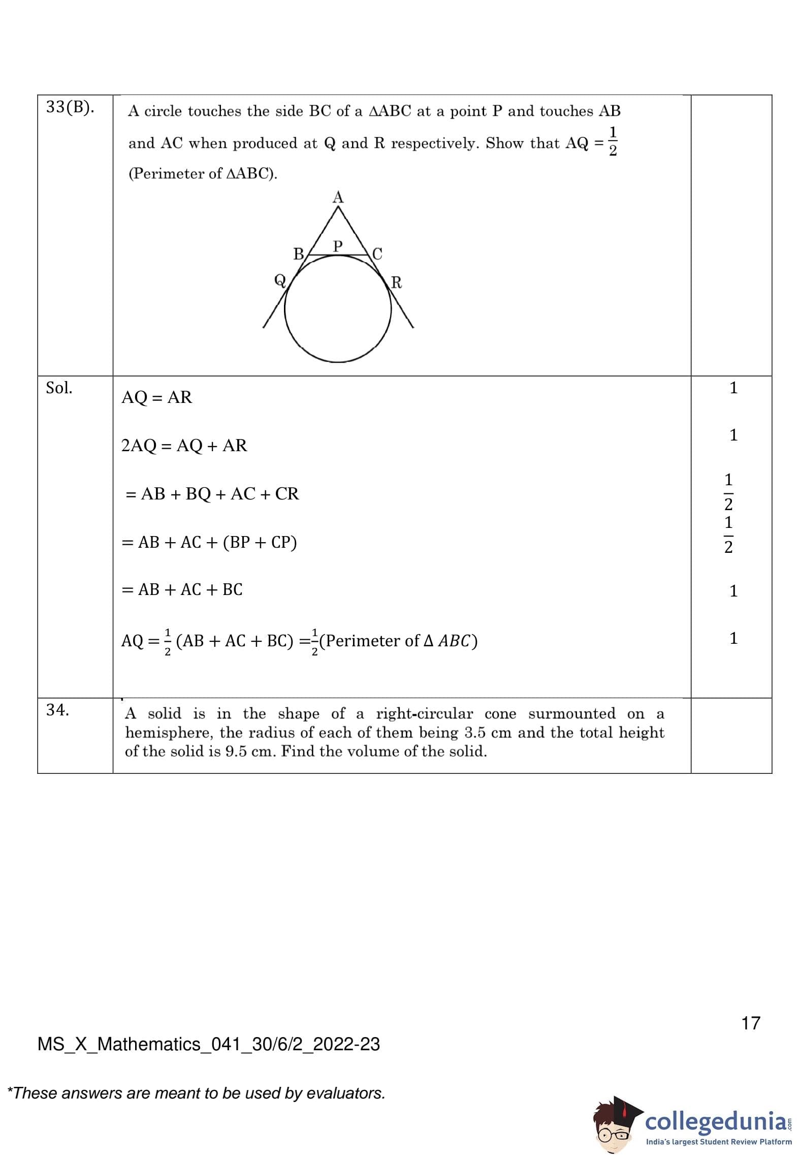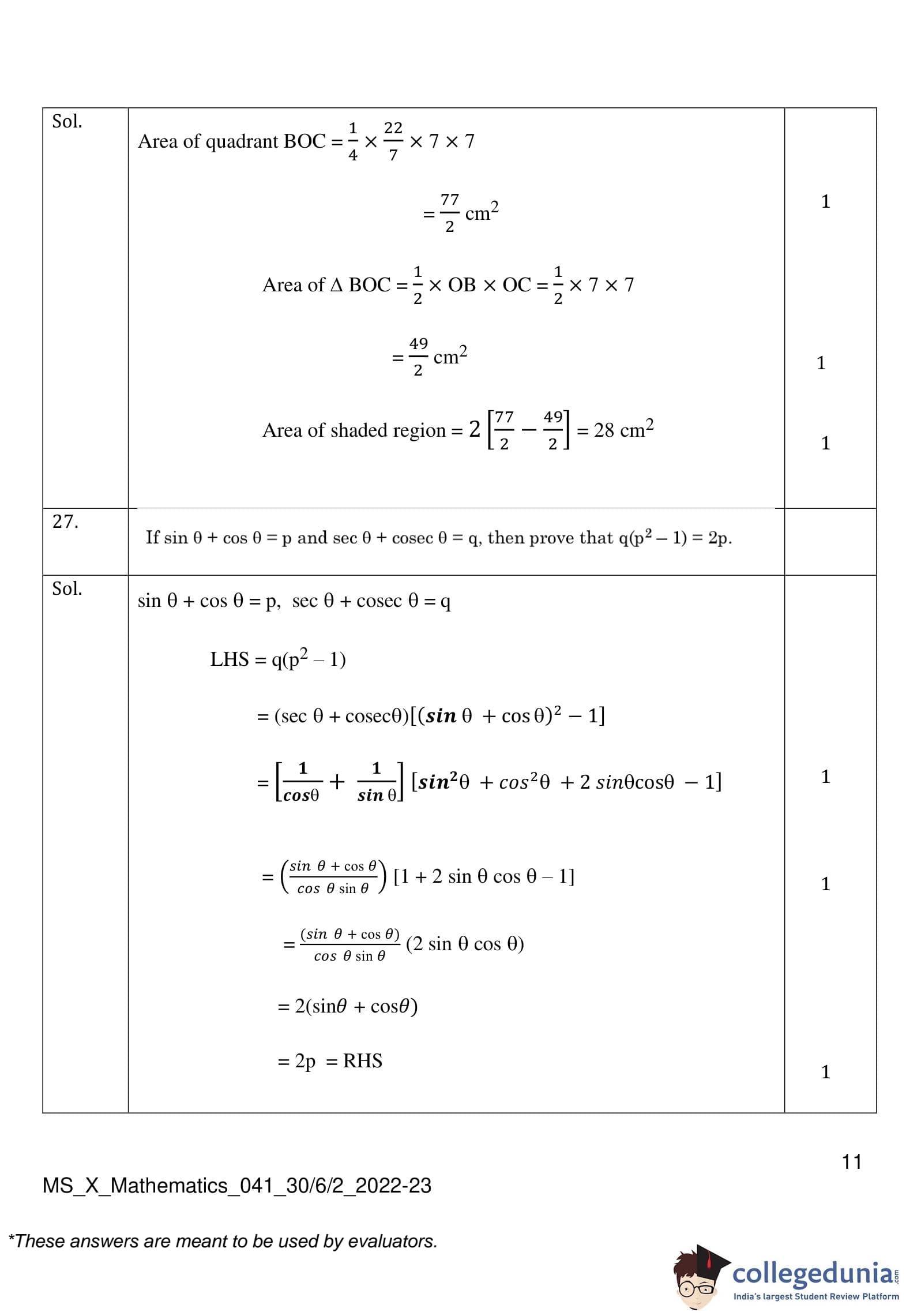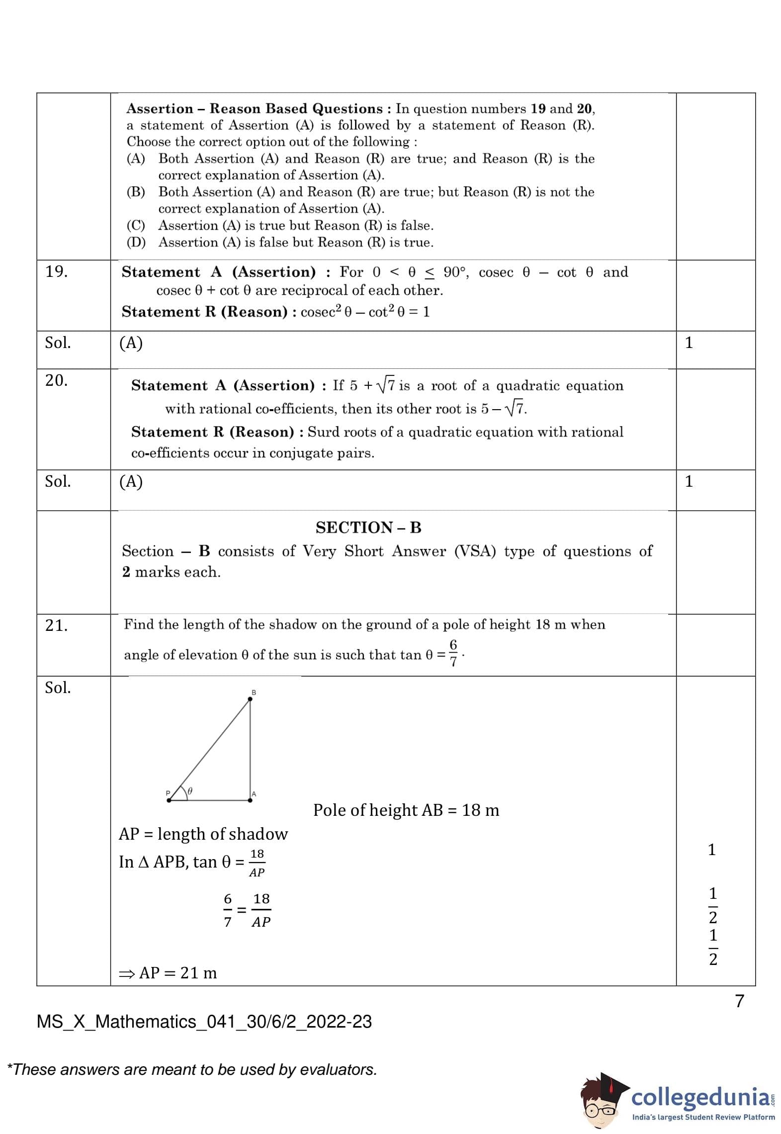 | CBSE Class 10 Mathematics Question Paper 2023 PDF | CBSE Class 10 Mathematics Answer Key 2023 PDF | Detailed Solutions |