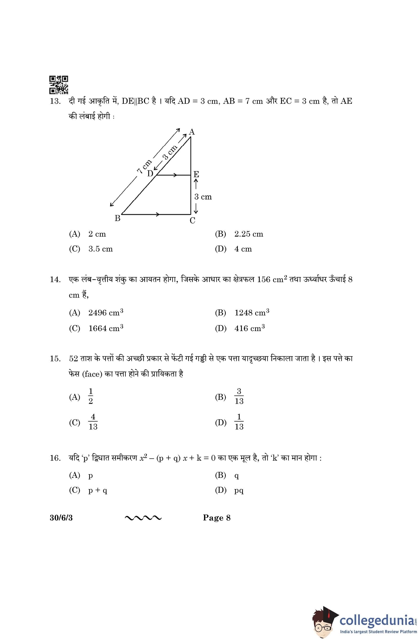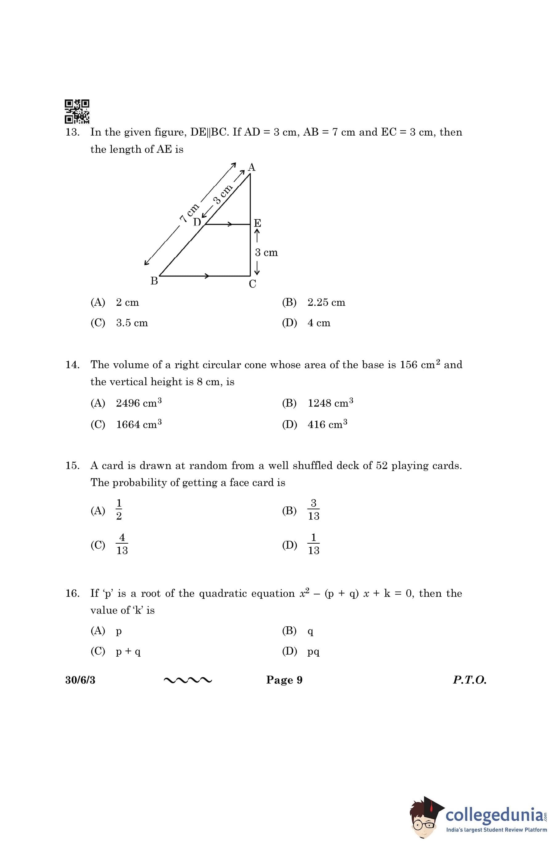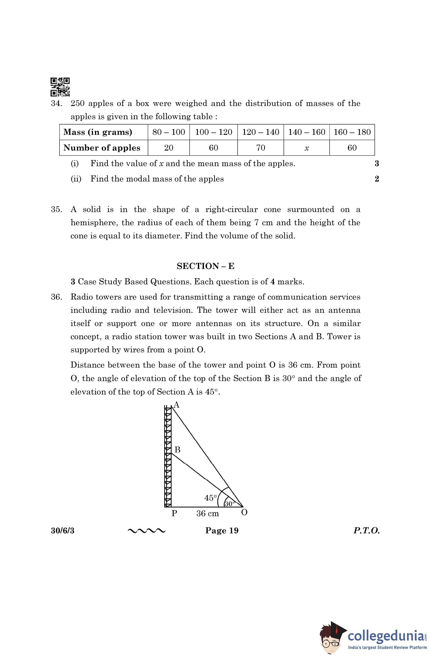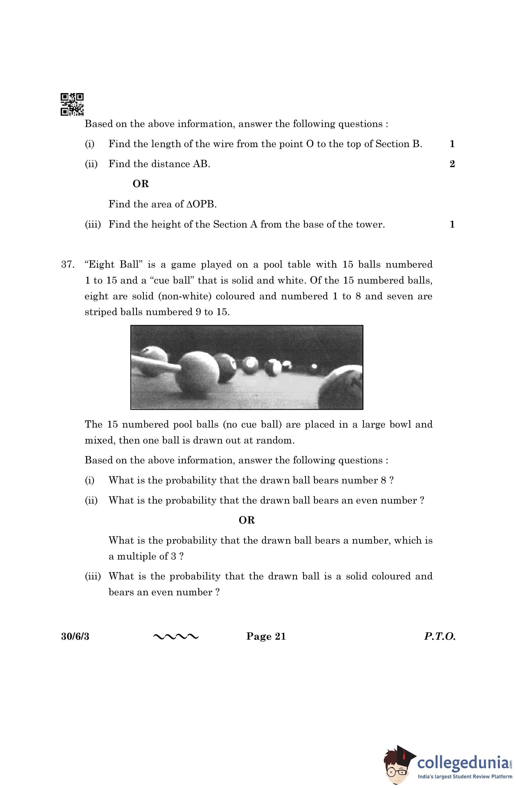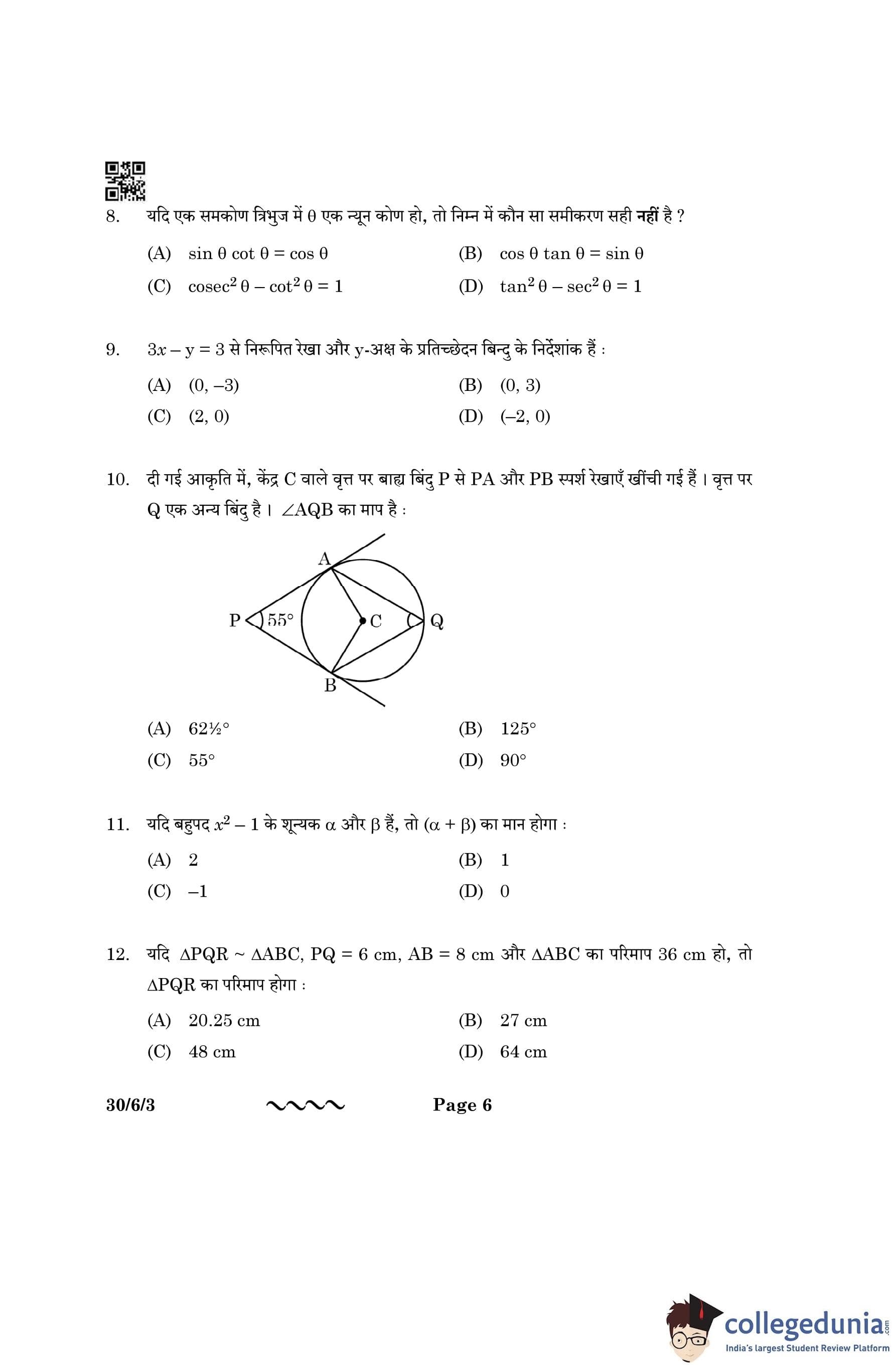 CBSE Class 10 Mathematics Standard Question Paper 2023 with Answer Key (Set 3- 30/6/3) is available for download here. The exam was conducted by the Central Board of Secondary Education on March 21, 2023 in the Morning Session 10:30 AM to 1:30 PM. The medium of paper was English & Hindi. According to initial student reaction, the CBSE Class 10 Mathematics Standard paper was rated as Moderate in difficulty level. The question paper comprised a total of 38 questions divided among 5 sections.