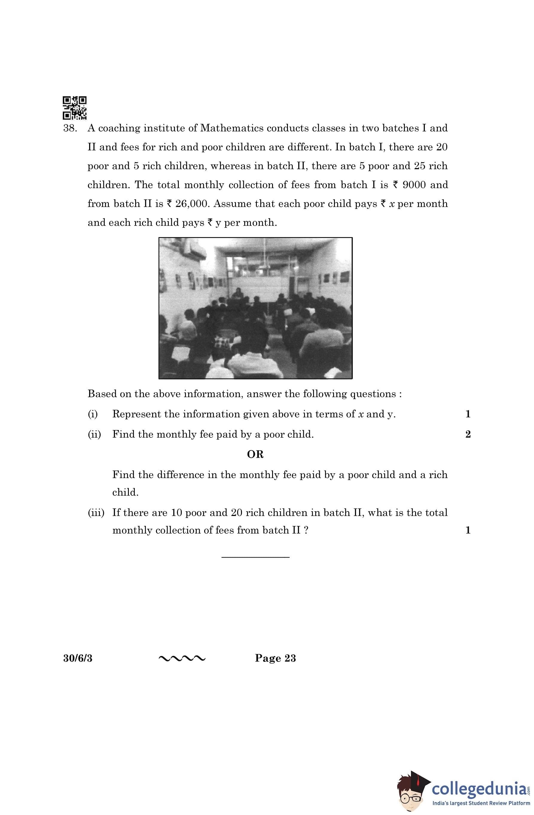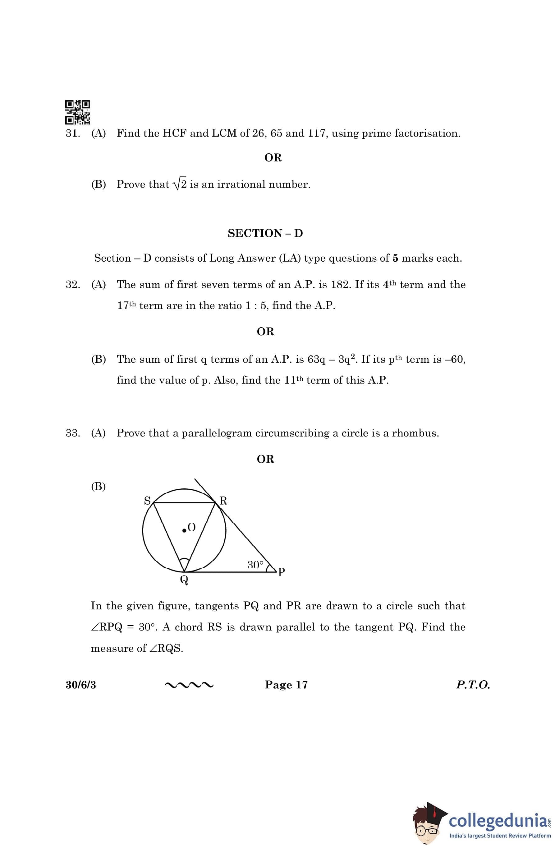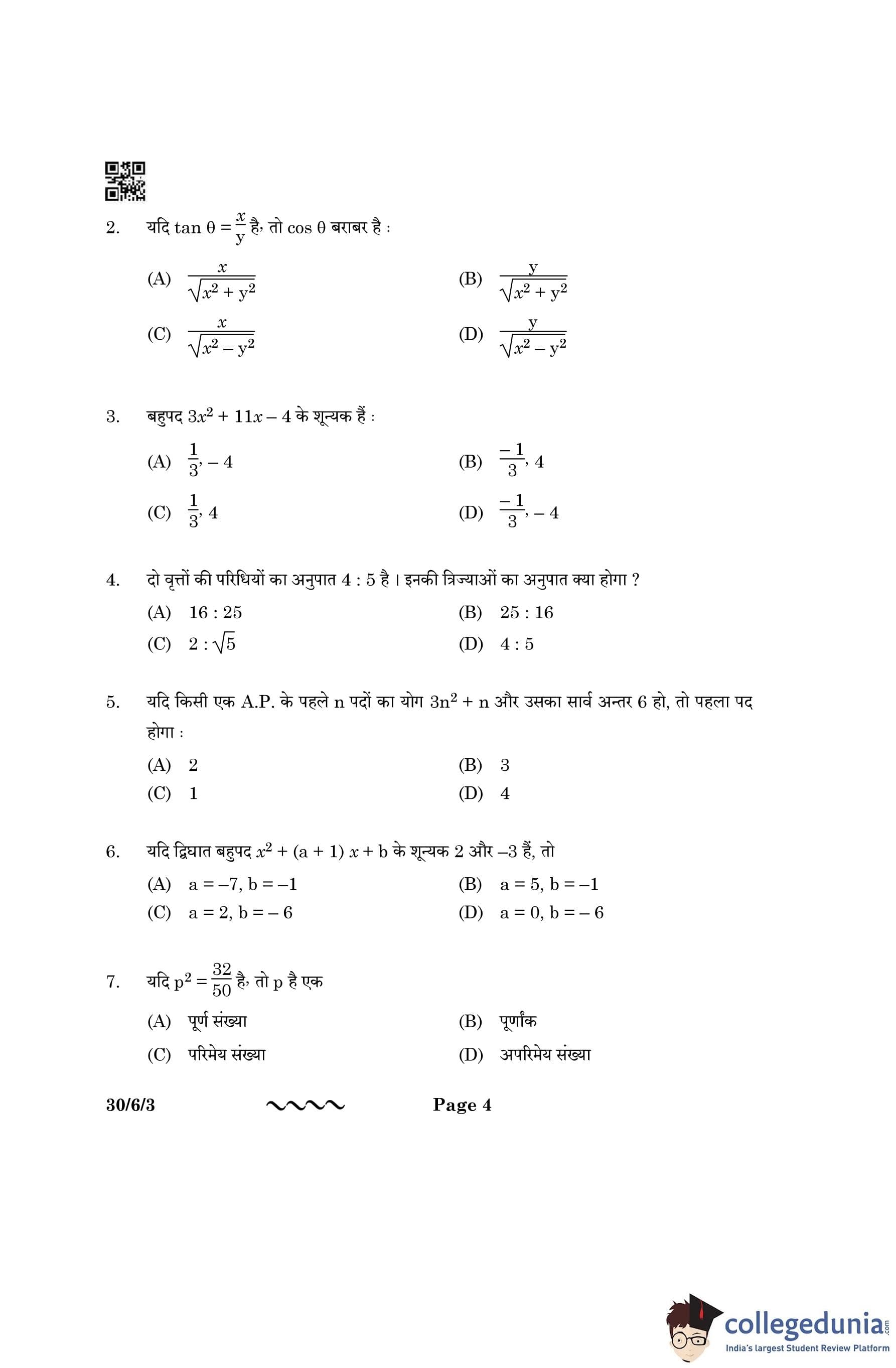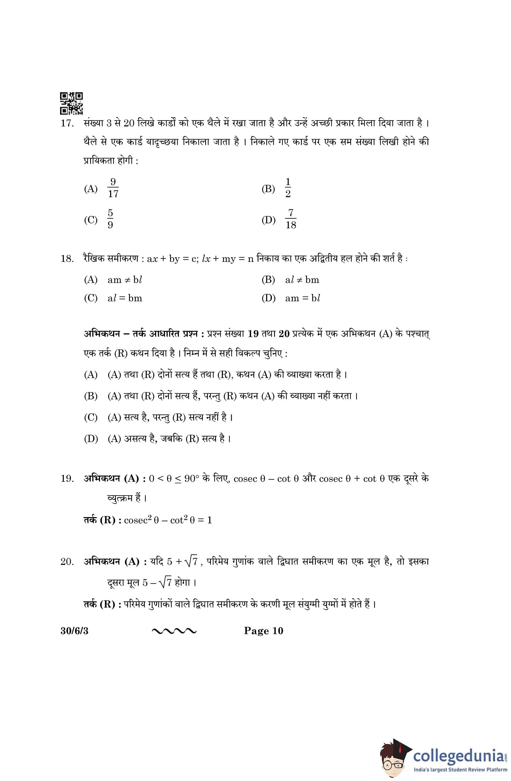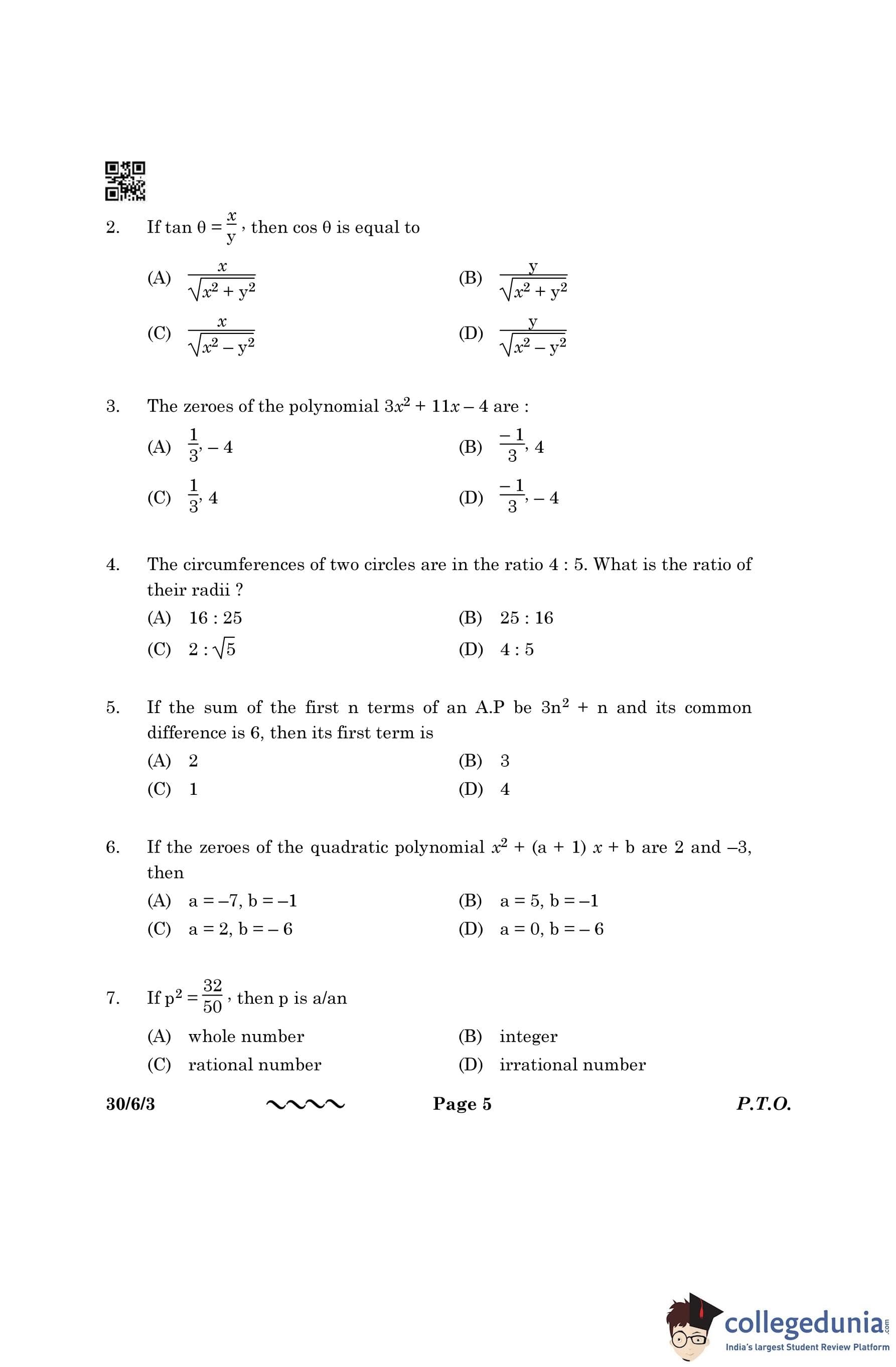 CBSE Class 10 Mathematics Standard Question Paper 2023 with Answer Key (Set 3- 30/6/3) is available for download here. The exam was conducted by the Central Board of Secondary Education on March 21, 2023 in the Morning Session 10:30 AM to 1:30 PM. The medium of paper was English & Hindi. According to initial student reaction, the CBSE Class 10 Mathematics Standard paper was rated as Moderate in difficulty level. The question paper comprised a total of 38 questions divided among 5 sections.