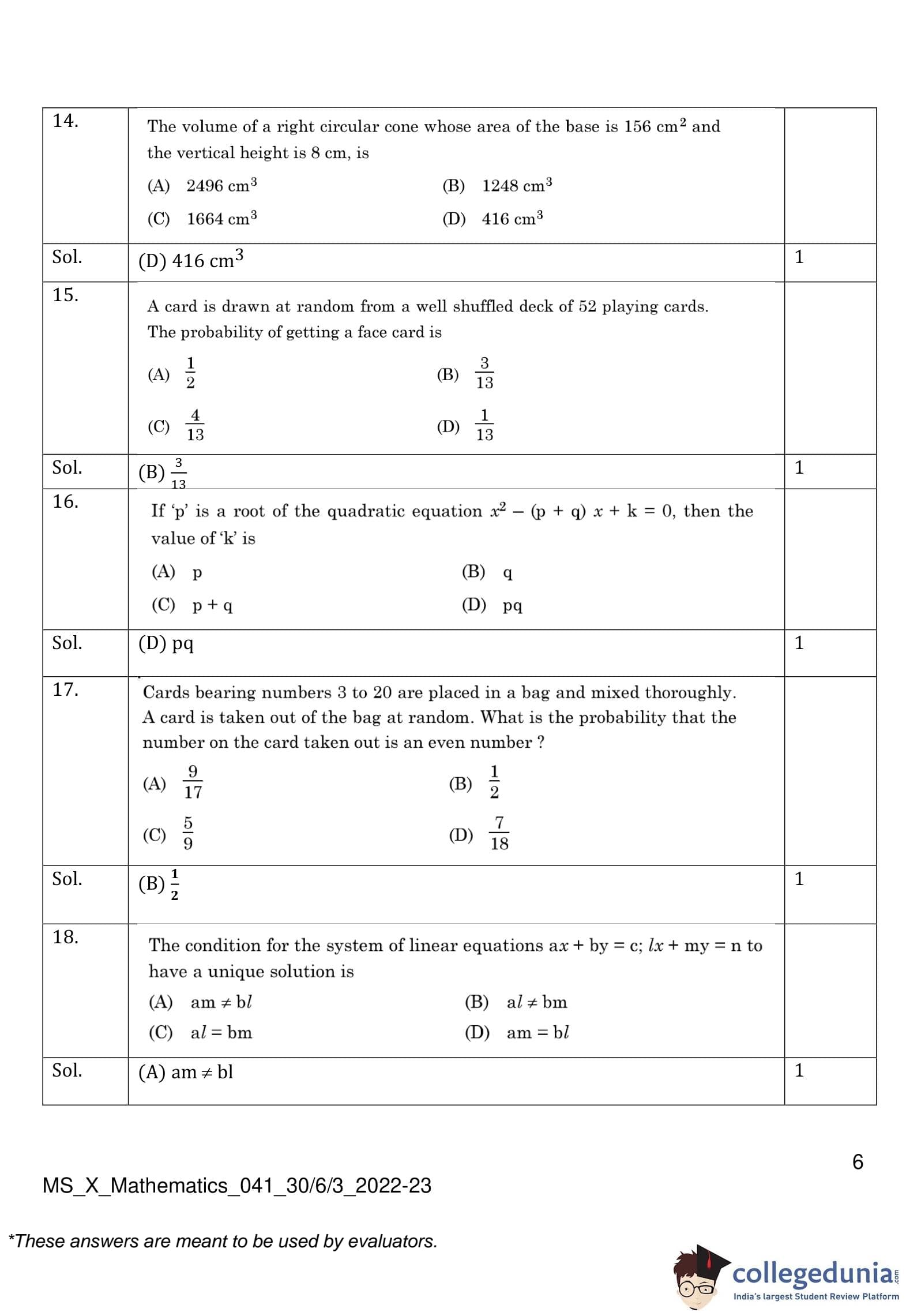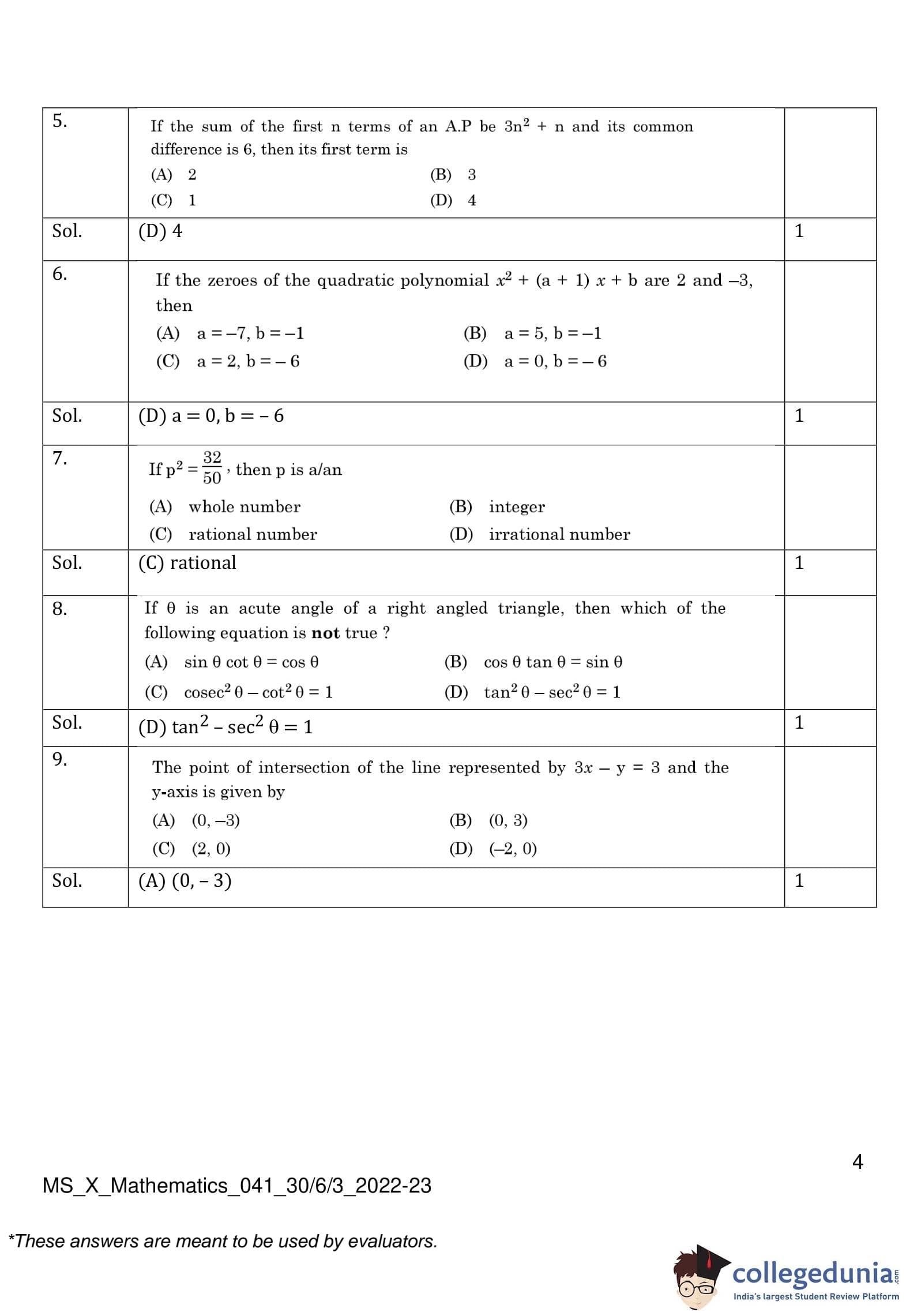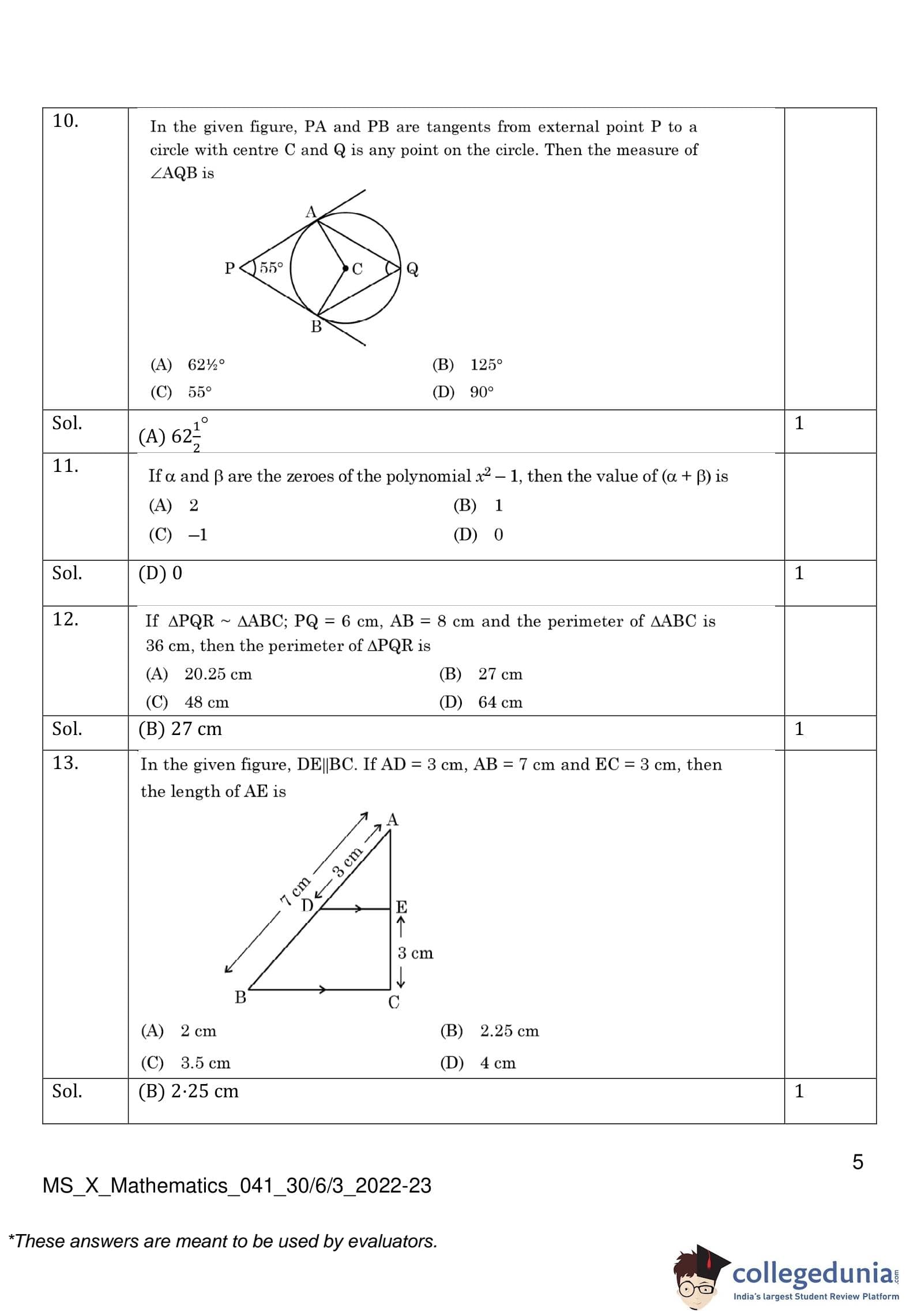 | CBSE Class 10 Mathematics Question Paper 2023 PDF | CBSE Class 10 Mathematics Answer Key 2023 PDF | Detailed Solutions |