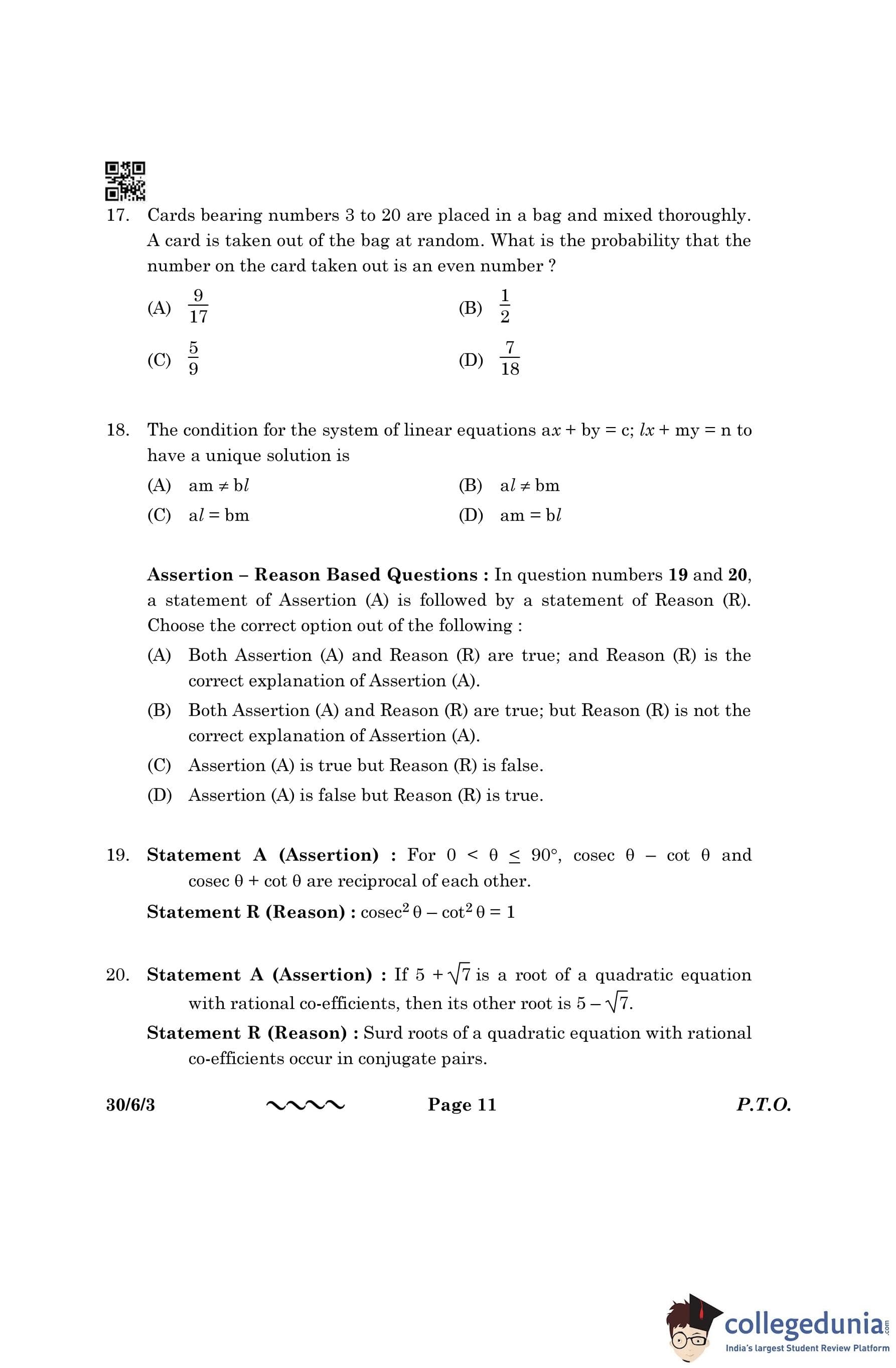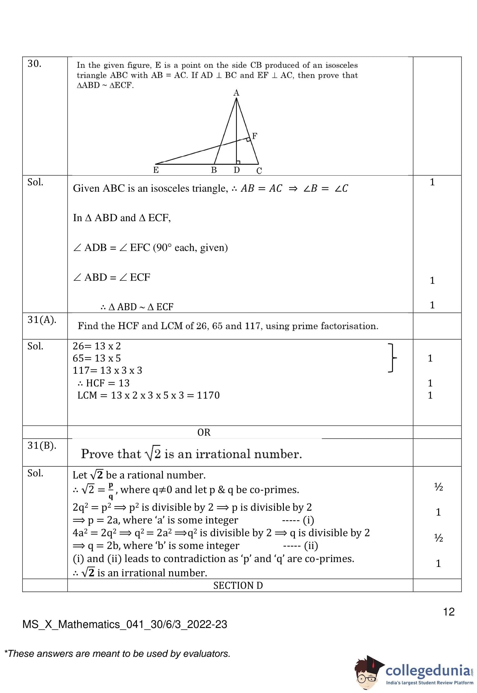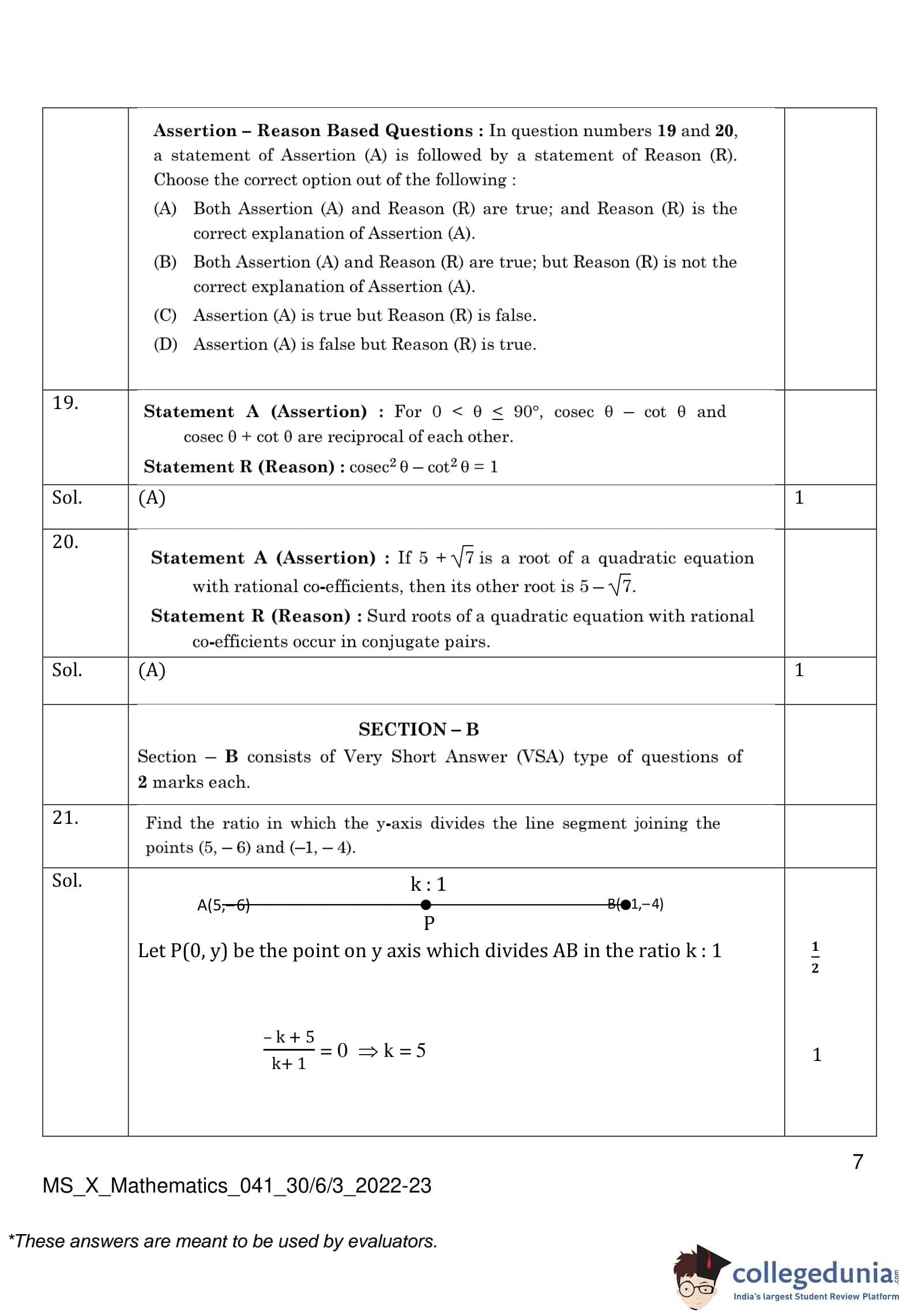 | CBSE Class 10 Mathematics Question Paper 2023 PDF | CBSE Class 10 Mathematics Answer Key 2023 PDF | Detailed Solutions |