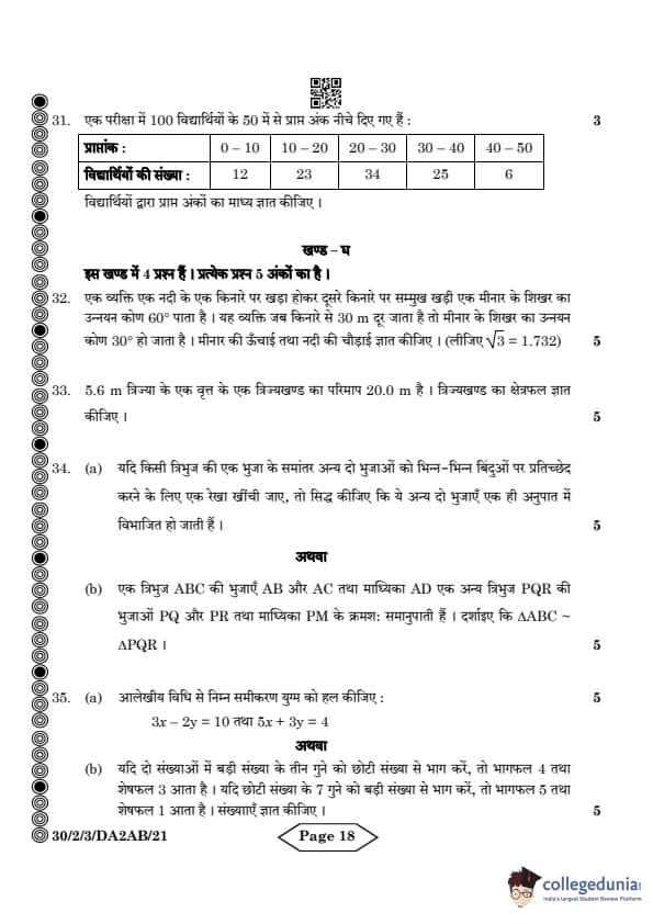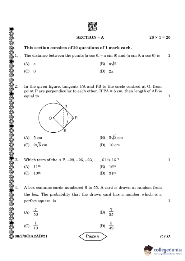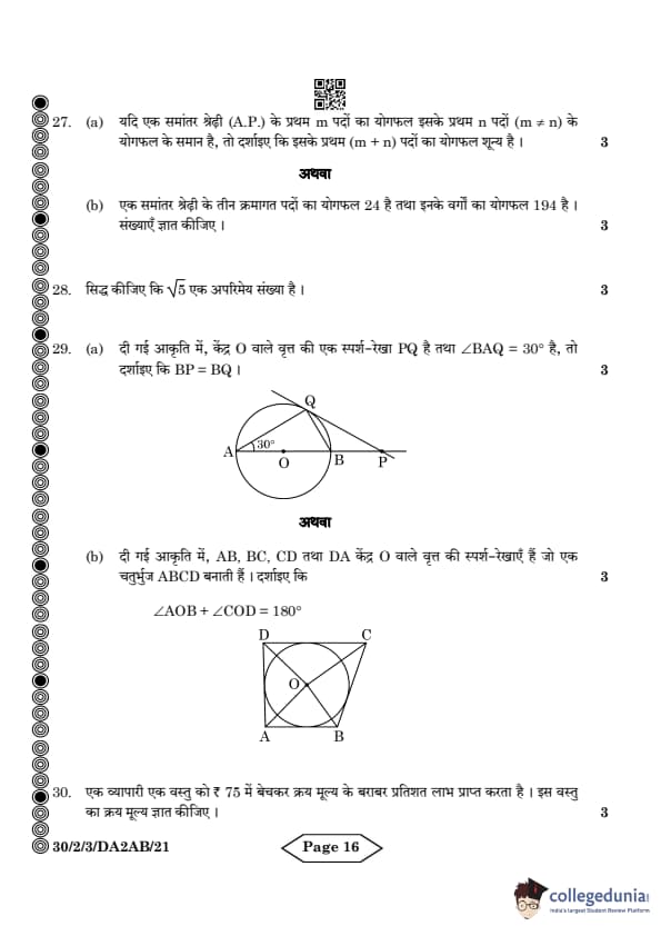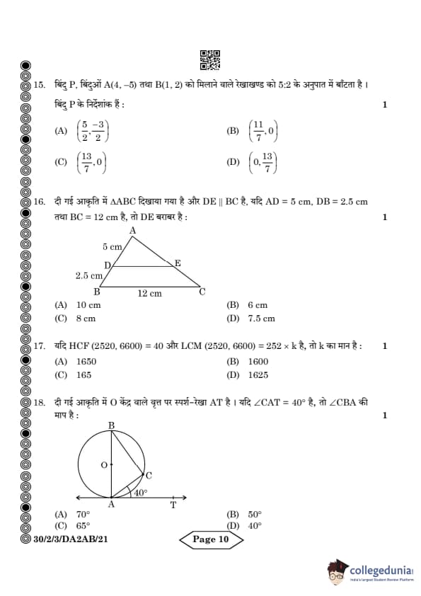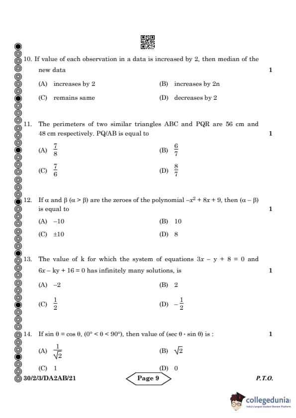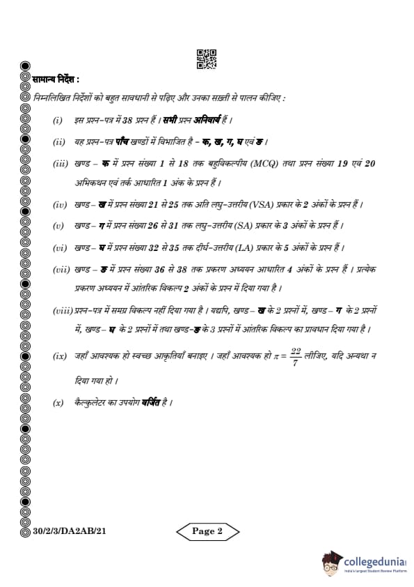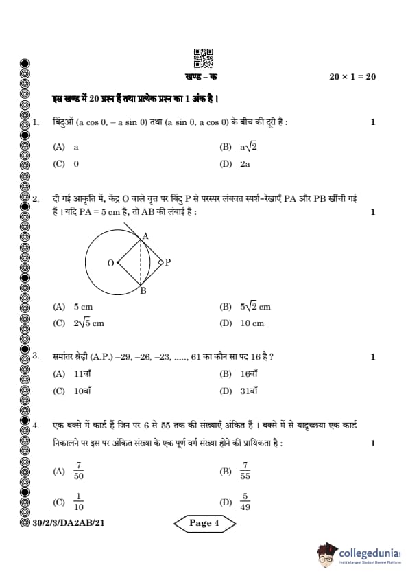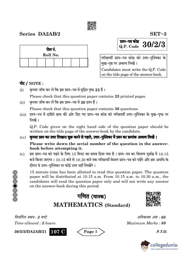 CBSE Class 10 Mathematics Standard Question Paper 2024 PDF (Set 3- 30/2/3) is available for download here. CBSE conducted the Mathematics Standard exam on March 11, 2024 from 10:30 AM to 1:30 PM. The total marks for the theory paper are 80. The question paper contains 20% MCQ-based questions, 40% competency-based questions, and 40% short and long answer type questions.