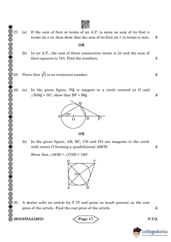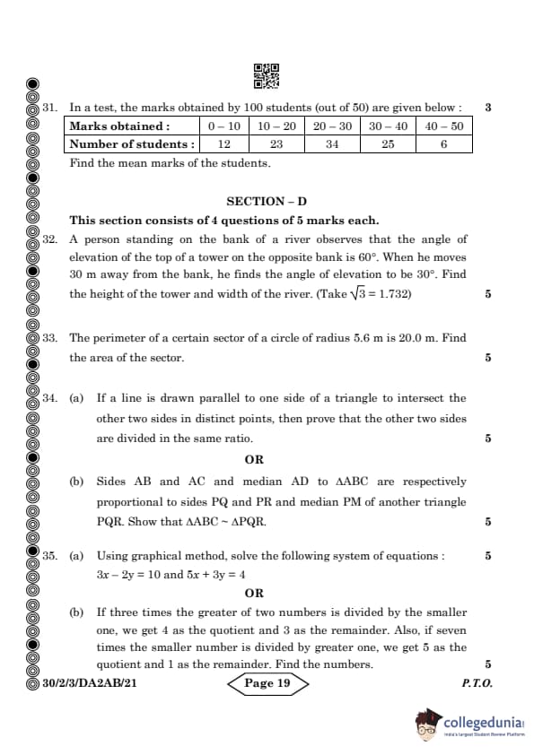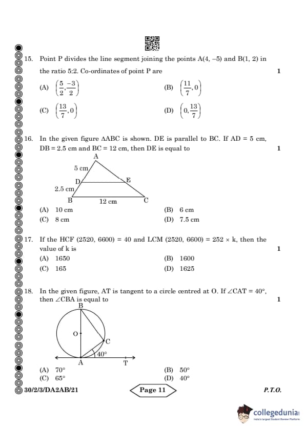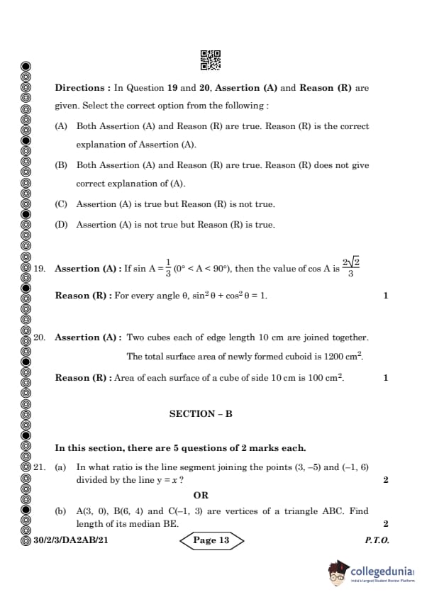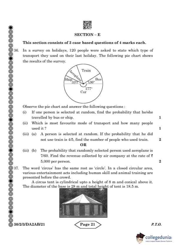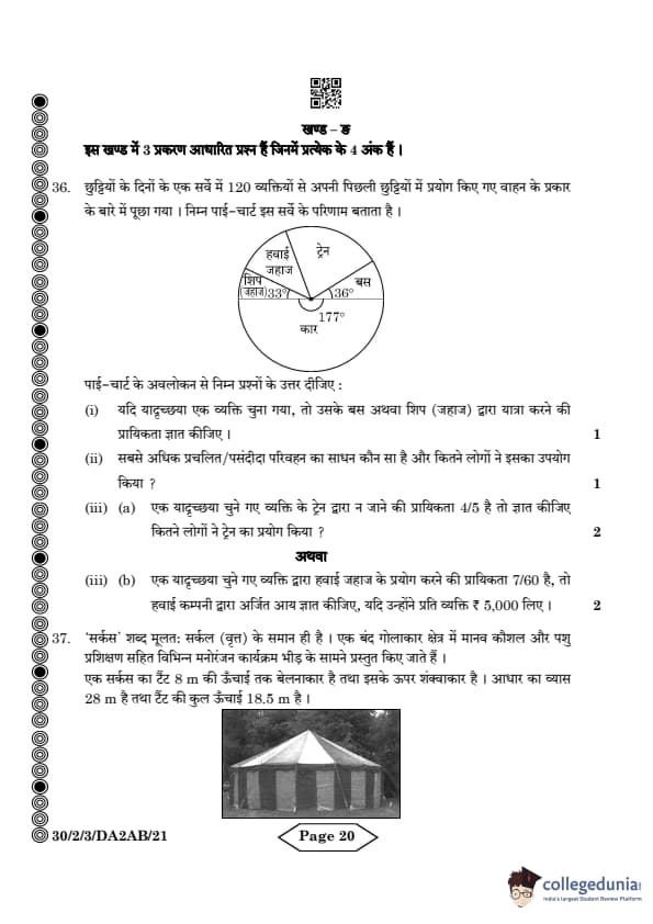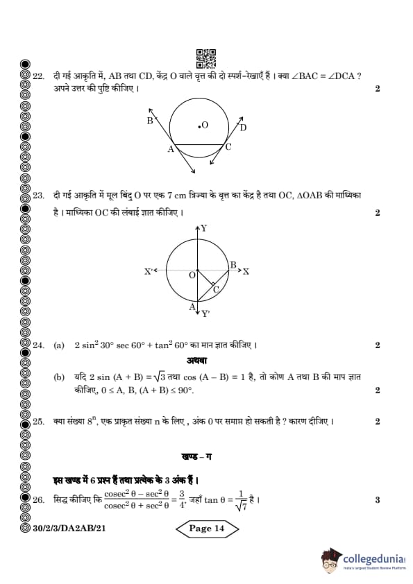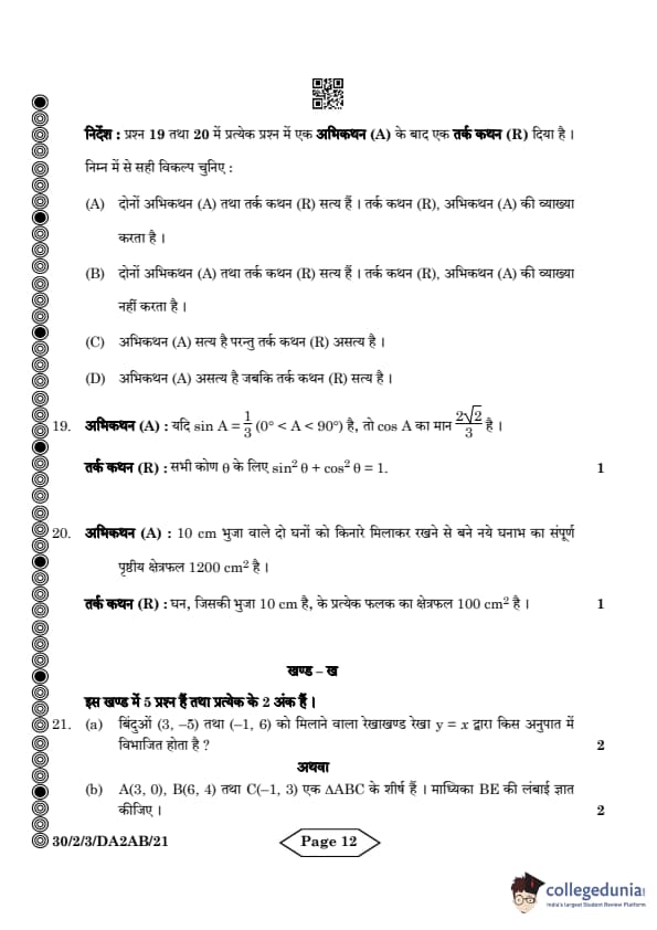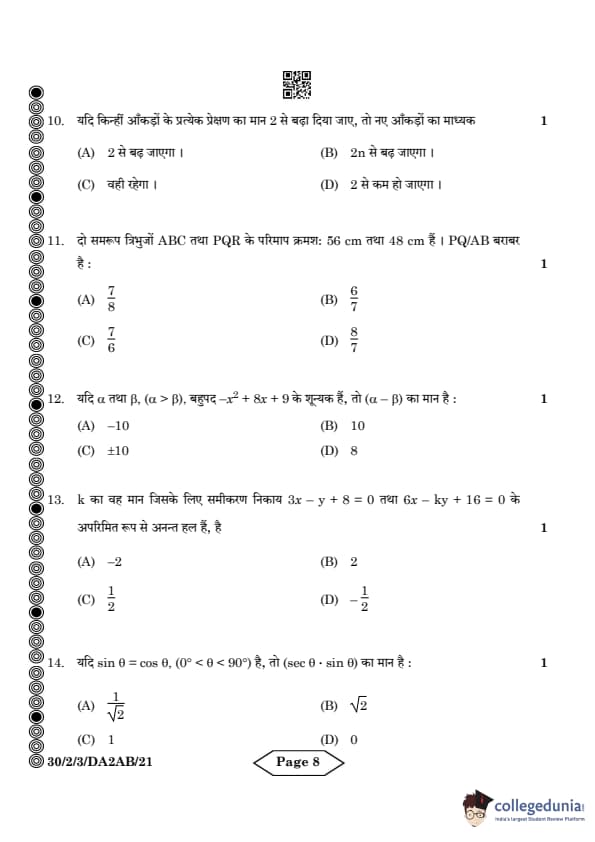CBSE Class 10 Mathematics Standard Question Paper 2024 PDF (Set 3- 30/2/3) is available for download here. CBSE conducted the Mathematics Standard exam on March 11, 2024 from 10:30 AM to 1:30 PM. The total marks for the theory paper are 80. The question paper contains 20% MCQ-based questions, 40% competency-based questions, and 40% short and long answer type questions.