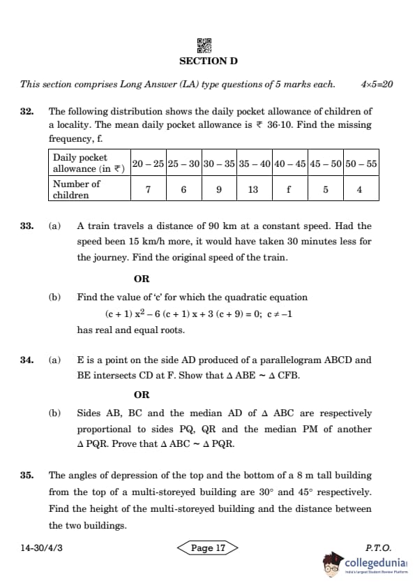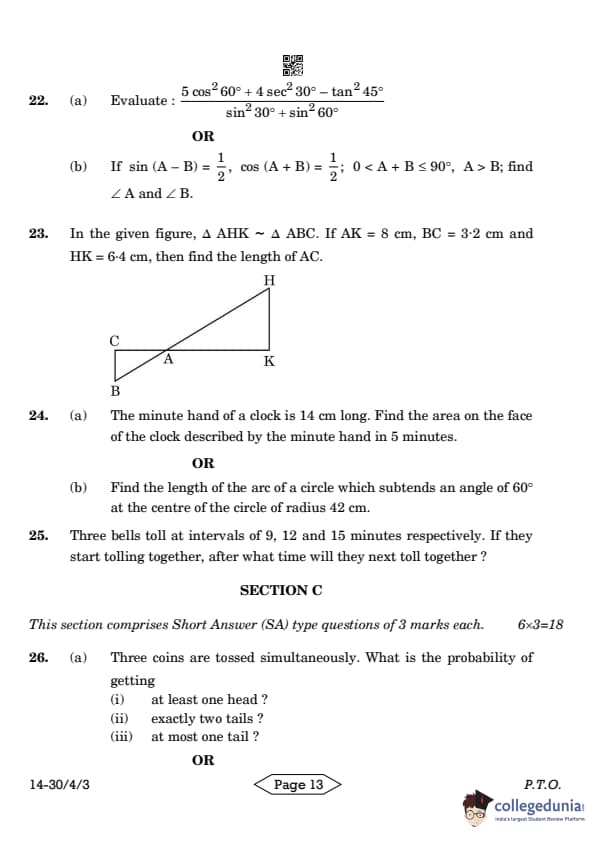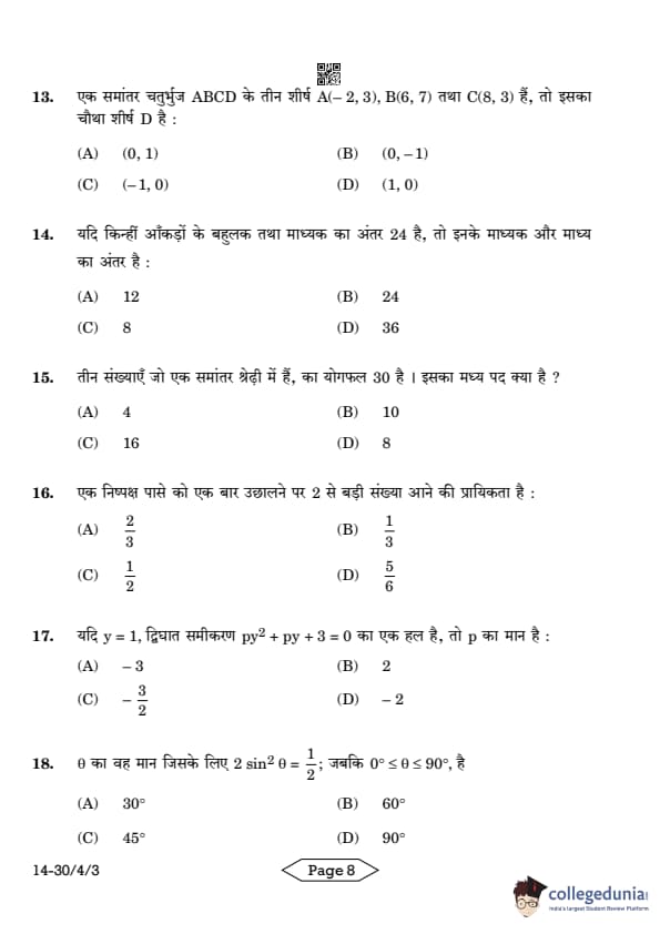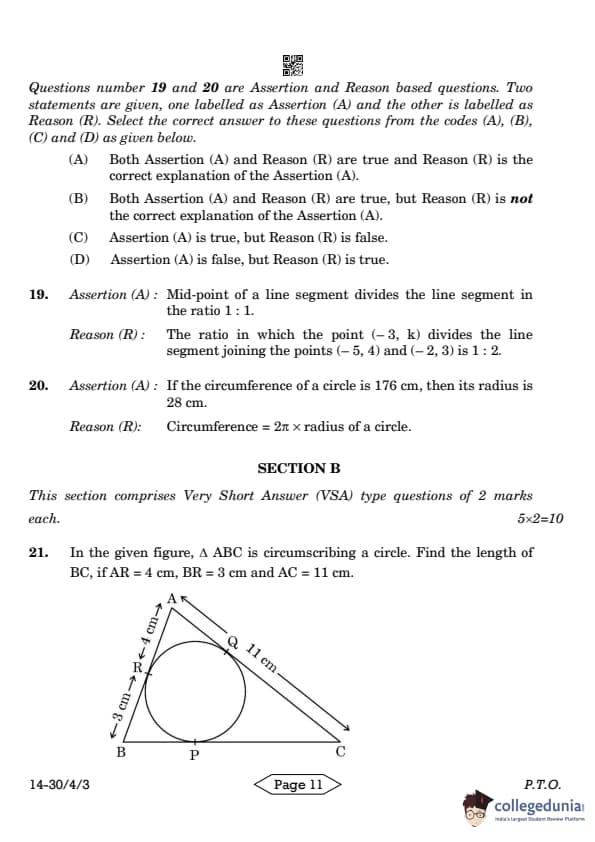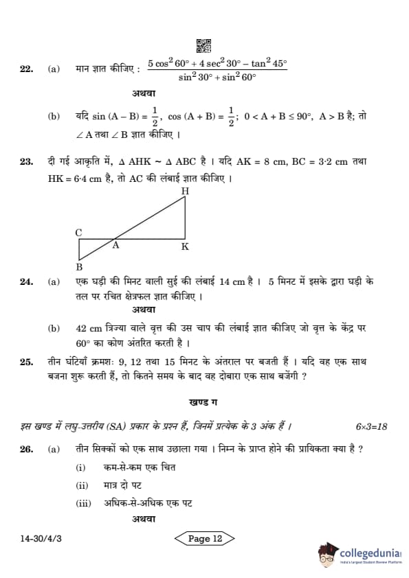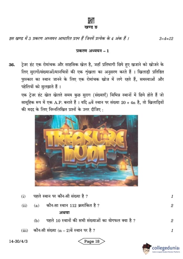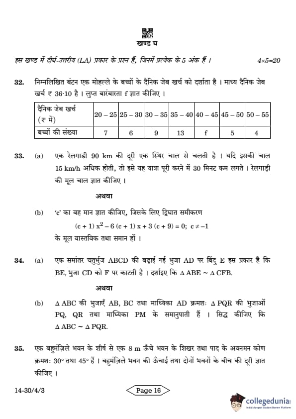 CBSE Class 10 Mathematics Standard Question Paper 2024 PDF (Set 3- 30/4/3) is available for download here. CBSE conducted the Mathematics Standard exam on March 11, 2024 from 10:30 AM to 1:30 PM. The total marks for the theory paper are 80. The question paper contains 20% MCQ-based questions, 40% competency-based questions, and 40% short and long answer type questions.