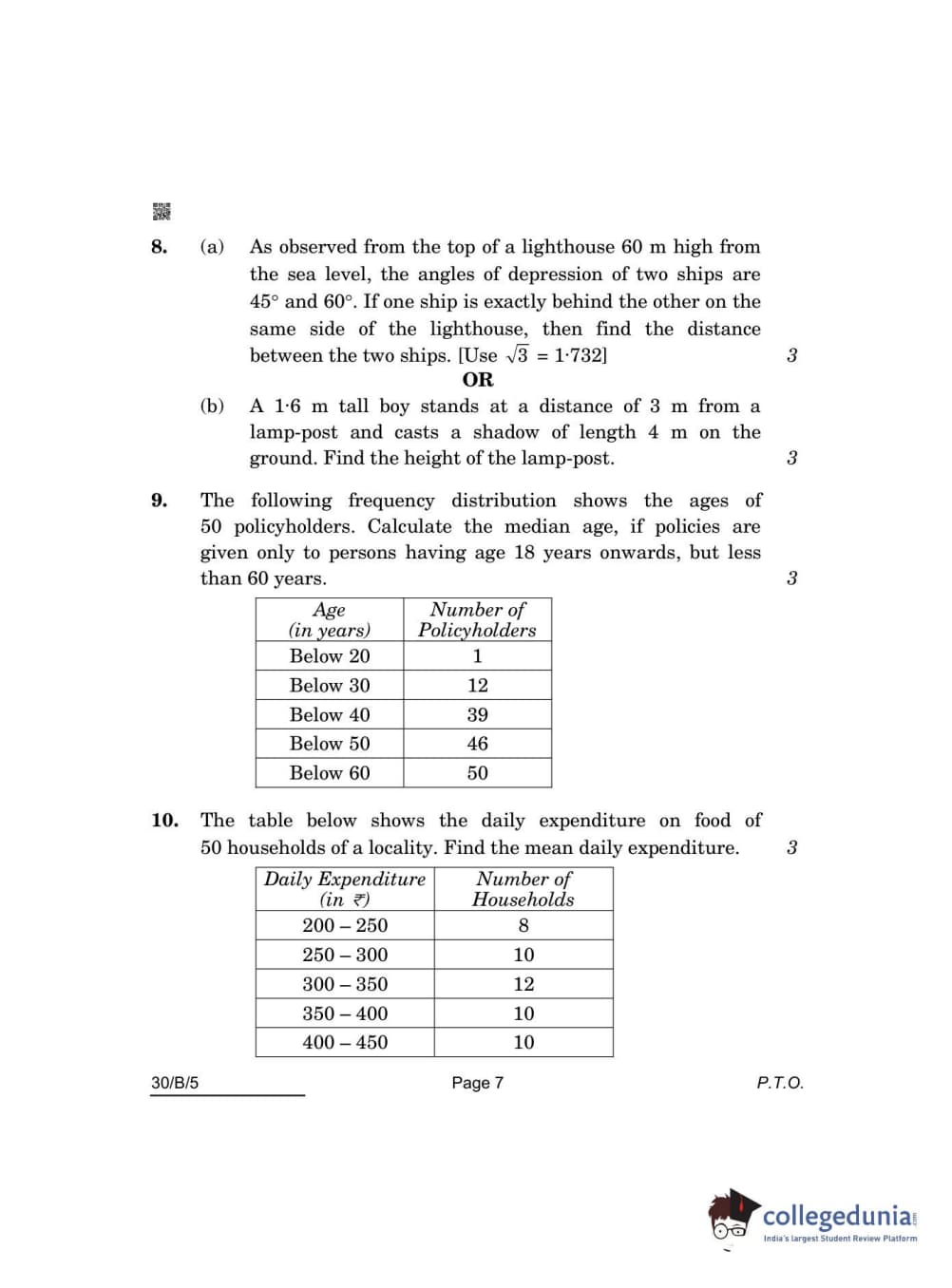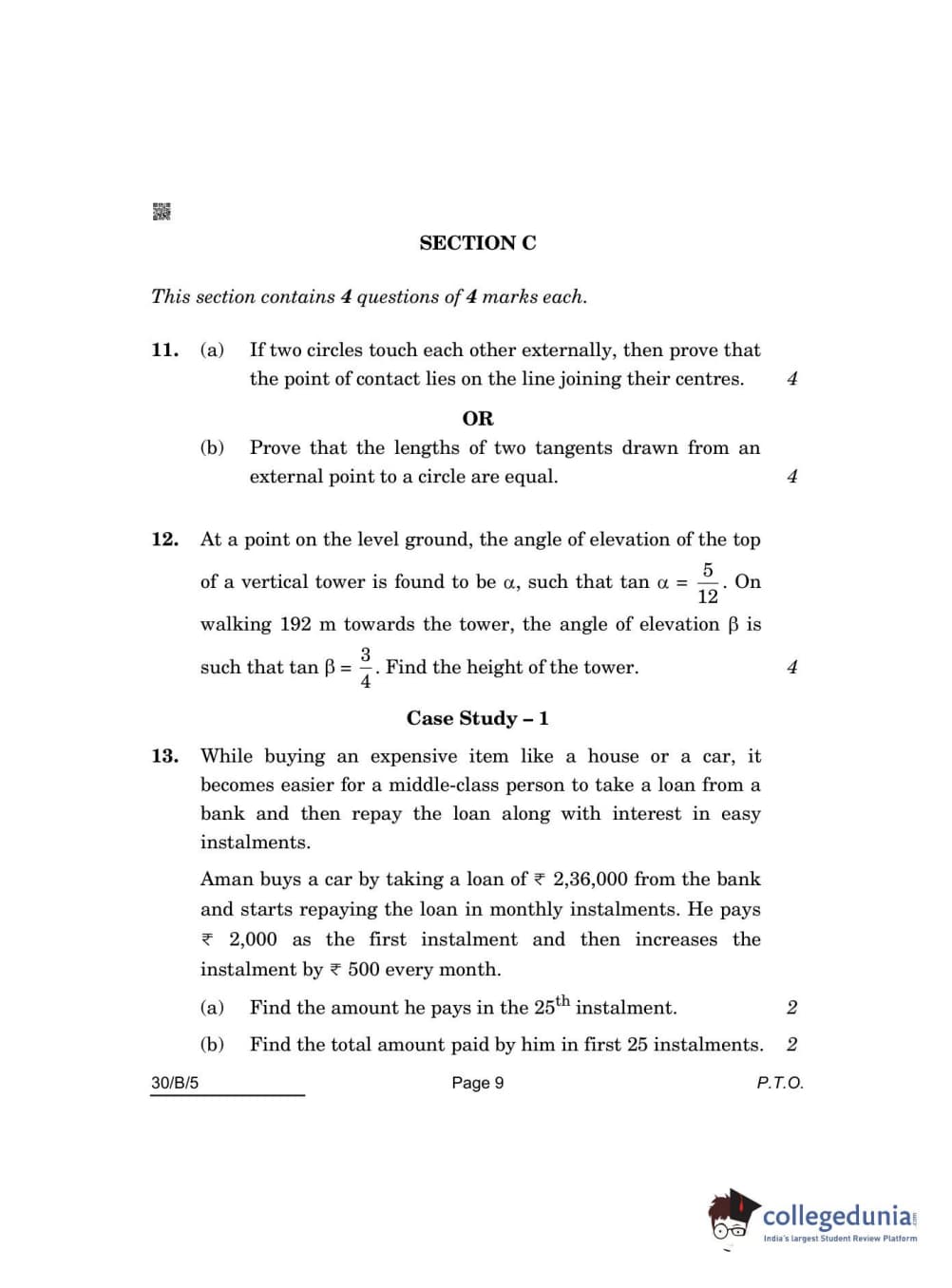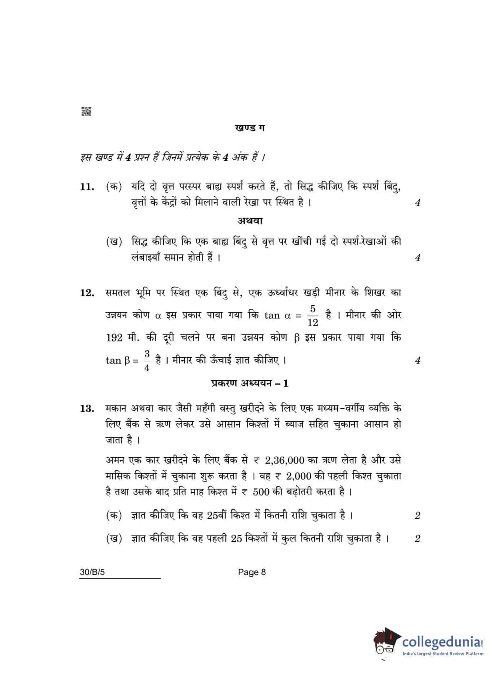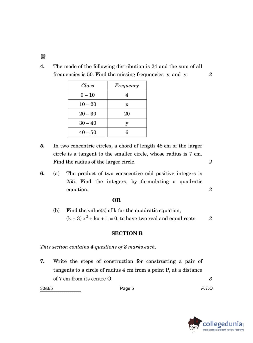 CBSE Class 10 Mathematics Standard(Visually Impaired) Question Paper 2022 with Answer Key Set 5 - 30/B/5 is available for download. The exam was conducted by the Central Board of Secondary Education on May 5, 2022 in the Morning Session 10:30 AM to 12:30 PM. The medium of paper was English & Hindi. The question paper comprised a total of 14 questions divided among 3 sections.
