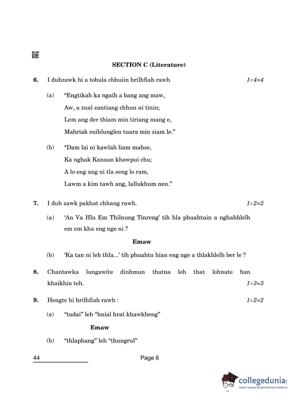 CBSE Class 10 Mizo Question Paper 2022 with Answer Key (May 17)