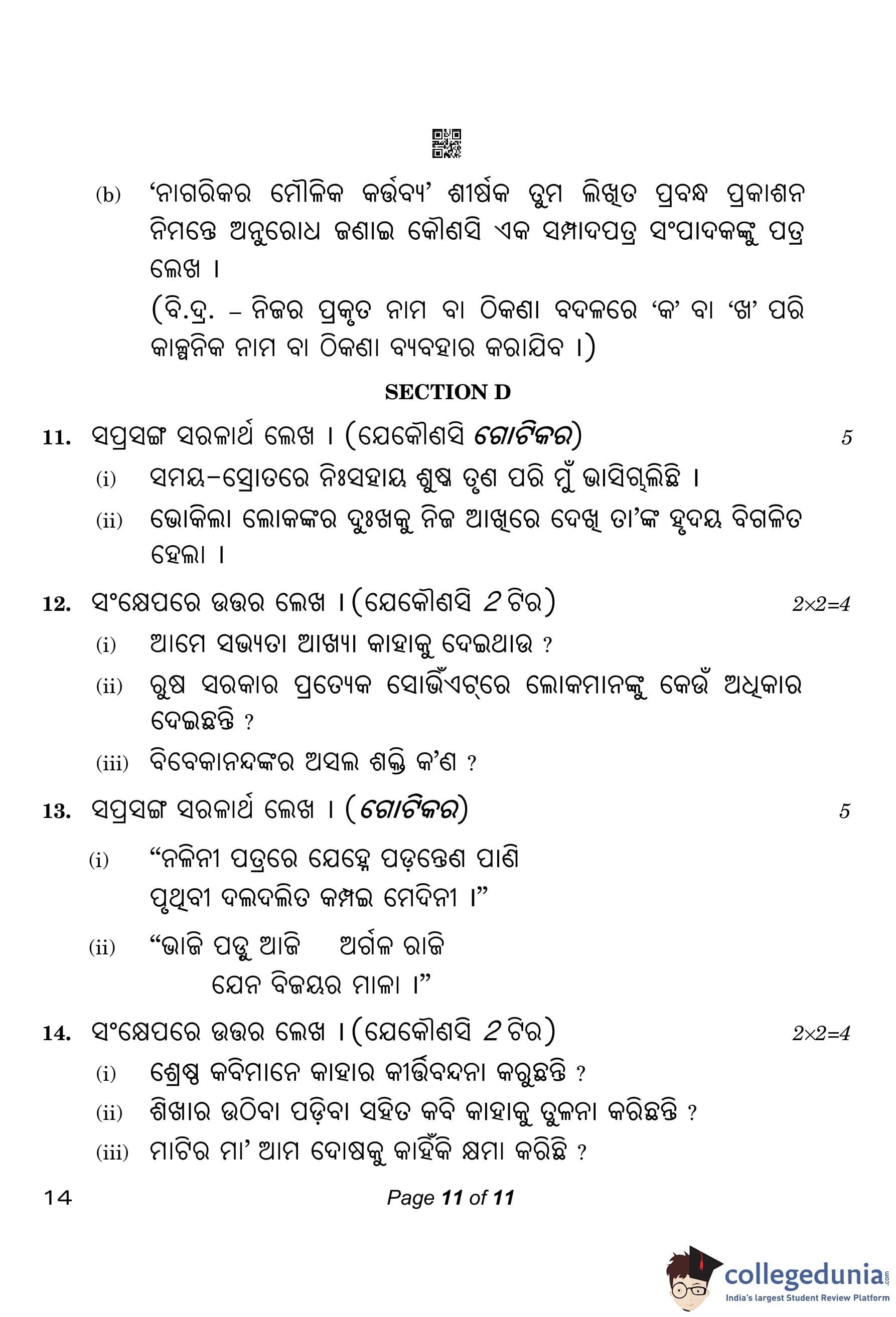 CBSE Class 10 Odia Compartment Question Paper 2023 with Answer Key pdf is available for download here. The exam was conducted by Central Board of Secondary Education on July 21, 2023 in the Morning Session 10:30 AM to 1:30 PM. The question paper comprised a total of 14 questions divided among 4 sections.