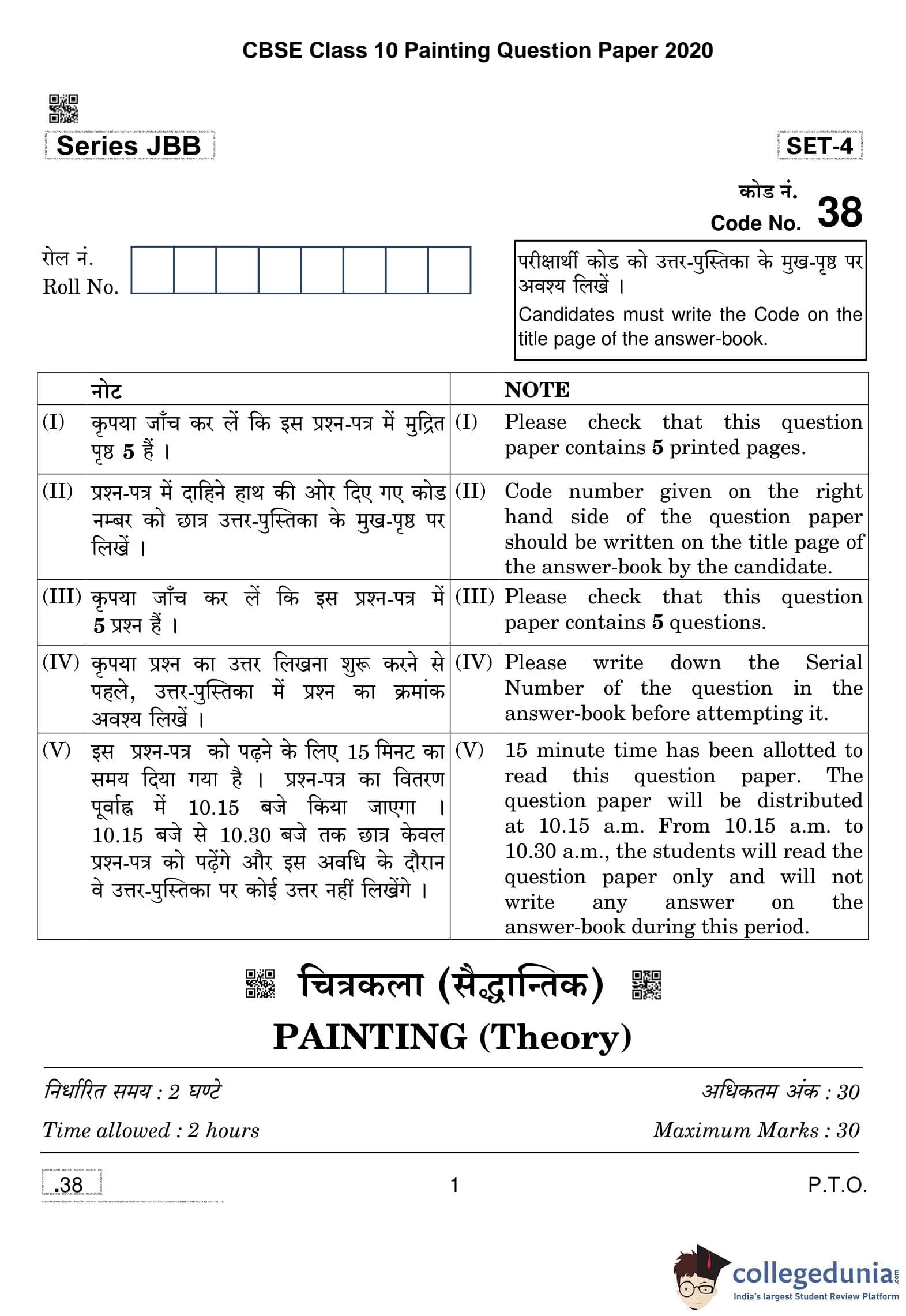| CBSE Class 10 Painting Question Paper 2020 PDF | CBSE Class 10 Painting Answer Key 2020 PDF |