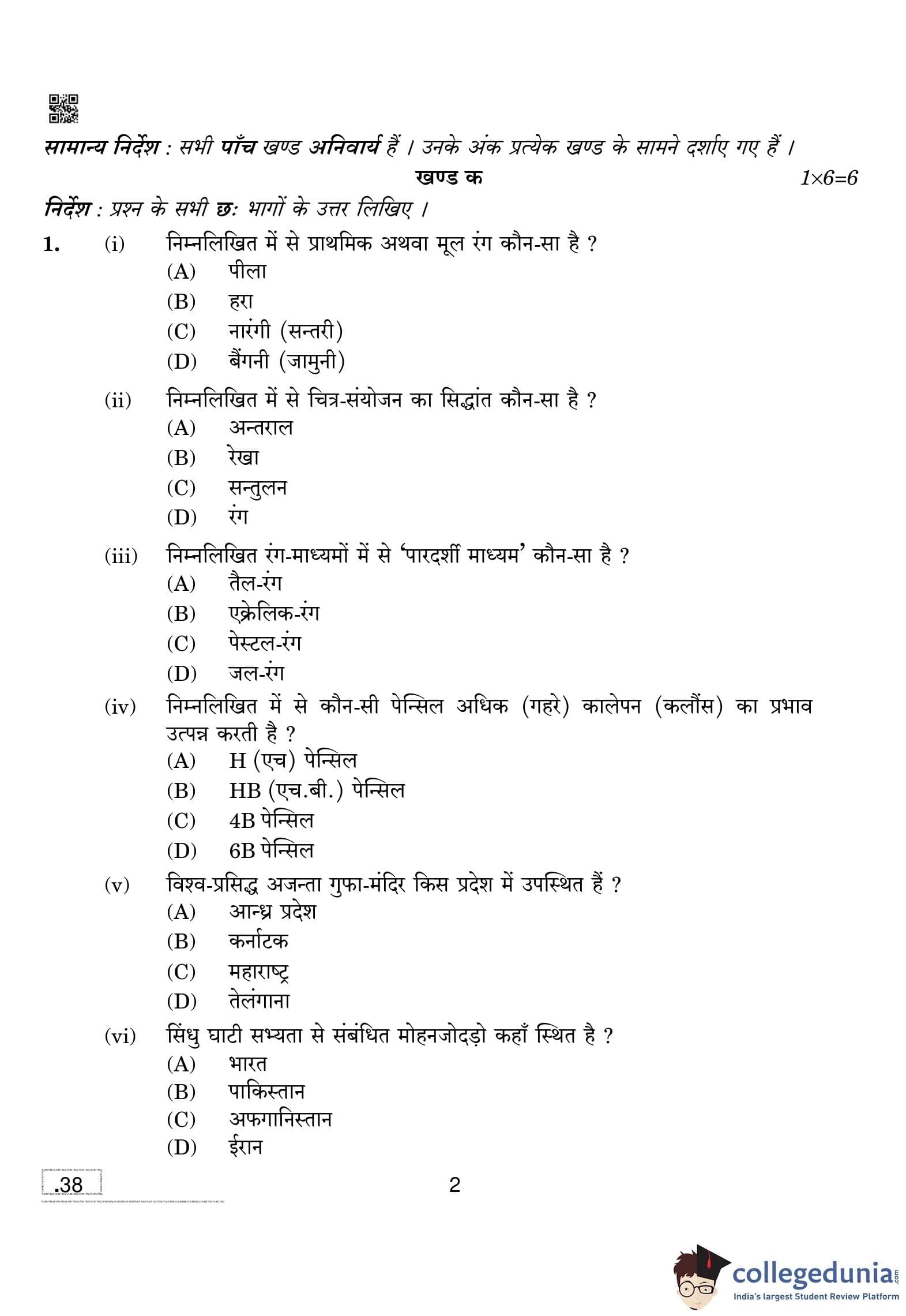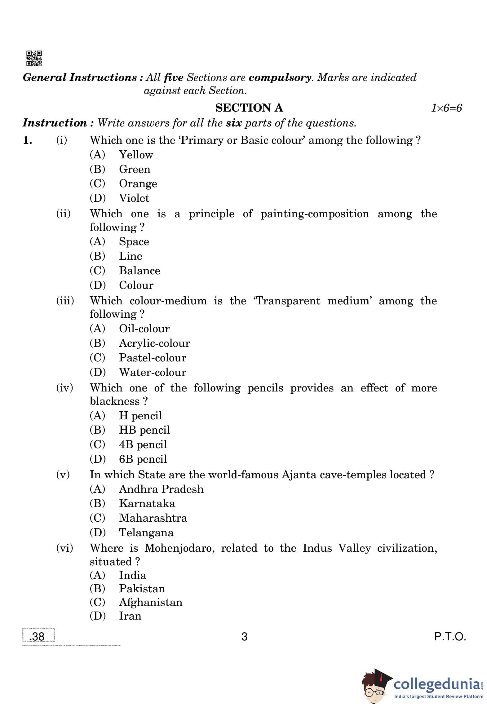 CBSE Class 10 Painting Question Paper 2020 with Answer Key (March 14)