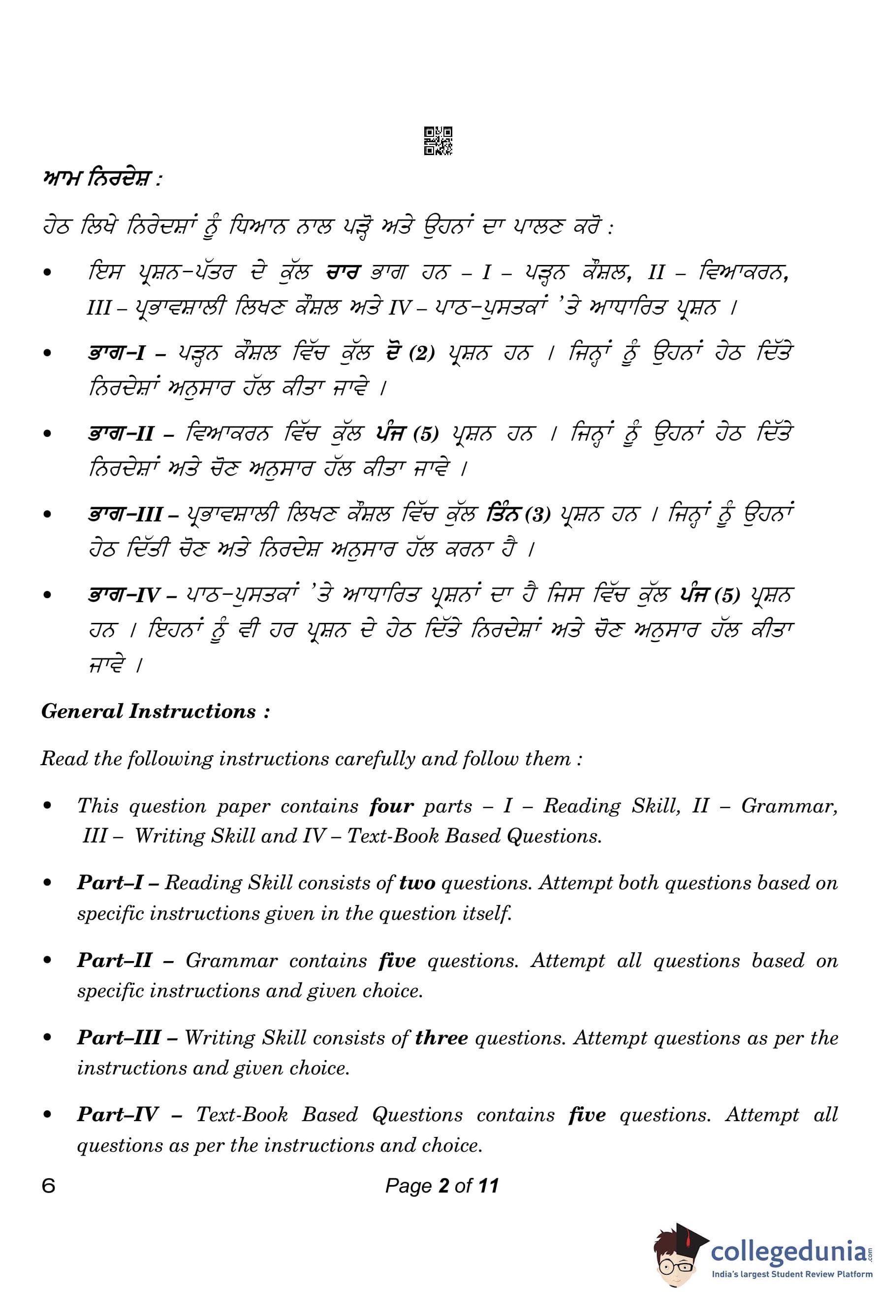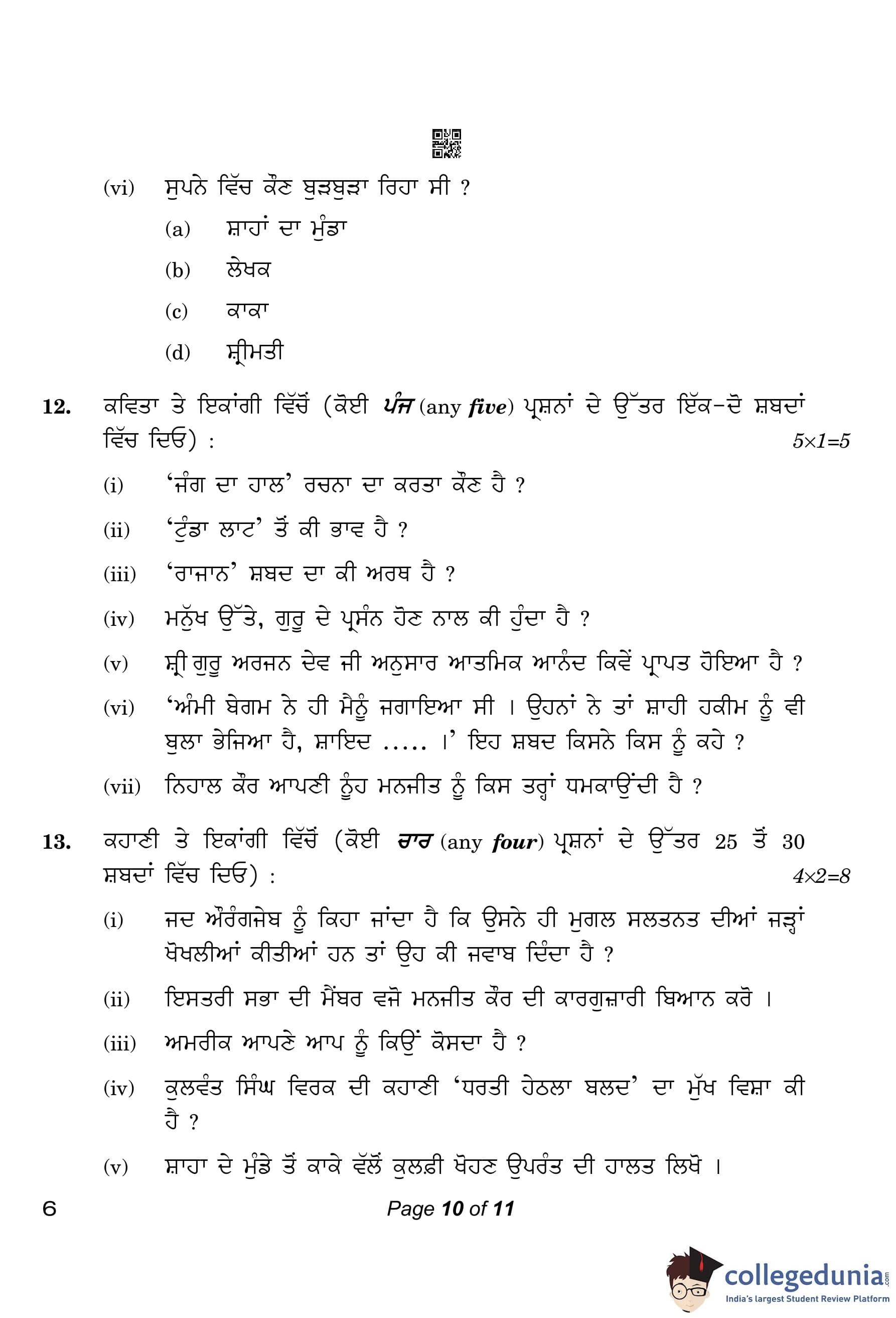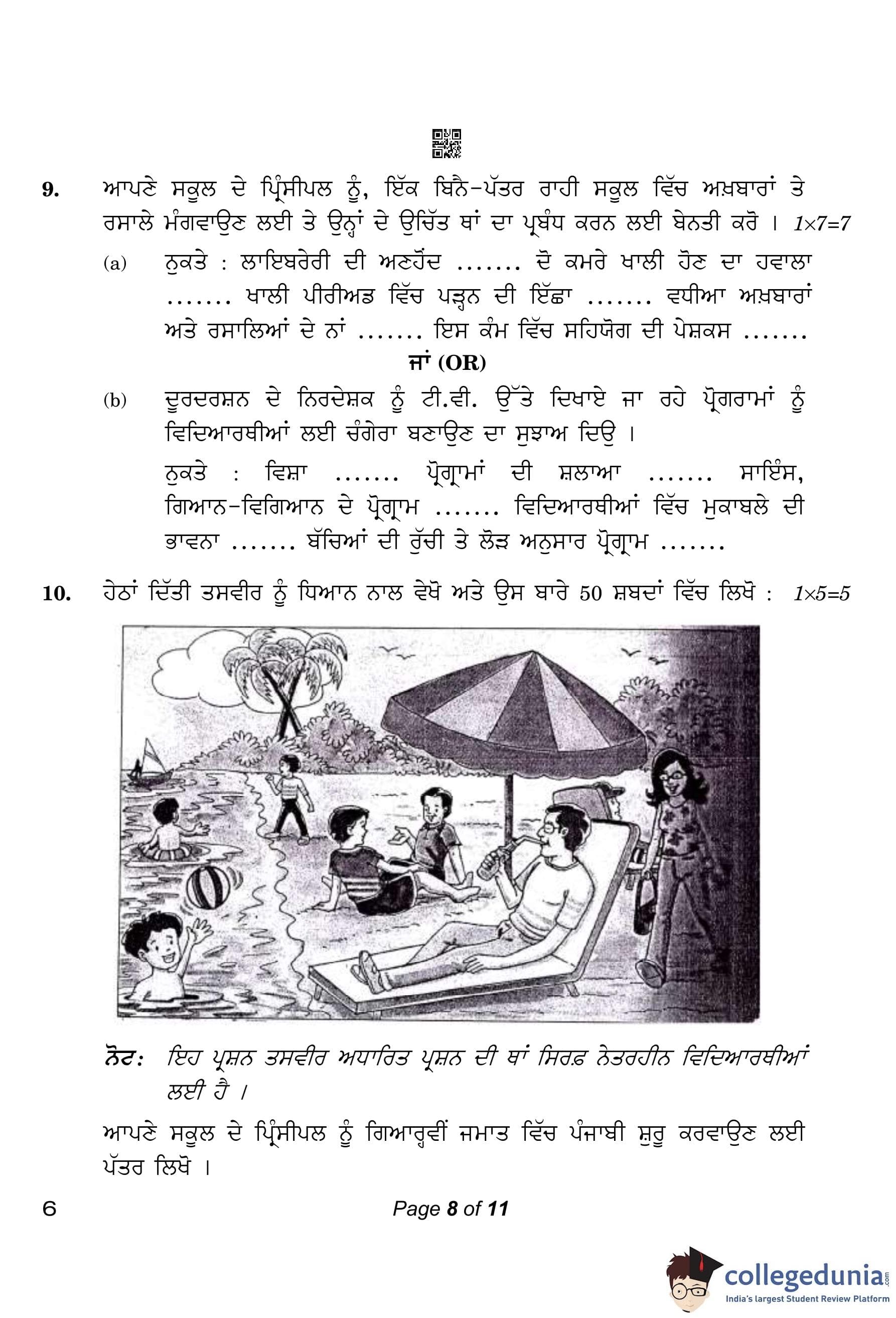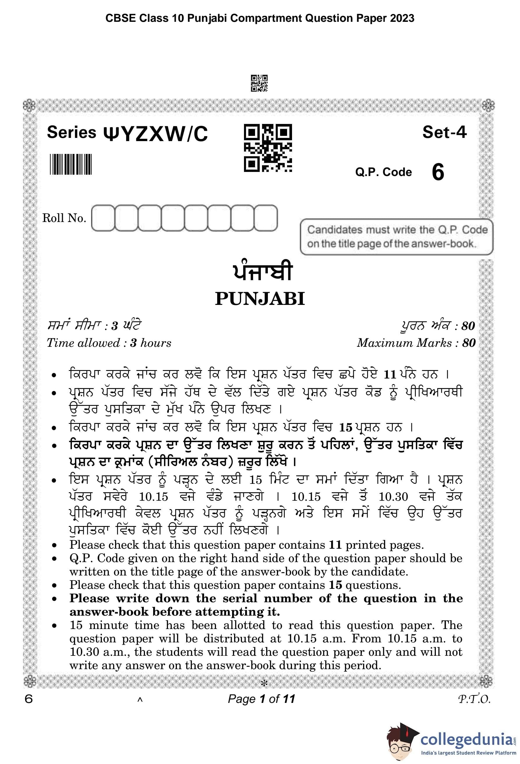 CBSE Class 10 Punjabi Compartment Question Paper 2023 with Answer Key