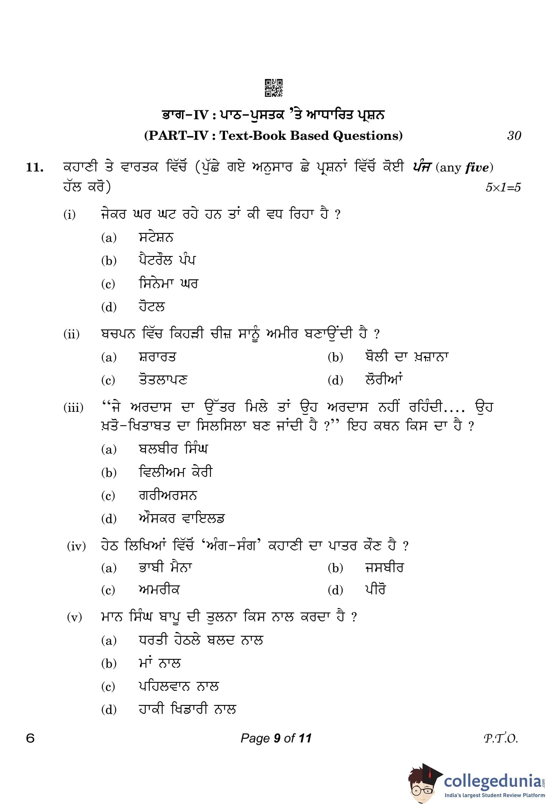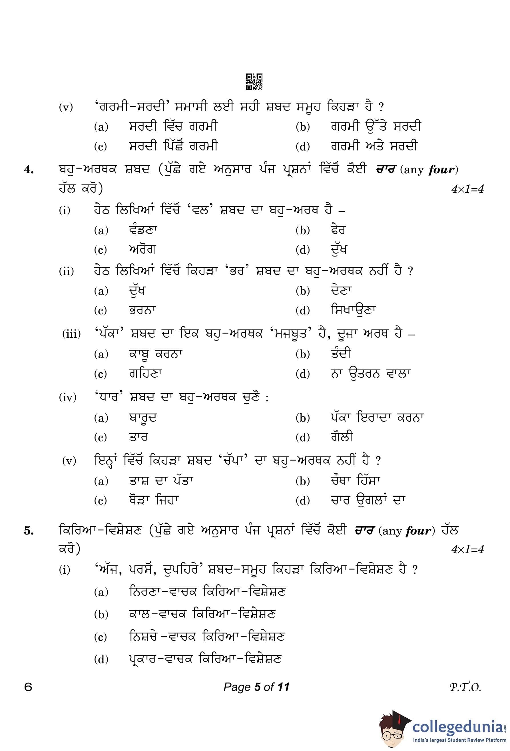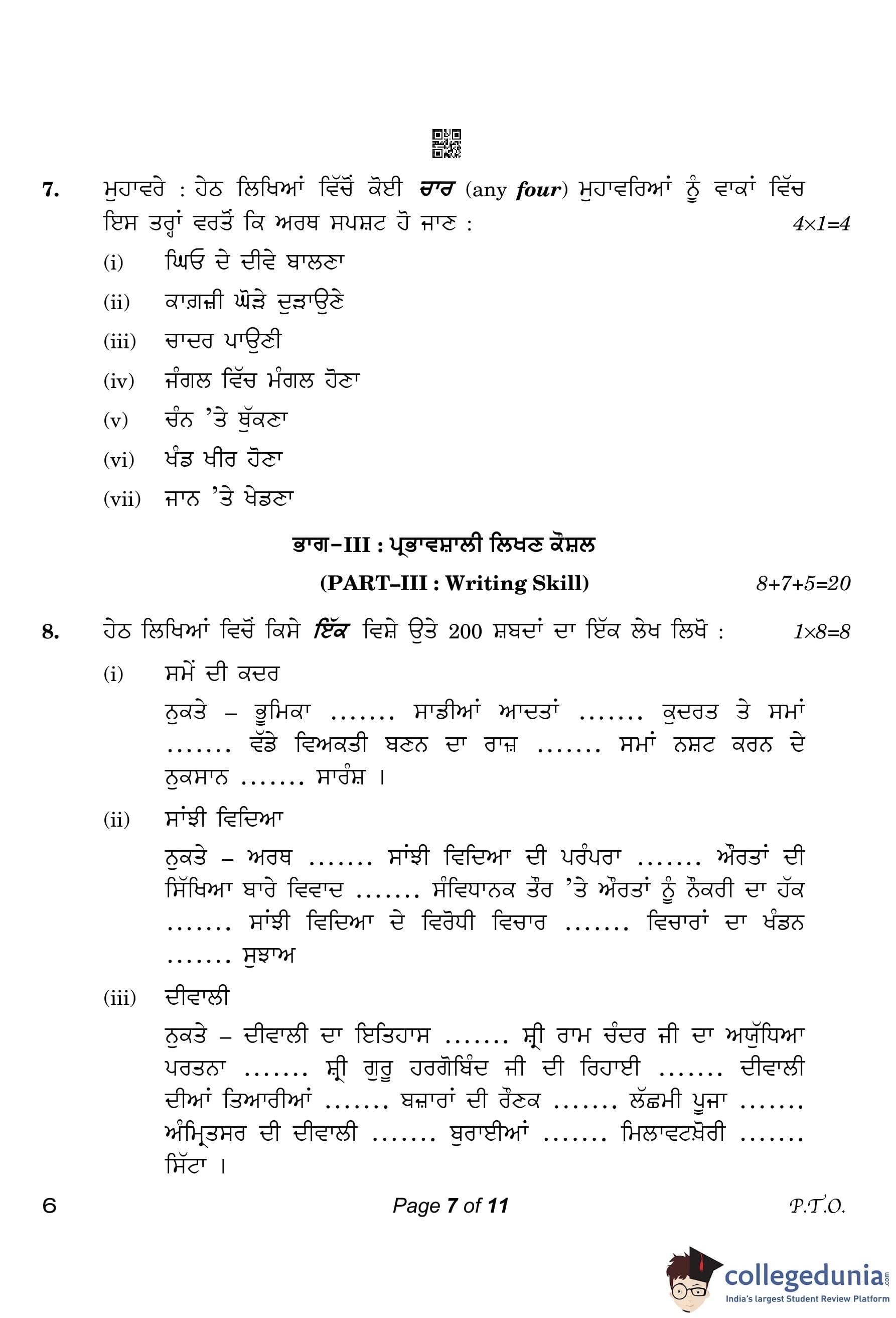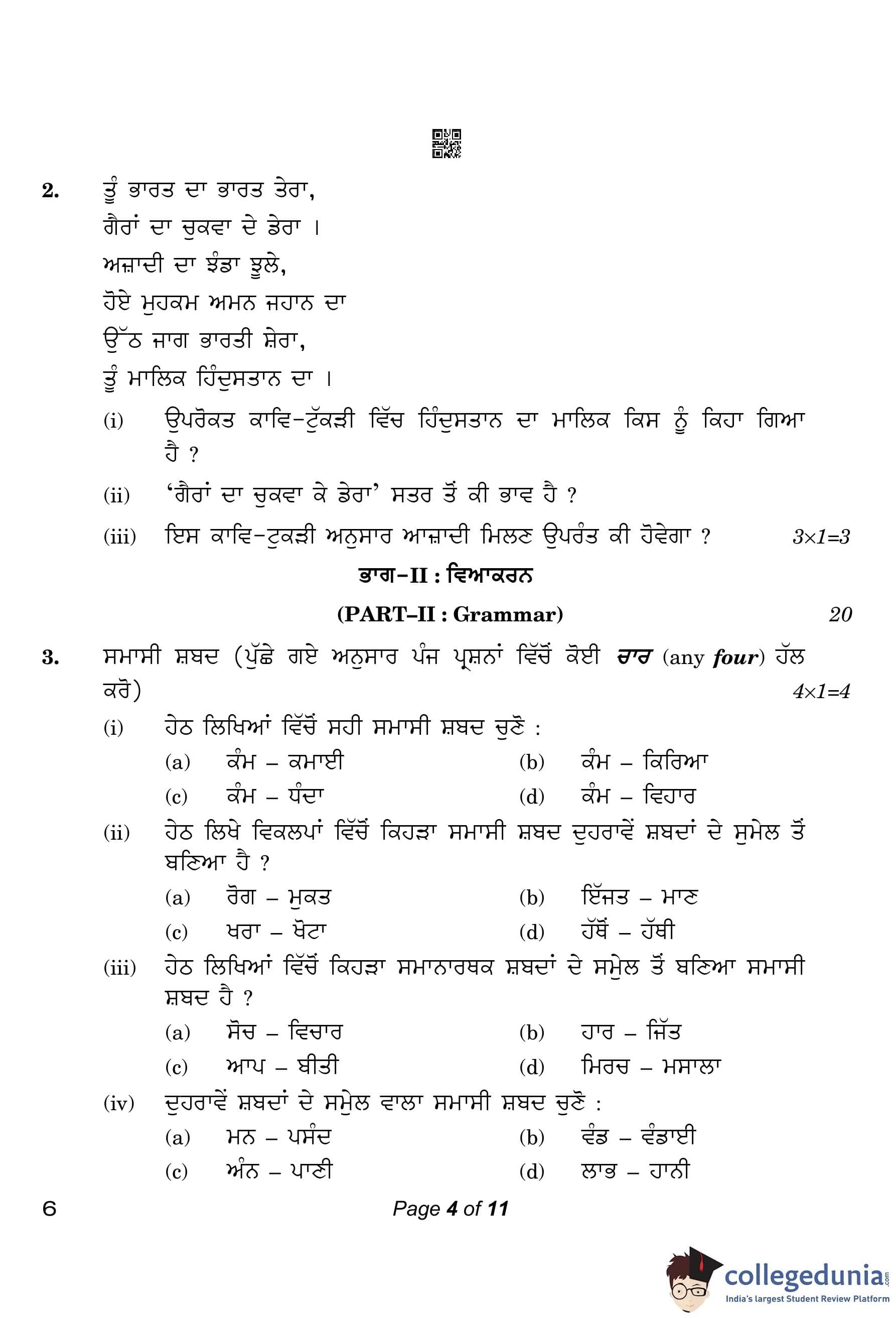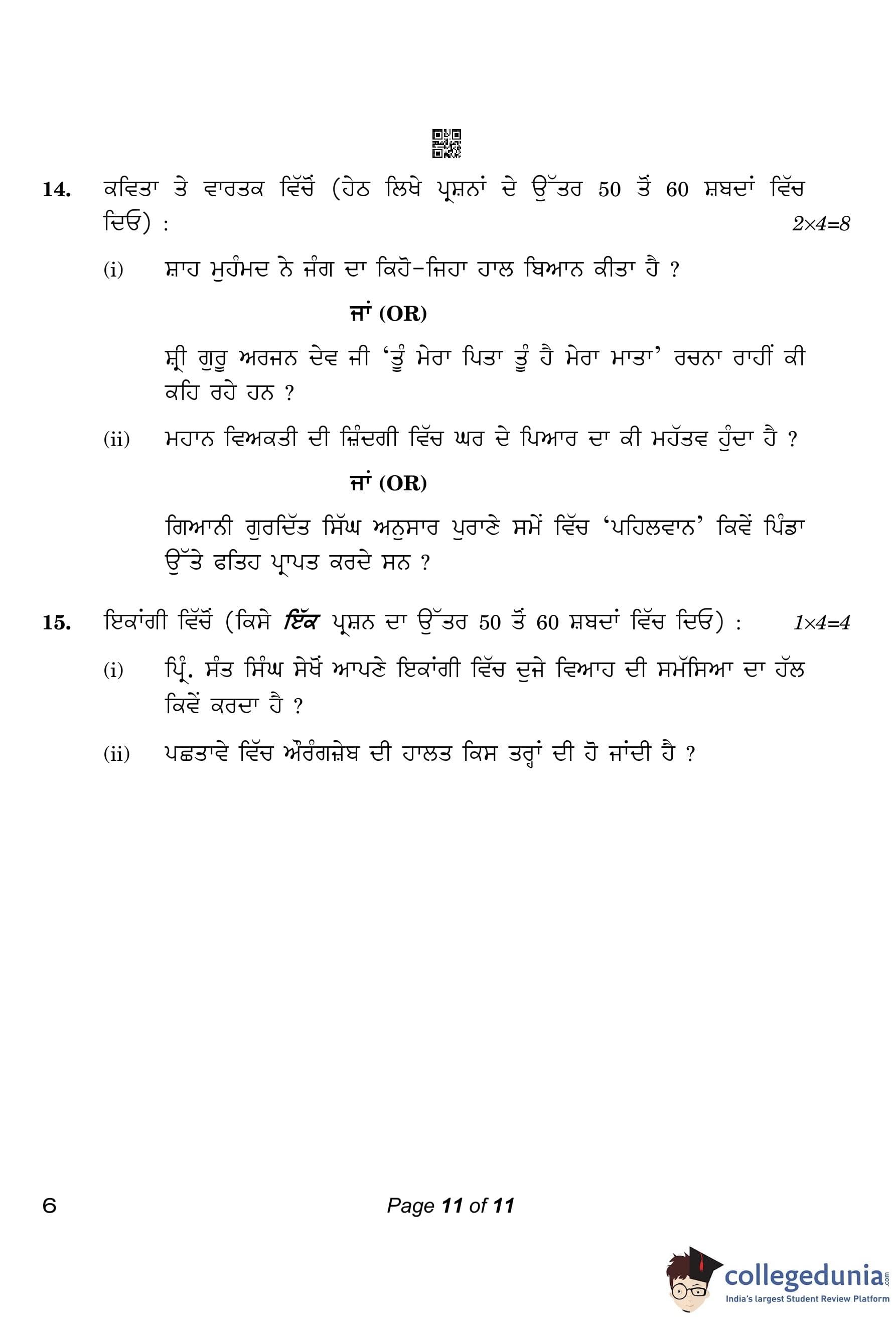 CBSE Class 10 Punjabi Compartment Question Paper 2023 with Answer Key